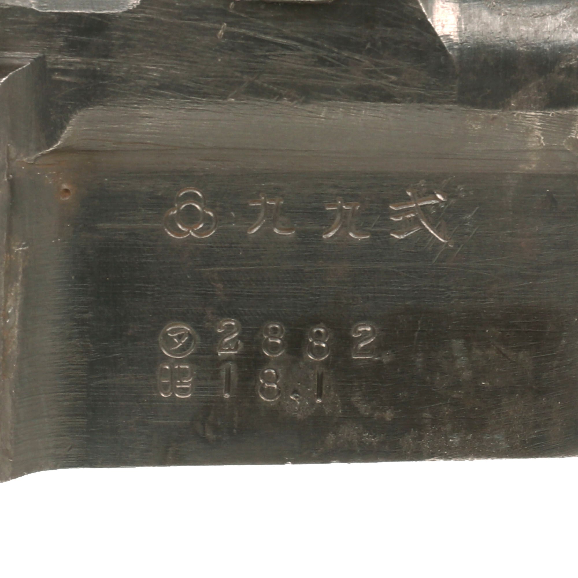 This excellent example is marked on the receiver with the arsenal markings for Kokura Arsenal next to 九 九 式. Kyuu (九) is Japanese for number 9, and shiki (式) is the word for type, so it reads 99 Type. Under this is is marked with serial number 2882 and date 昭 18.1. This would be read as Showa Era year 18, 1st month, or January 1943. This same serial number and date is marked on the underside of the deactivated barrel, which can still be removed from the machine gun with a rubber mallet. The trigger group, trigger, rear receiver, gas piston, cocking handle, and many other components bear this same number. It also includes the original recoil spring and the op rod, which is also serial matched! That makes this a fantastic "ALL MATCHING" example, which is highly desirable!