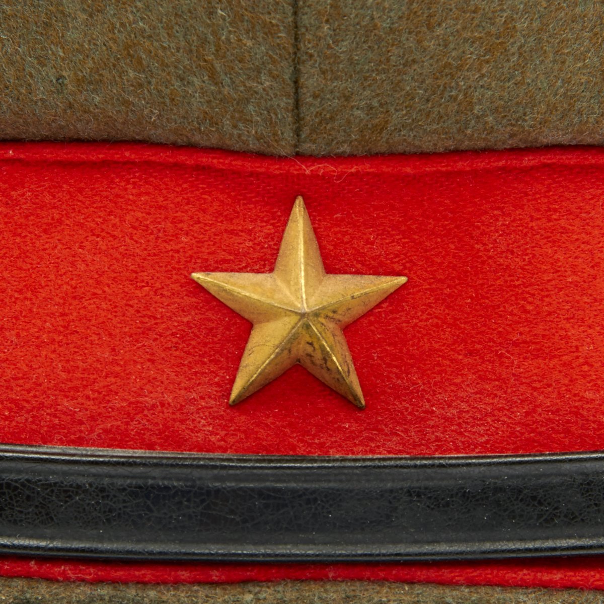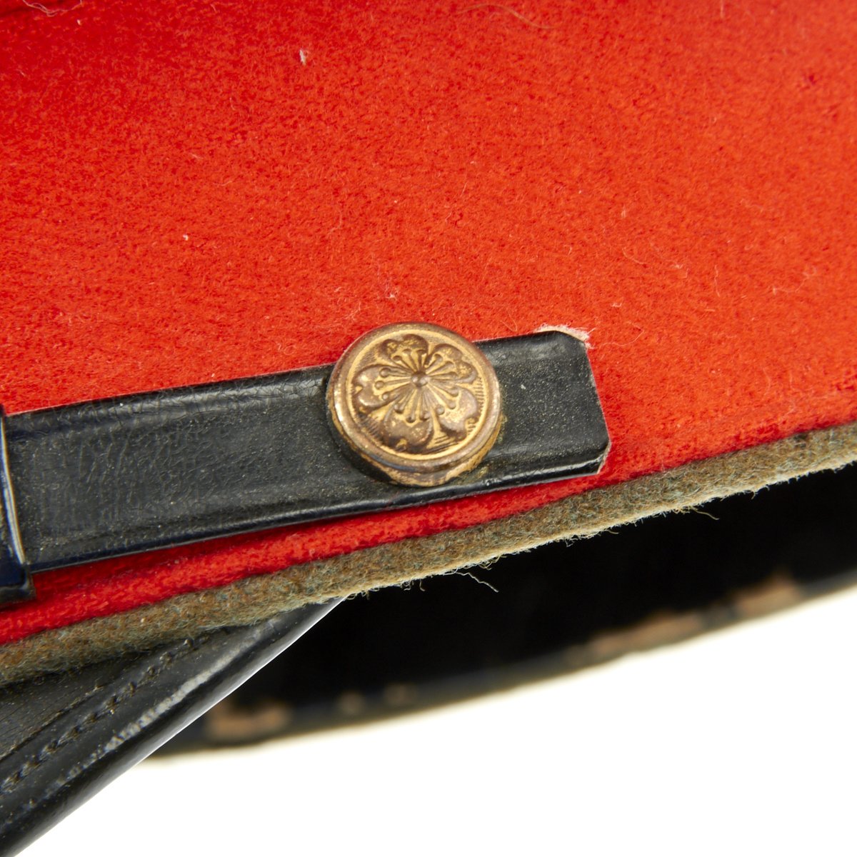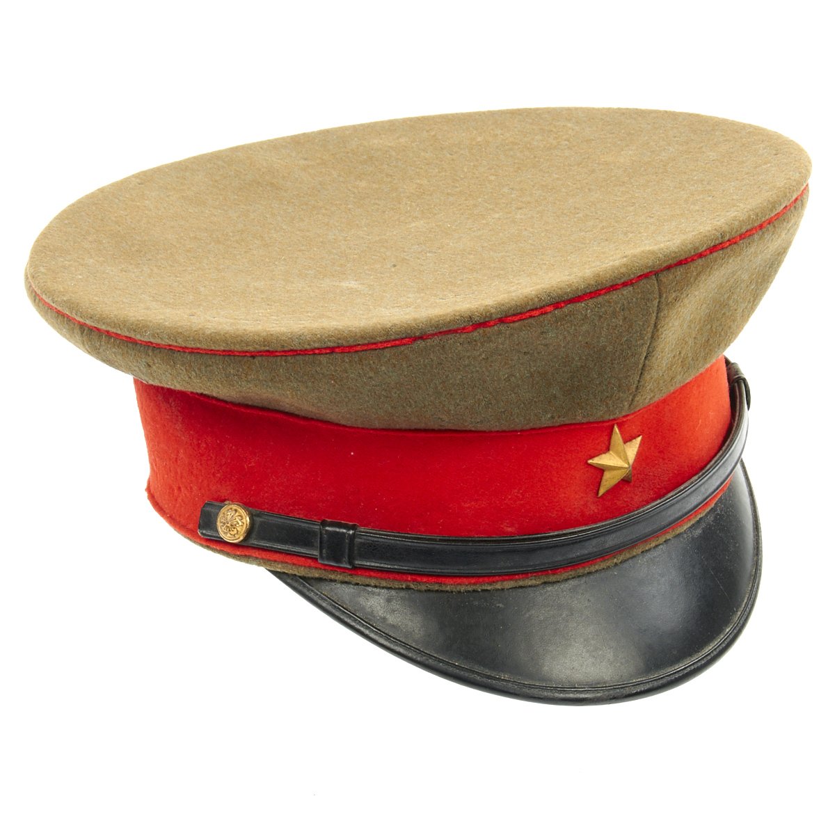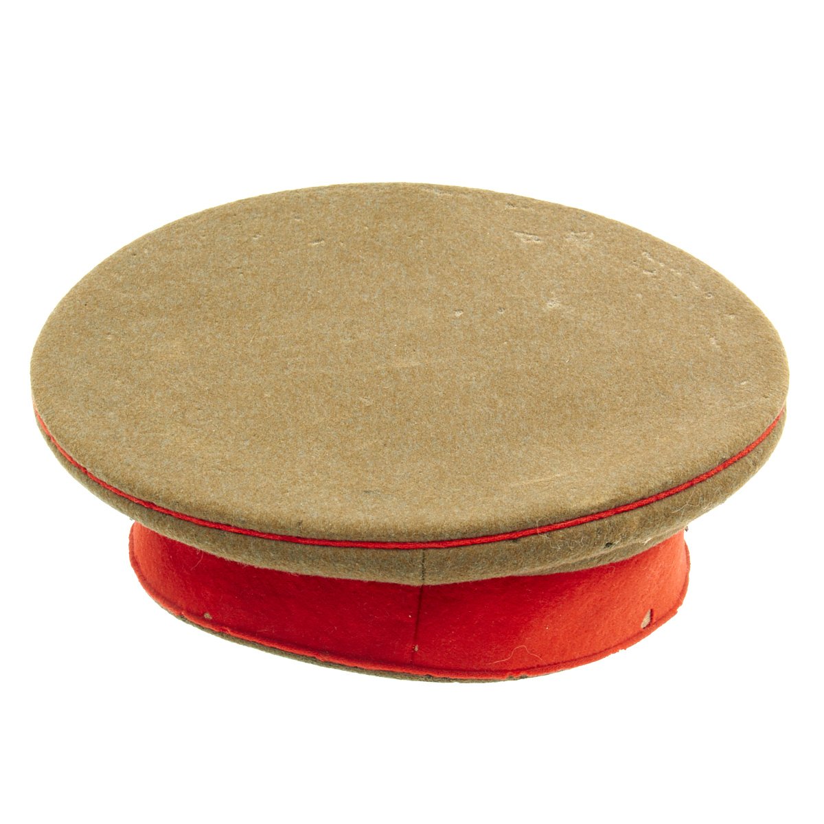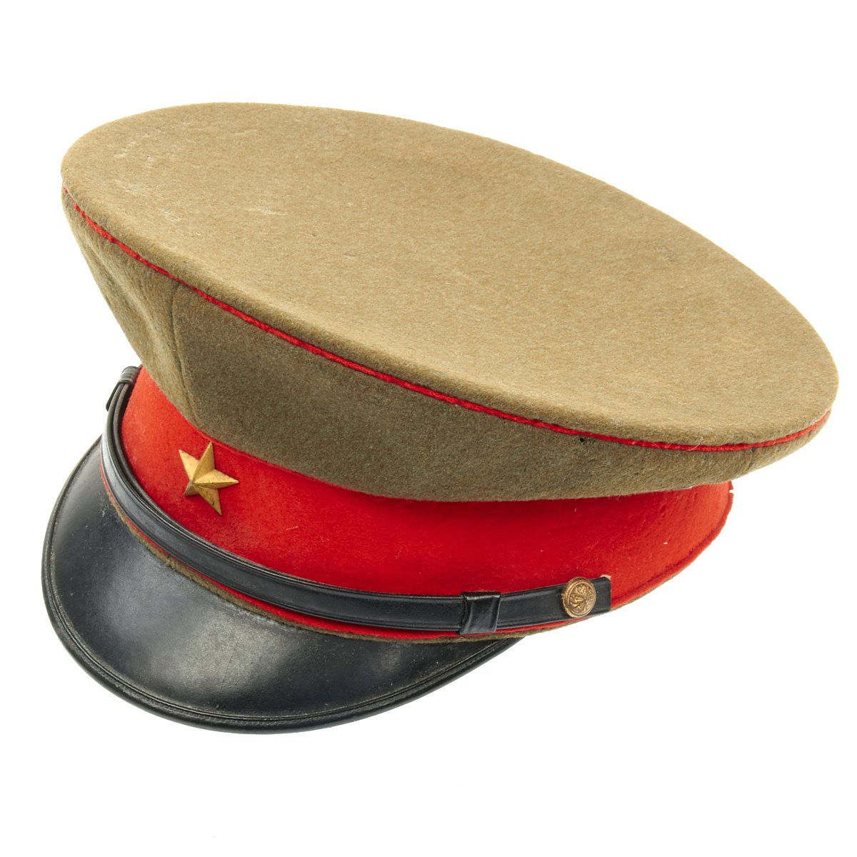 Original Item: Only One Available. This is a very good condition Japanese Imperial Army Officer's Visor hat. It has a body of brown/green wool with a top panel seam of red piping, matching the color of the red wool cap band.