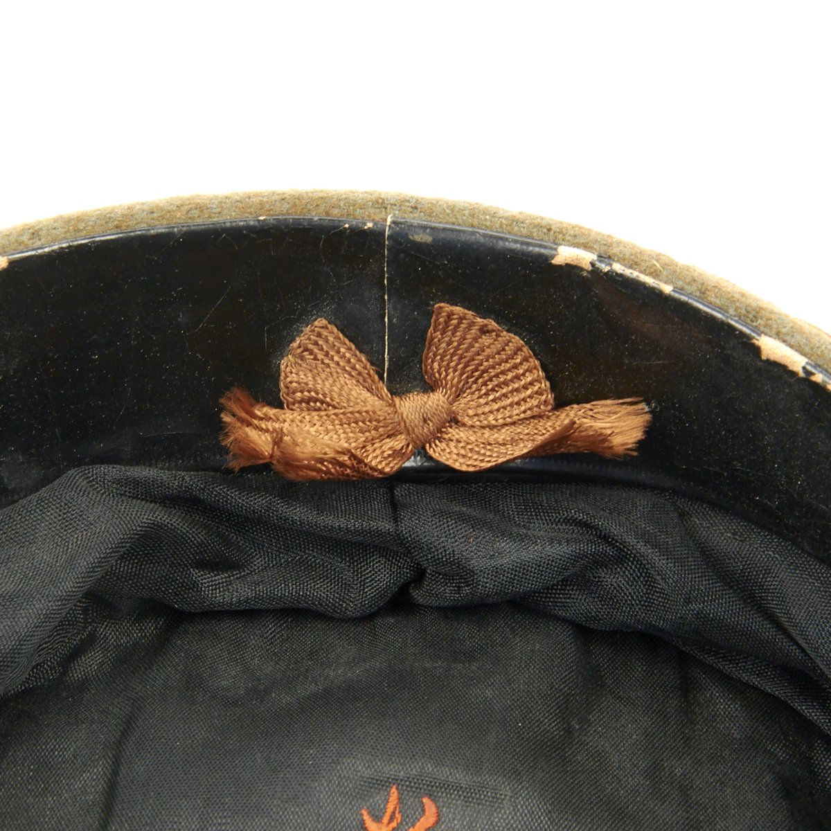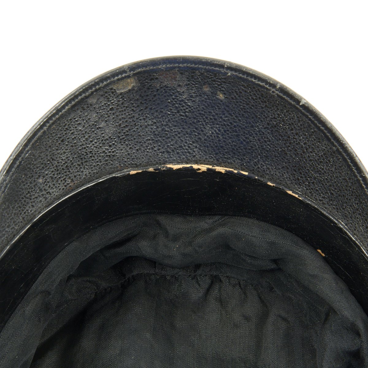 Center of cap features a brass Imperial Japanese Army Star along with brass Chrysanthemum chinstrap buttons. The black leather visor is in excellent condition retaining its shape without distortion or crazing.