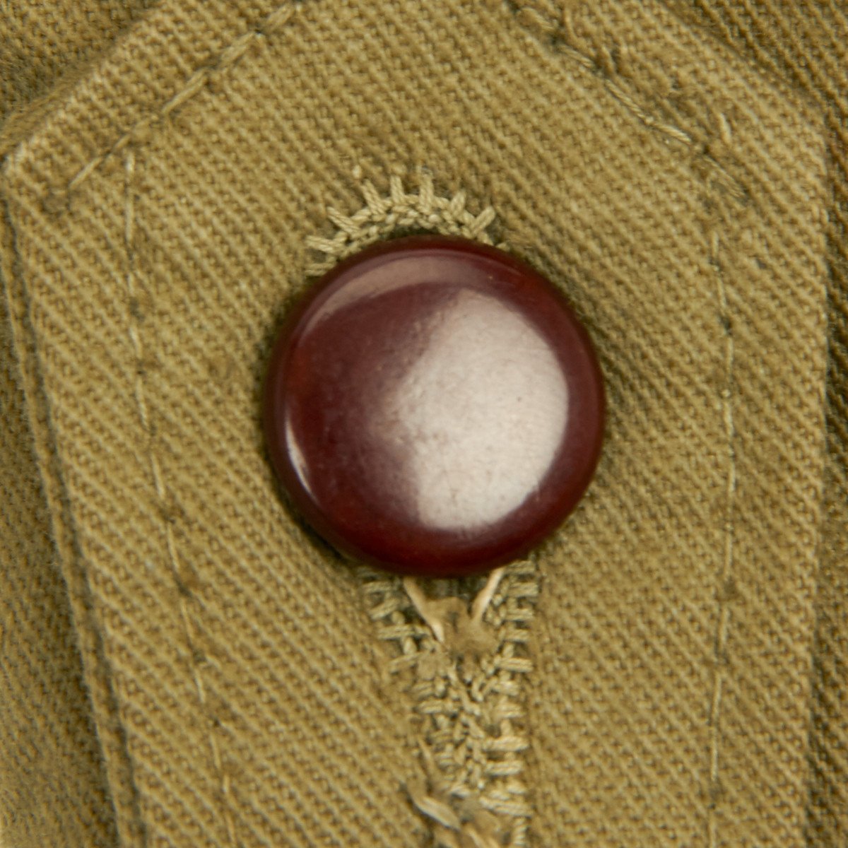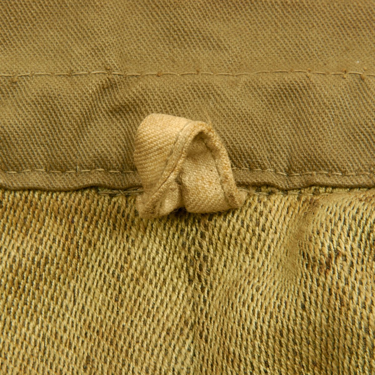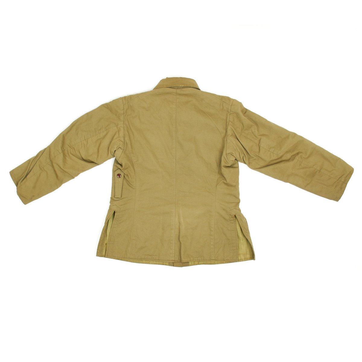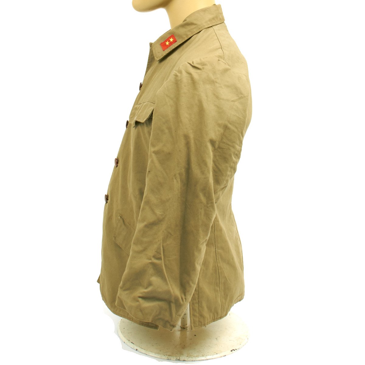 Original Item: Only One Available. This is a rare original WW2 Japanese Army tunic for a private first class. The tunic is in unissued condition. High quality construction, cotton shell and lining with polished buttons. Features Private first class collar tabs with embroidered stars. There are several lines of Kanji ink stamped to the inner lining. Size is approximately a 36 chest. Overall excellent condition with no stains, tears or moth damage. They don’t come cleaner than this.