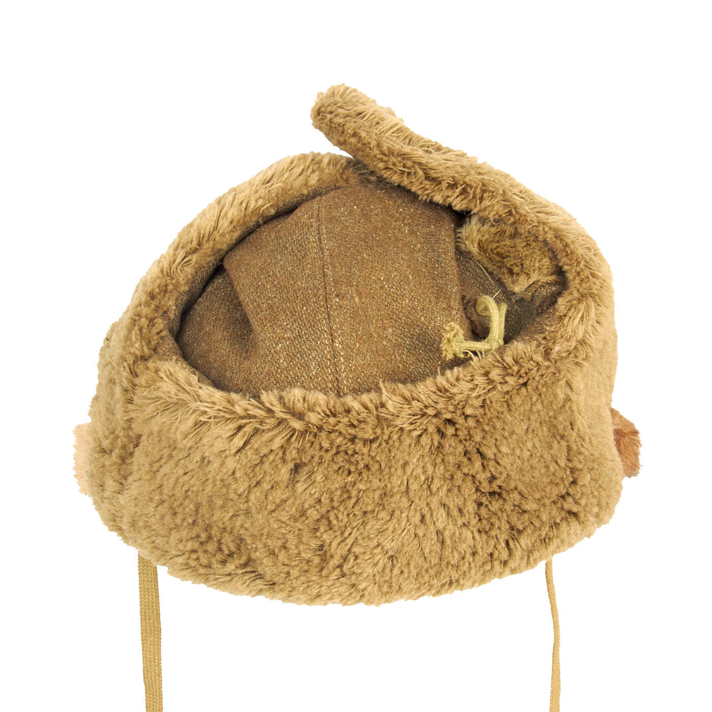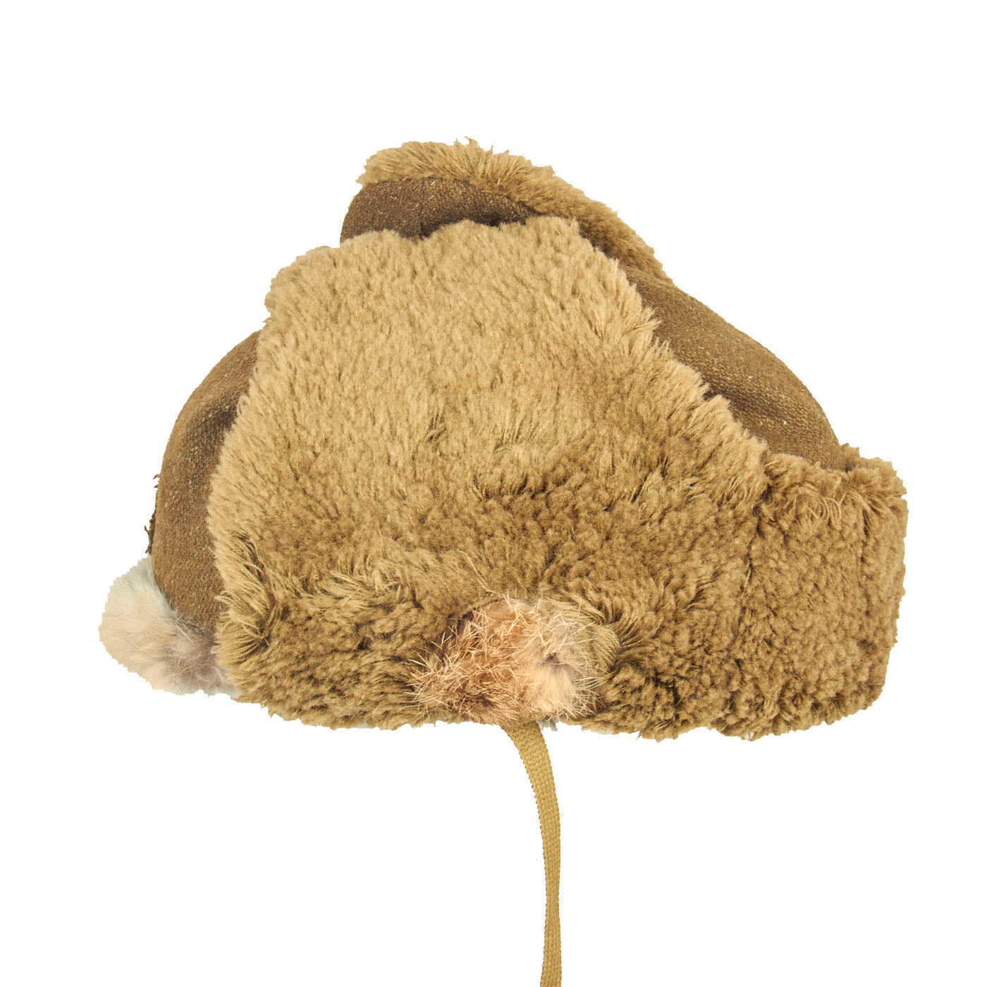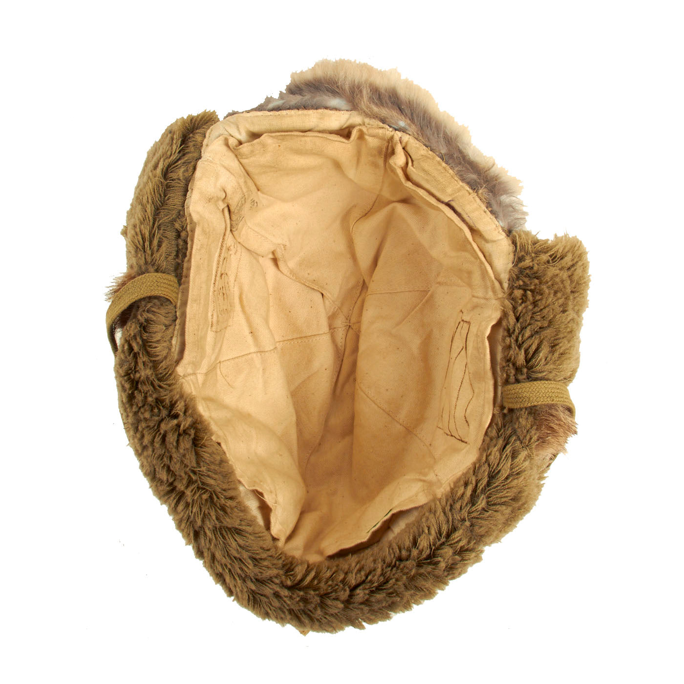 Condition of the cap is very good, with little sign that this was used in the field. The main issue is loss of the fur on the trim above the front. Rabbit fur is very delicate and soft, so this is very common to see on items of this age. The inside of the flap, which is lined with carpet-like imitation fur, is far more resilient, and in great shape.