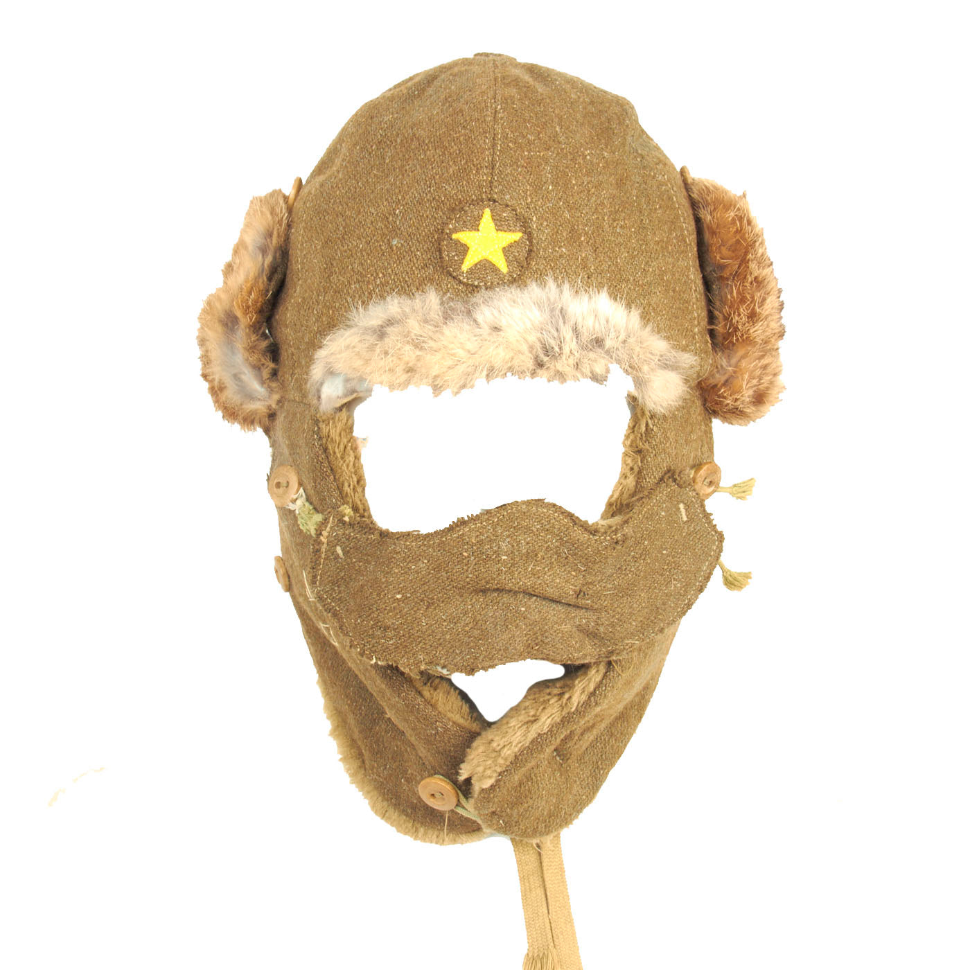 Original Item: Only One Available. Here we have a very nice example of a 1943 Dated Imperial Japanese Army Winter Fur cap, as used during WWII. While most picture the "Pacific War" as being fought on a bunch of Tropical Islands, Japan itself has regions of cold, and they also invaded China and were aware of the threat if Russia were to attack. They also invaded the Aleutian Island chain portion of Alaska, which is anything but tropical.