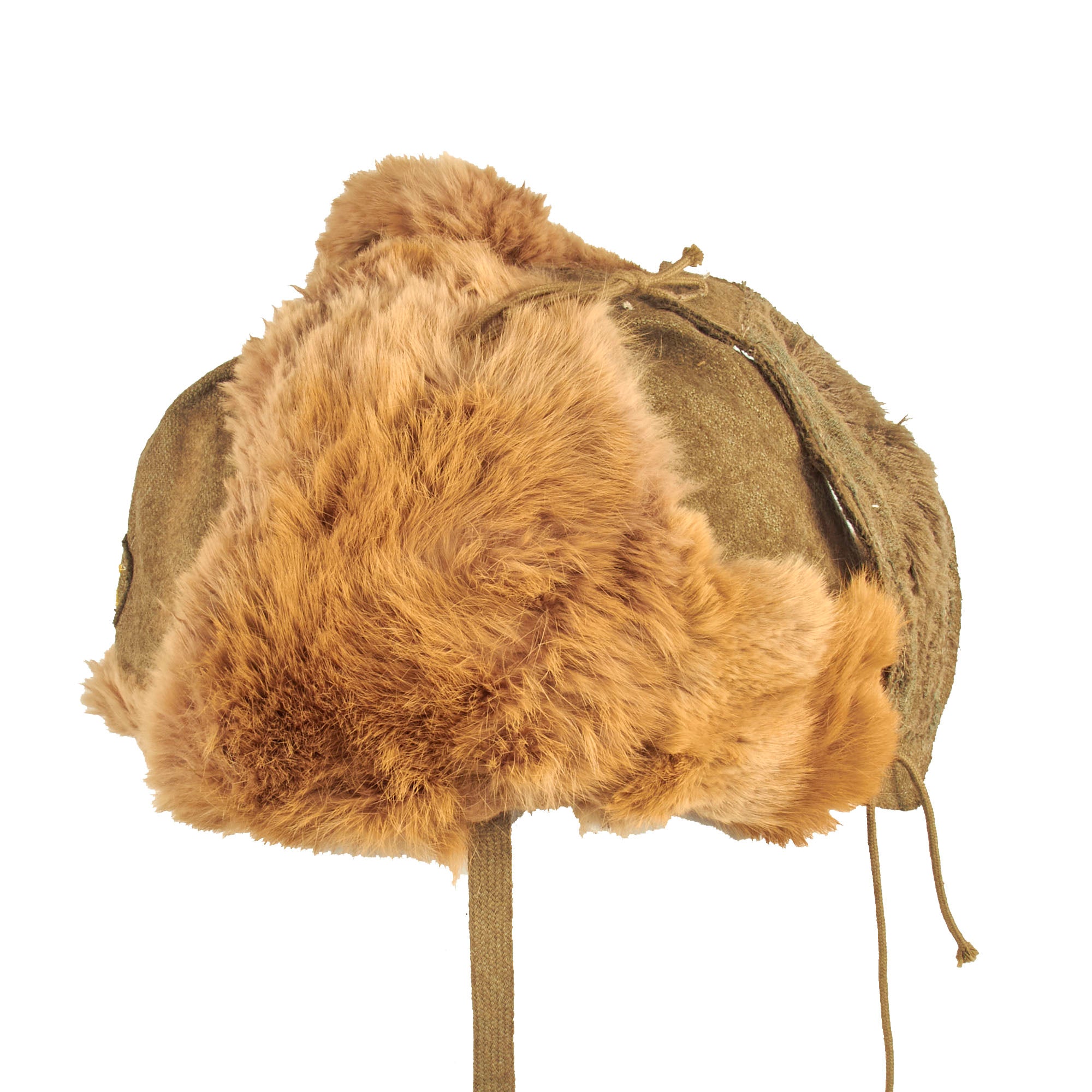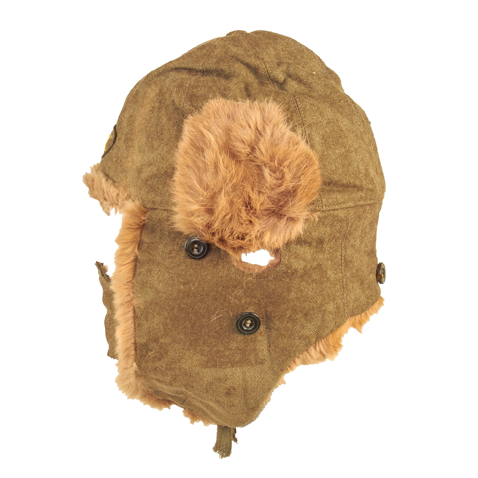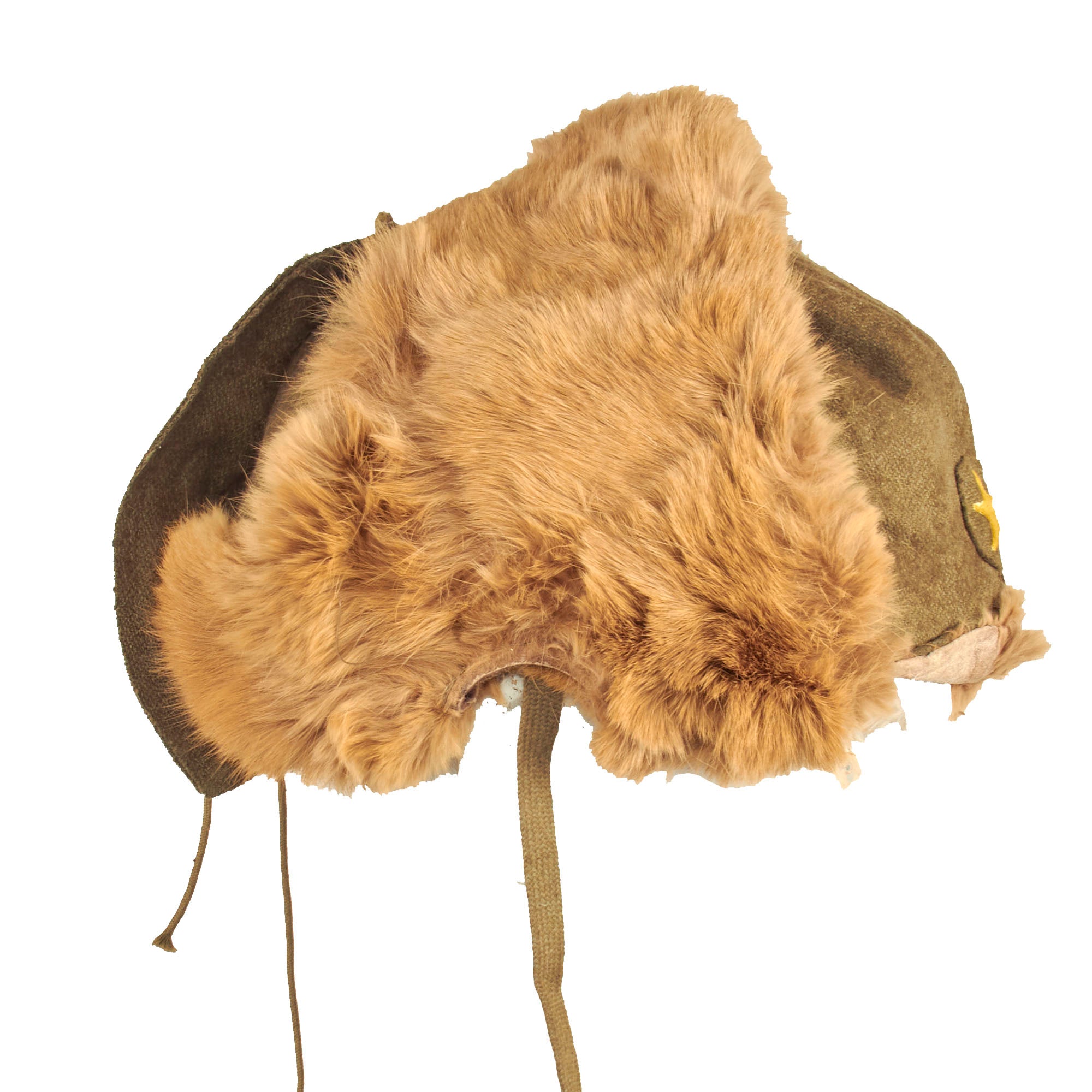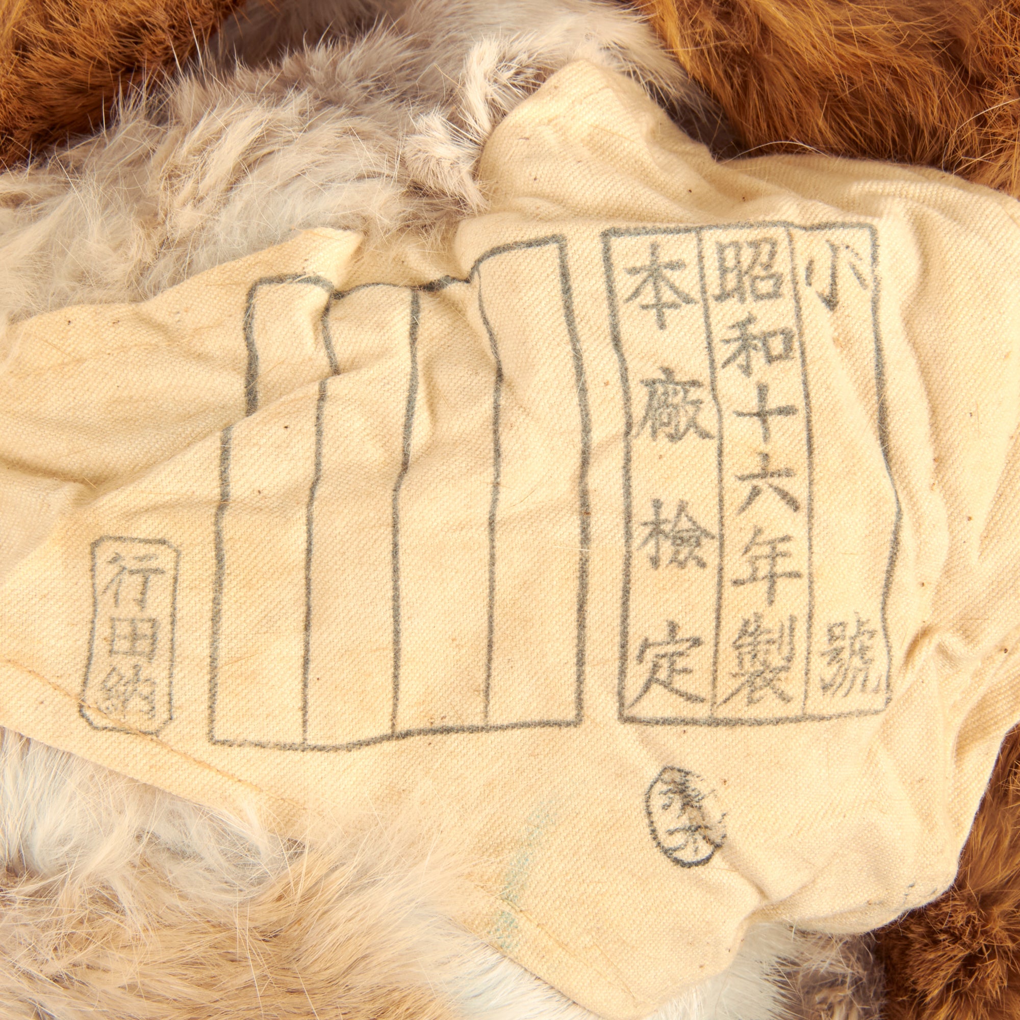 Original Item: Only One Available. Here we have a very nice example of a 1943 Dated Imperial Japanese Army Winter Fur cap, as used during WWII. While most picture the "Pacific War" as being fought on a bunch of Tropical Islands, Japan itself has regions of cold, and they also invaded China and were aware of the threat if Russia were to attack. They also invaded the Aleutian Island chain portion of Alaska, which is anything but tropical.