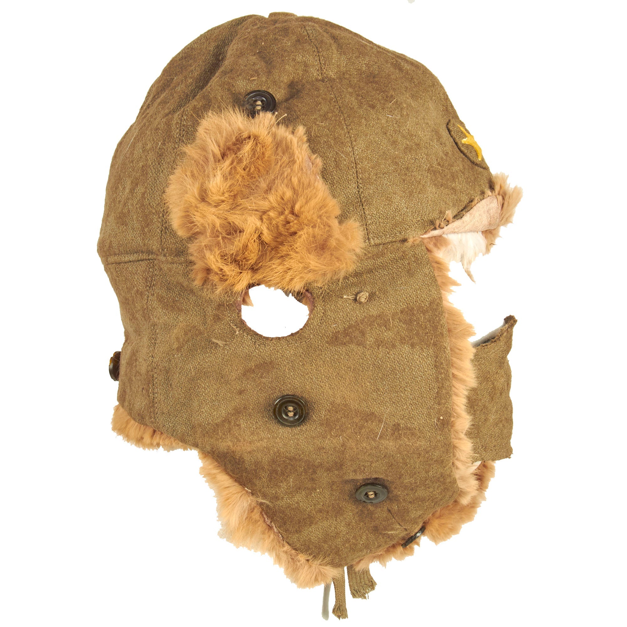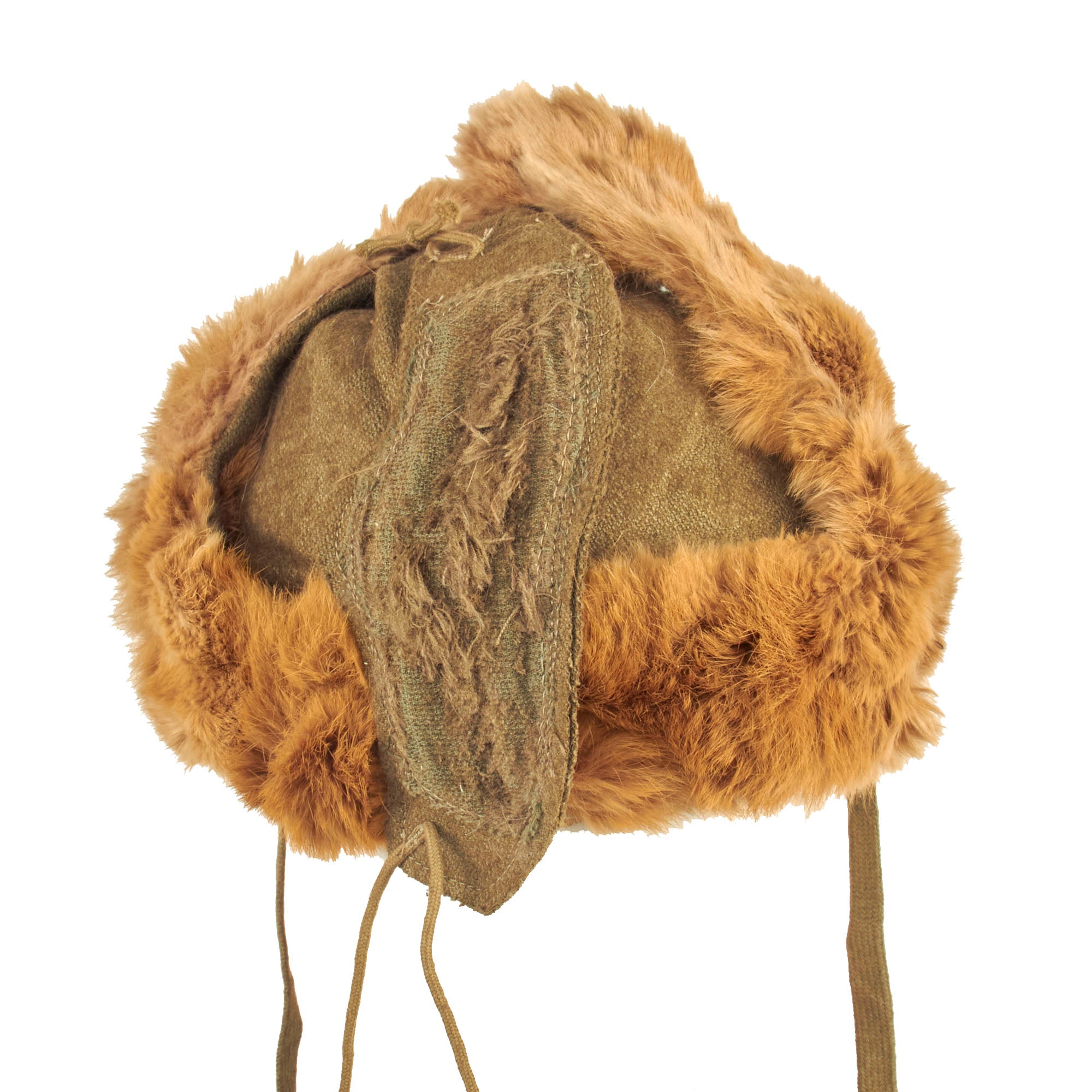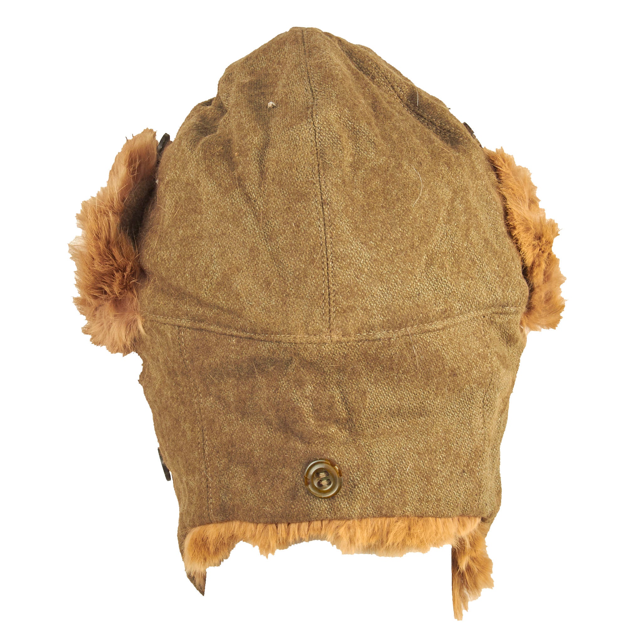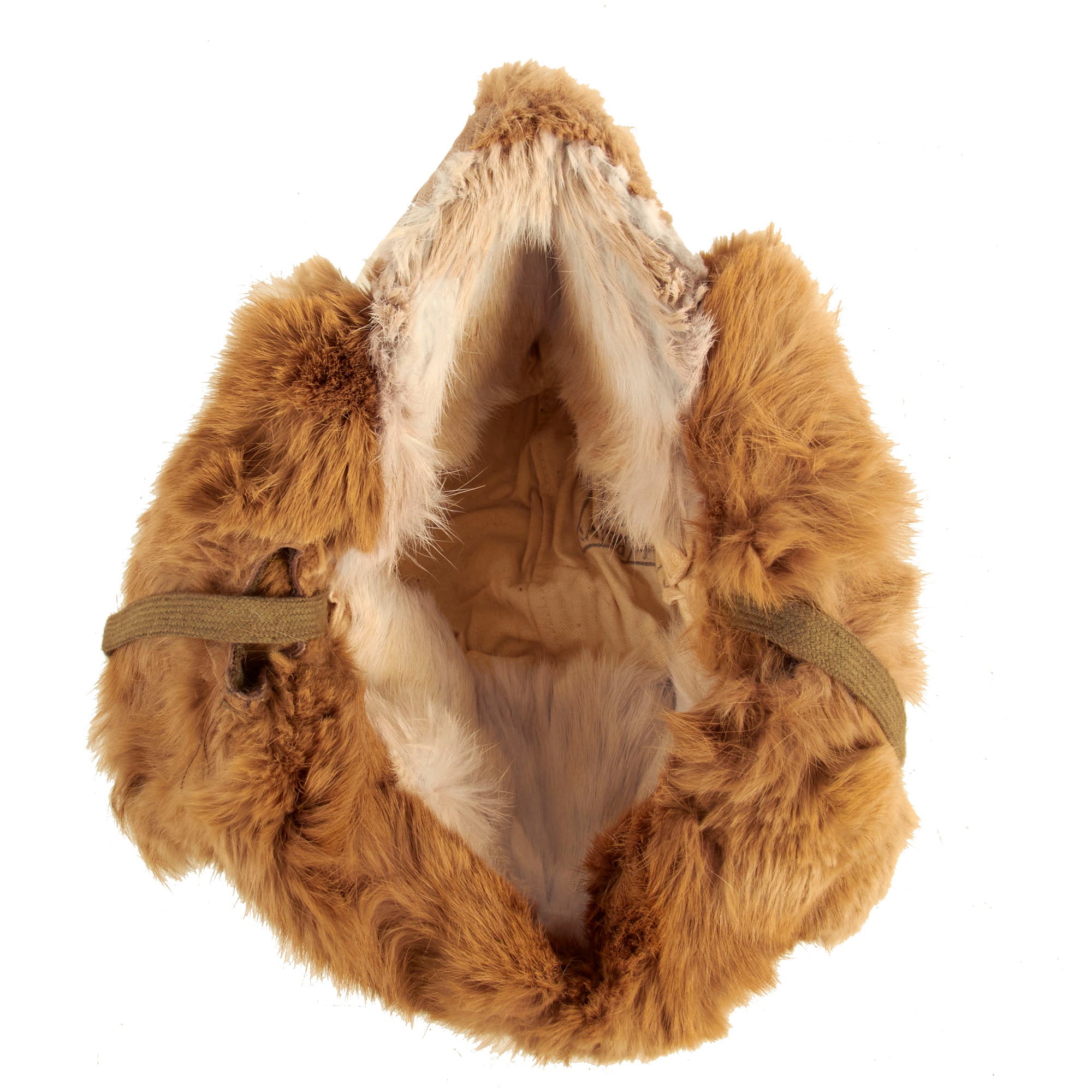 Condition of the cap is very good, with little sign that this was used in the field. The main issue is loss of the fur on the trim above the front. Rabbit fur is very delicate and soft, so this is very common to see on items of this age. The inside of the flap, which is lined with carpet-like imitation fur, is far more resilient, and in great shape.