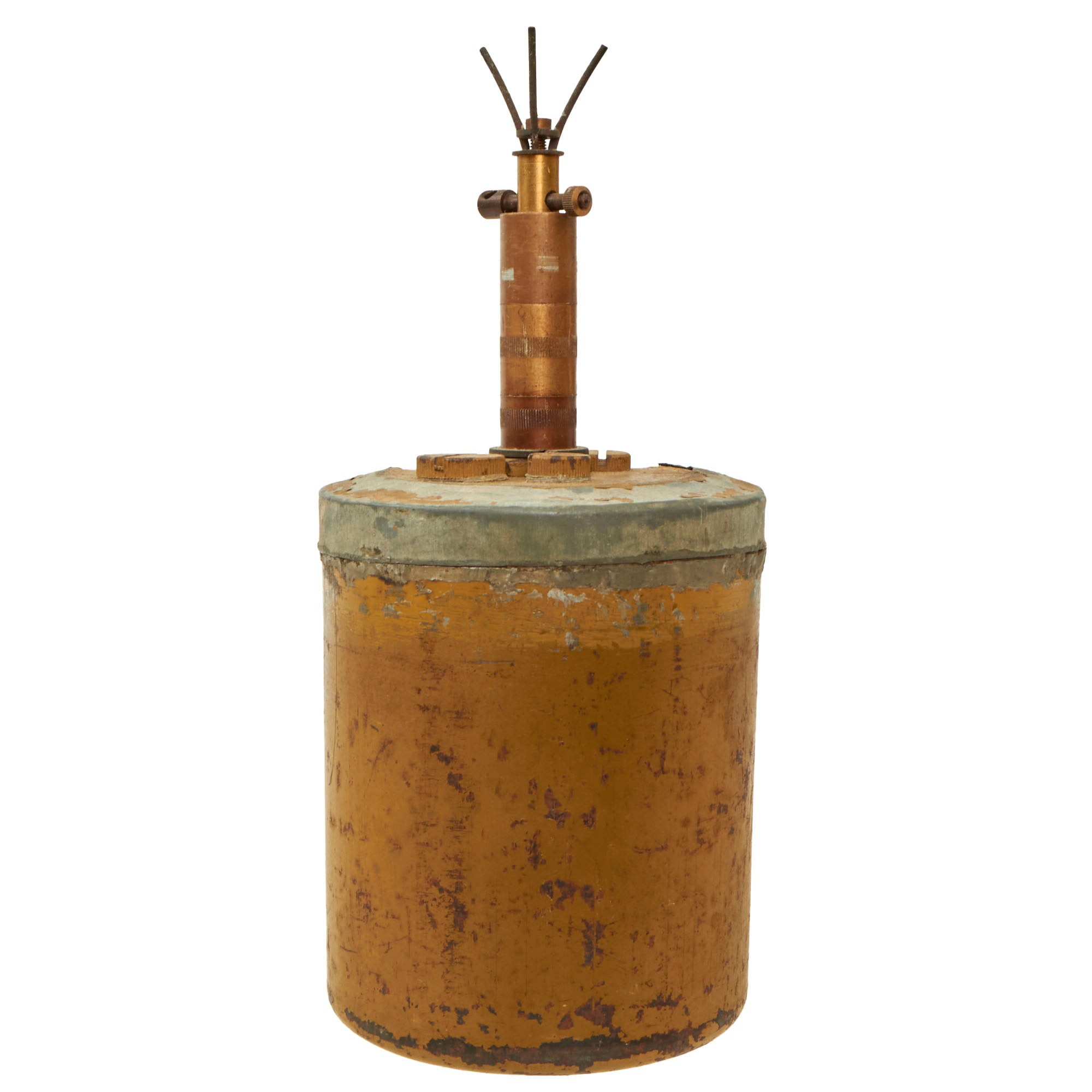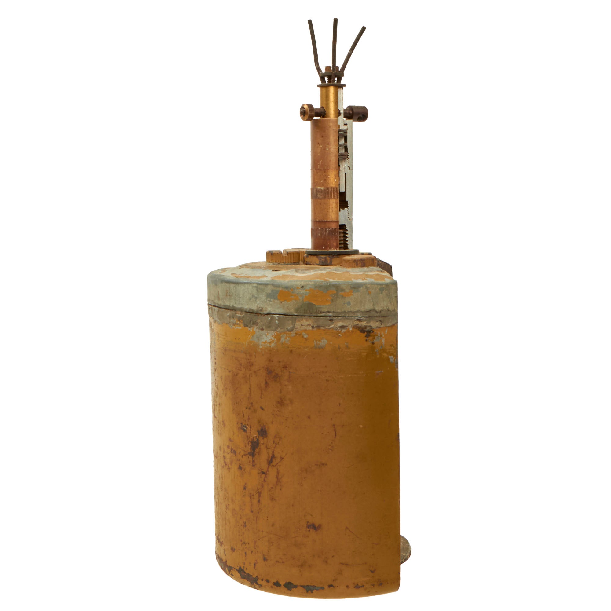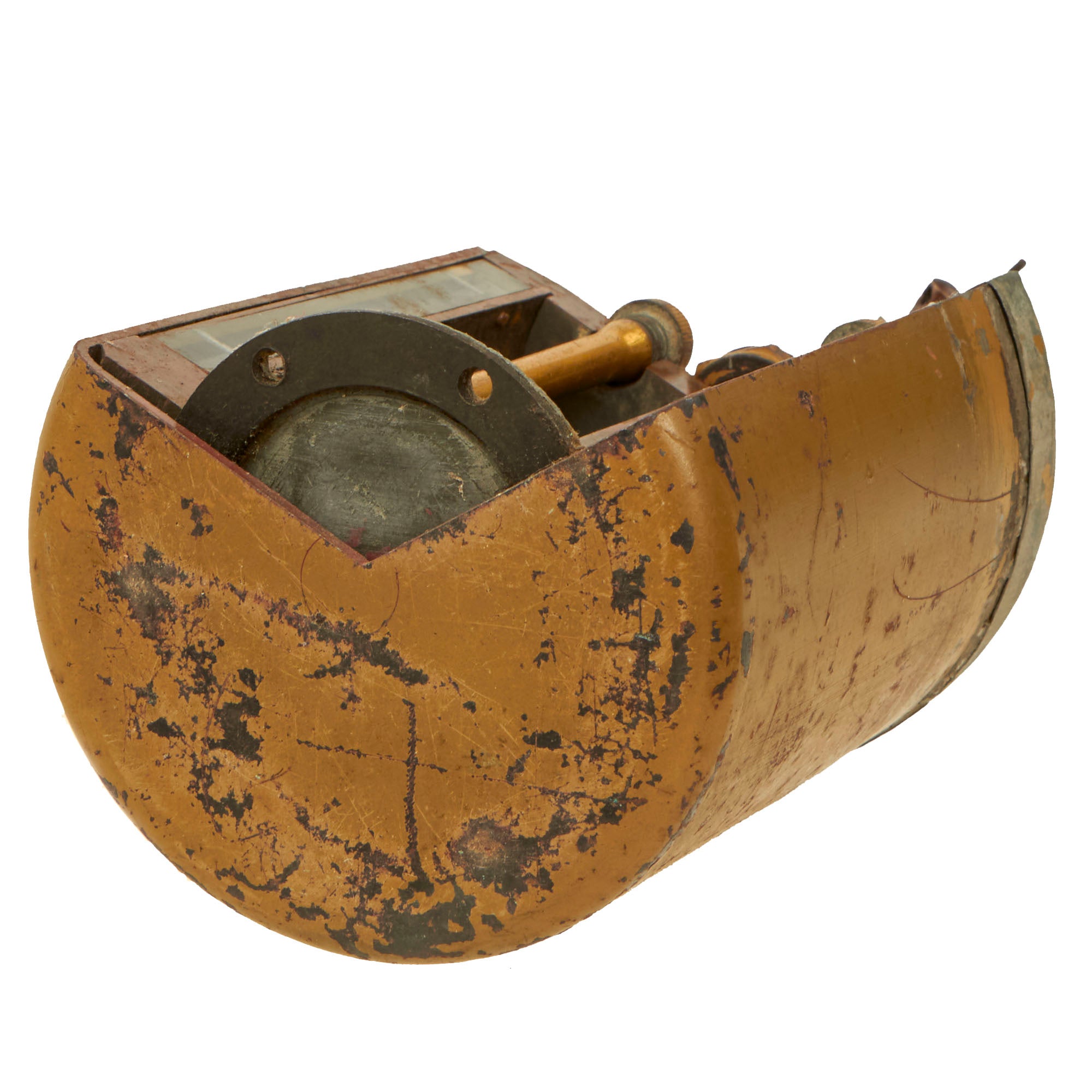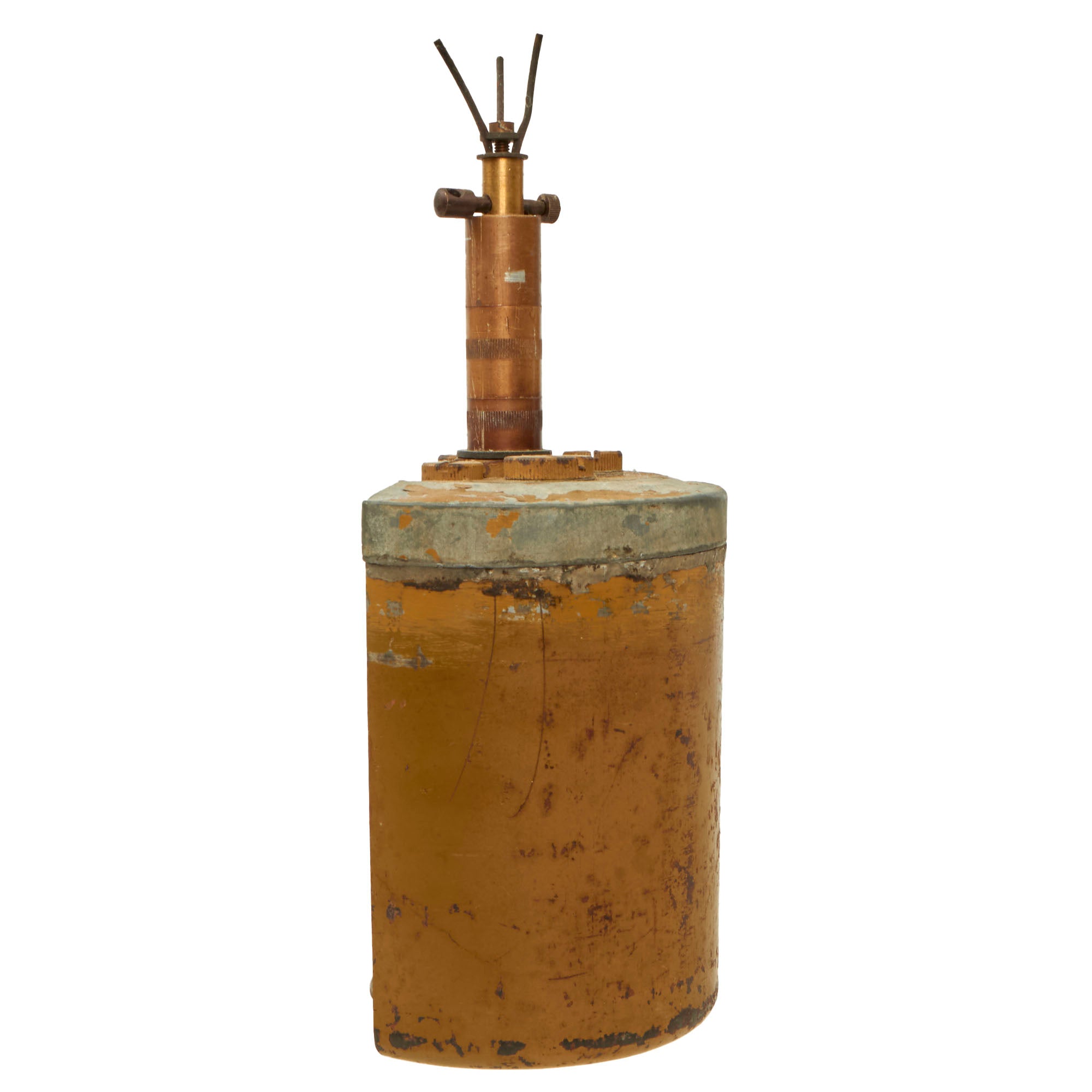Original Item: Only One Available. This is an incredible totally inert original German WWII S-Mine, cutaway and painted for training or identification. It appears to have the original paint, and there are some very faint markings on the top. This is specifically an SMi.-35 S-Mine, with one pressure activated fuse that was designed to resemble blades of grass. Like all deactivated ordnance, this mine is Not Available for Export.