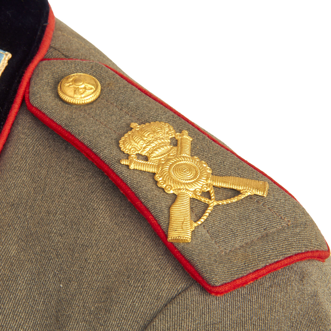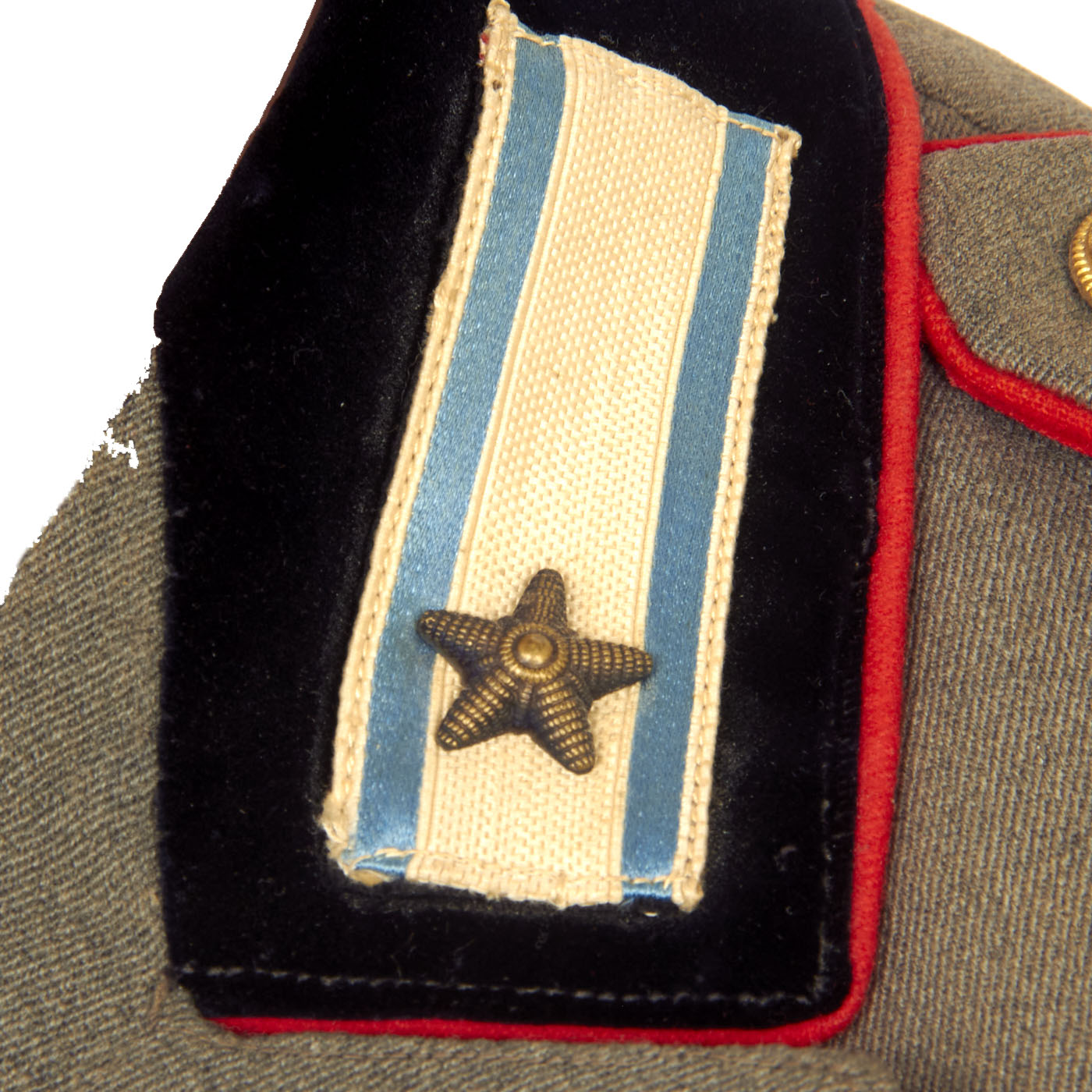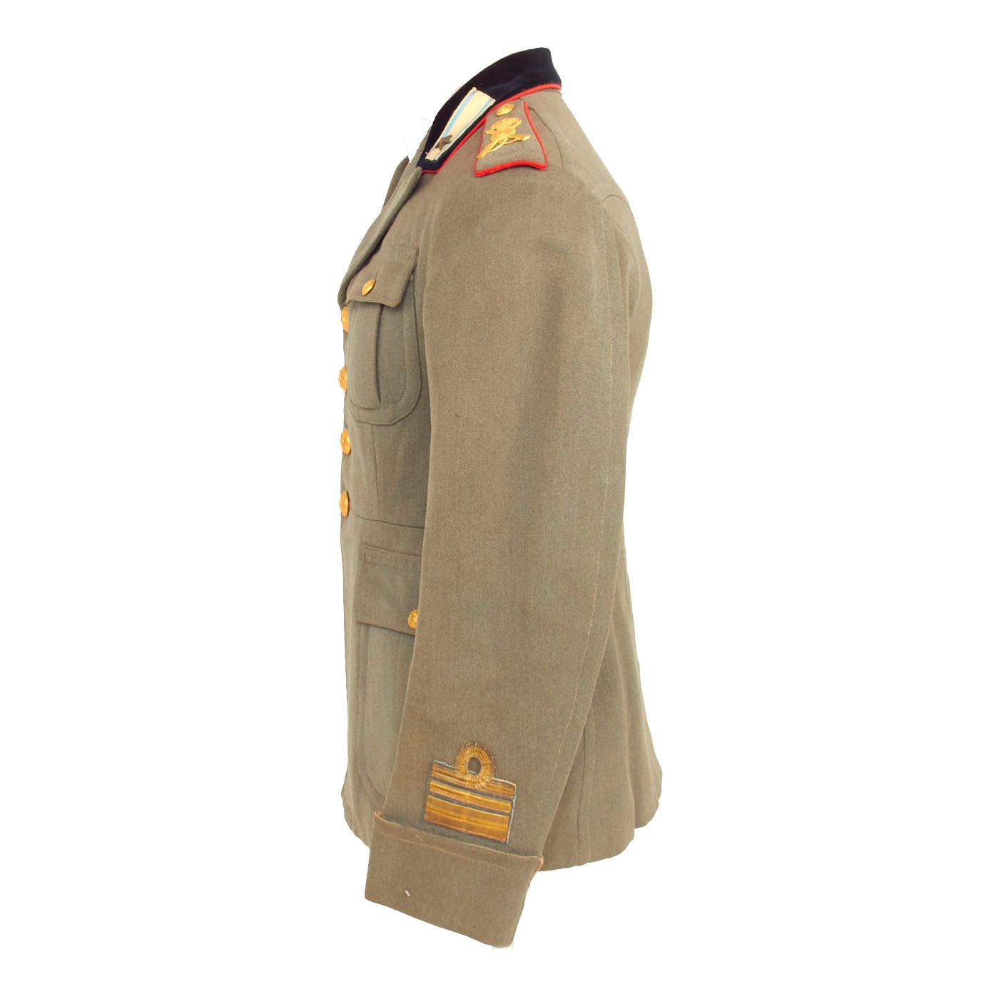 Original Item: Only One Available. This is a very nice example of an Infantry Officer’s High-Quality Tailor Made Uniform to a Lieutenant Colonel from the 36th “Forli” Infantry Division. The Division was engaged in the French Campaign of 1940, and continued on to serve in Albania and Greece until the capitulation of Italian Forces in 1943. The uniform consists of tunic, and breeches. The overall condition of the pieces is excellent with only minor wear from age.