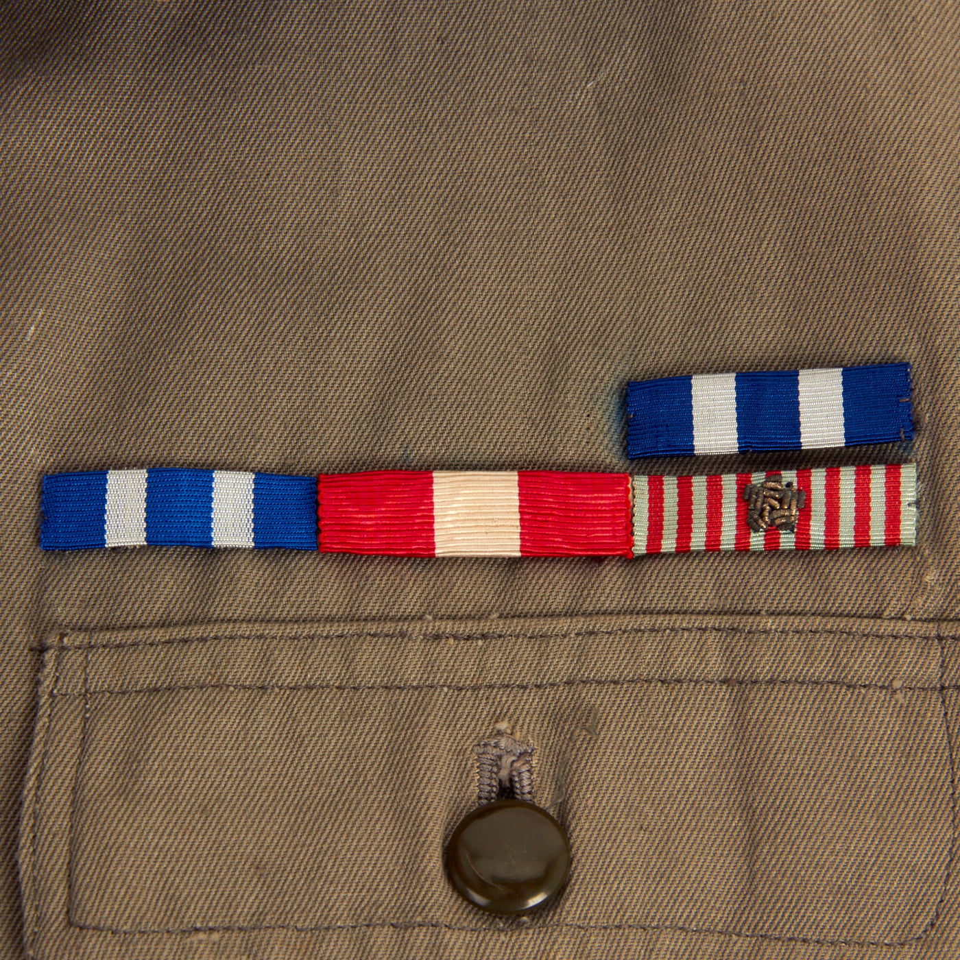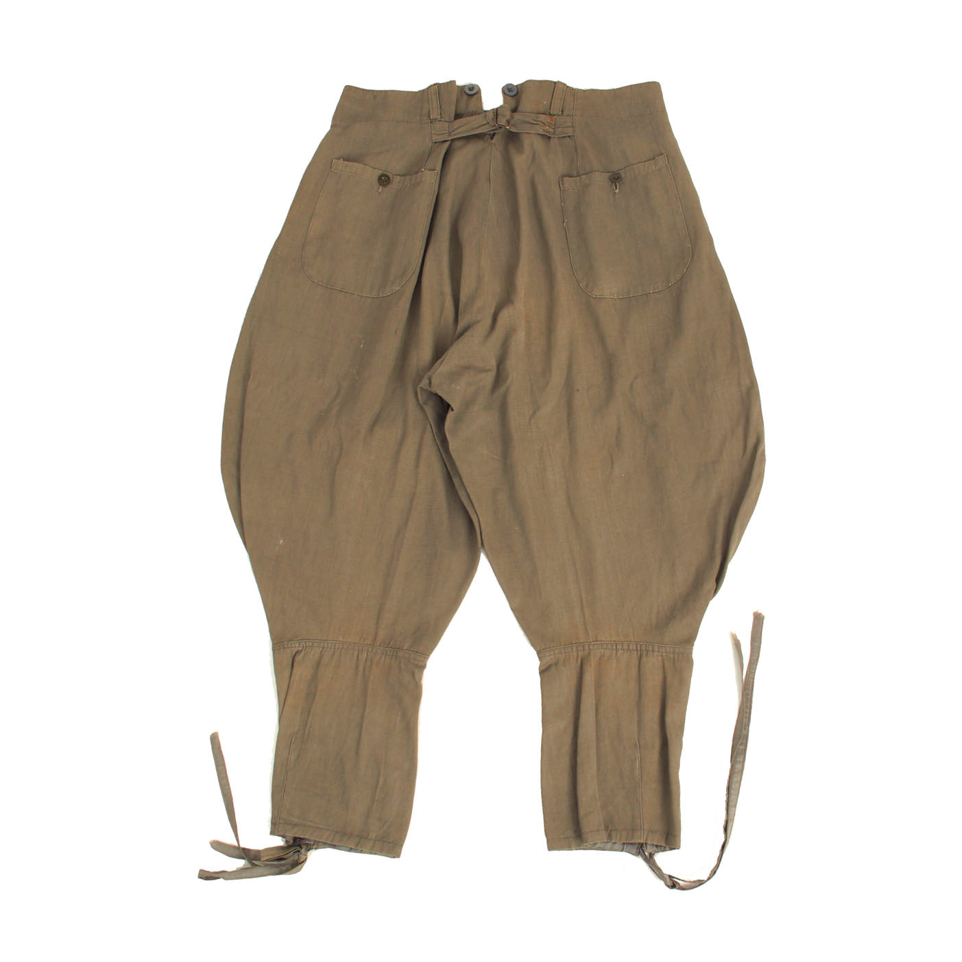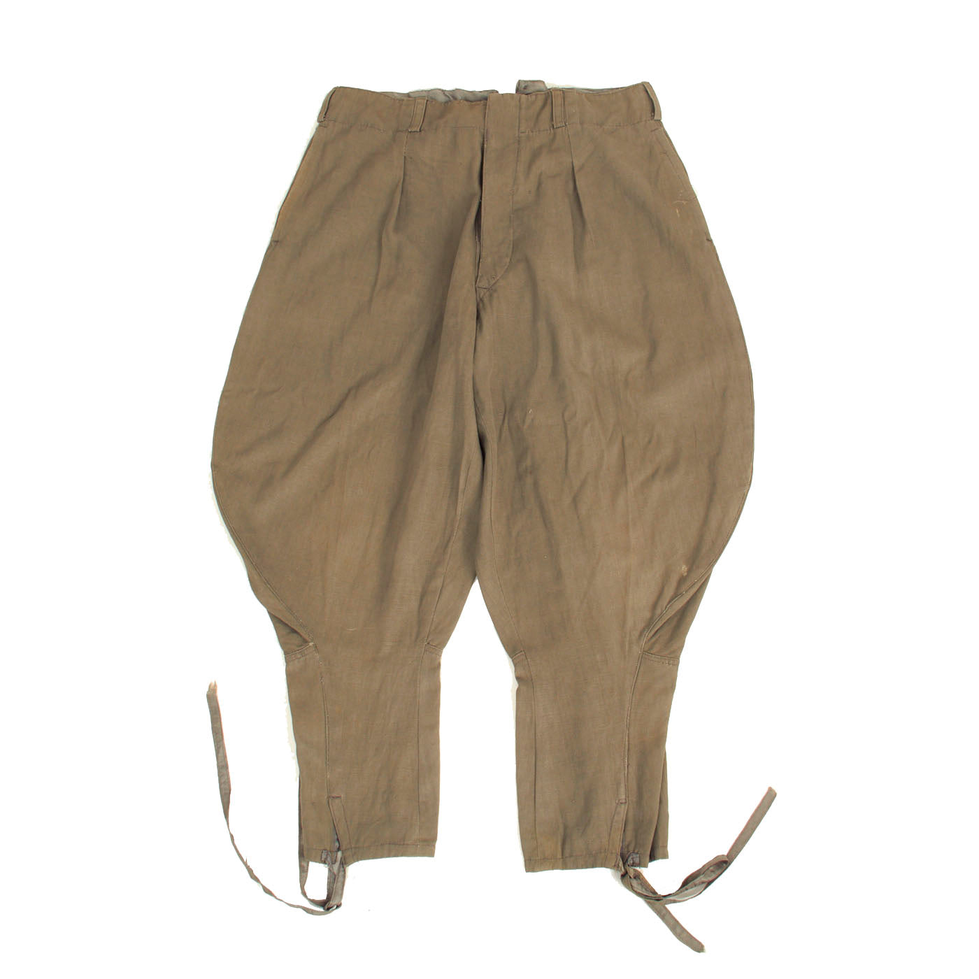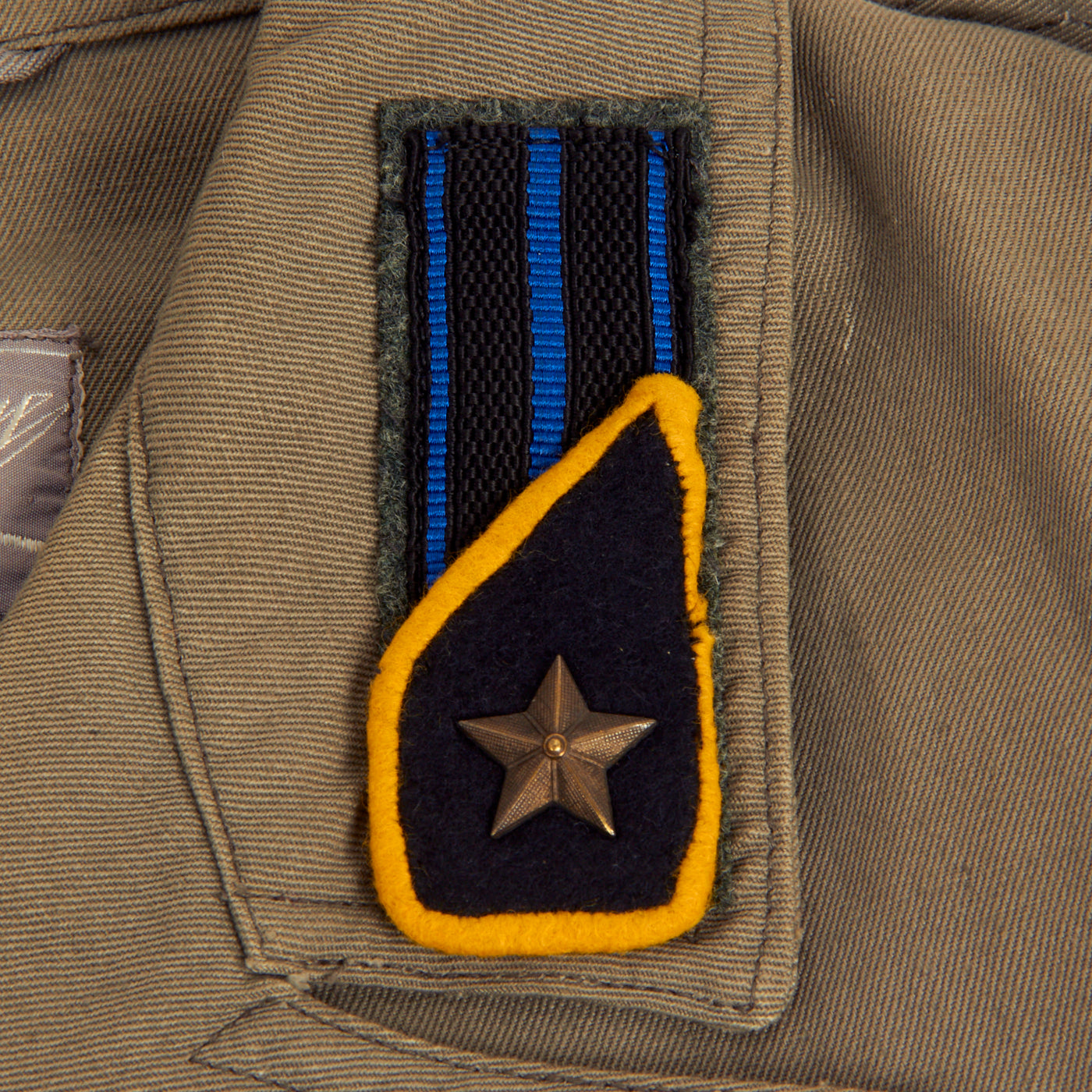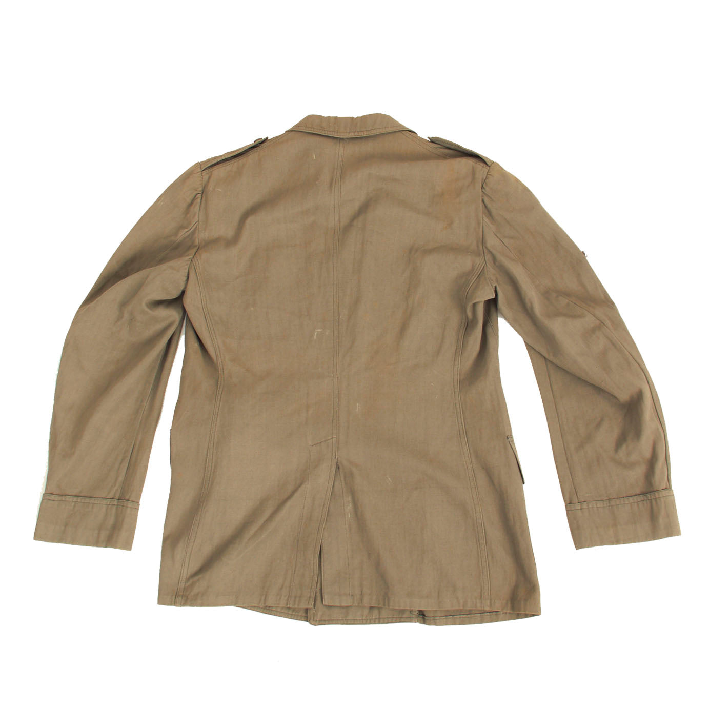 Original Item: Only One Available. World War Two Italian Army Officer Tropical jacket and pants constructed of green cotton. Lapel and sleeve rank insignia for Tenente (First Lieutenant). Single breasted design with four button front and four external pockets. Comes complete with stitched medal ribbons. Overall very good condition.