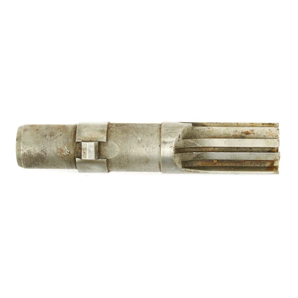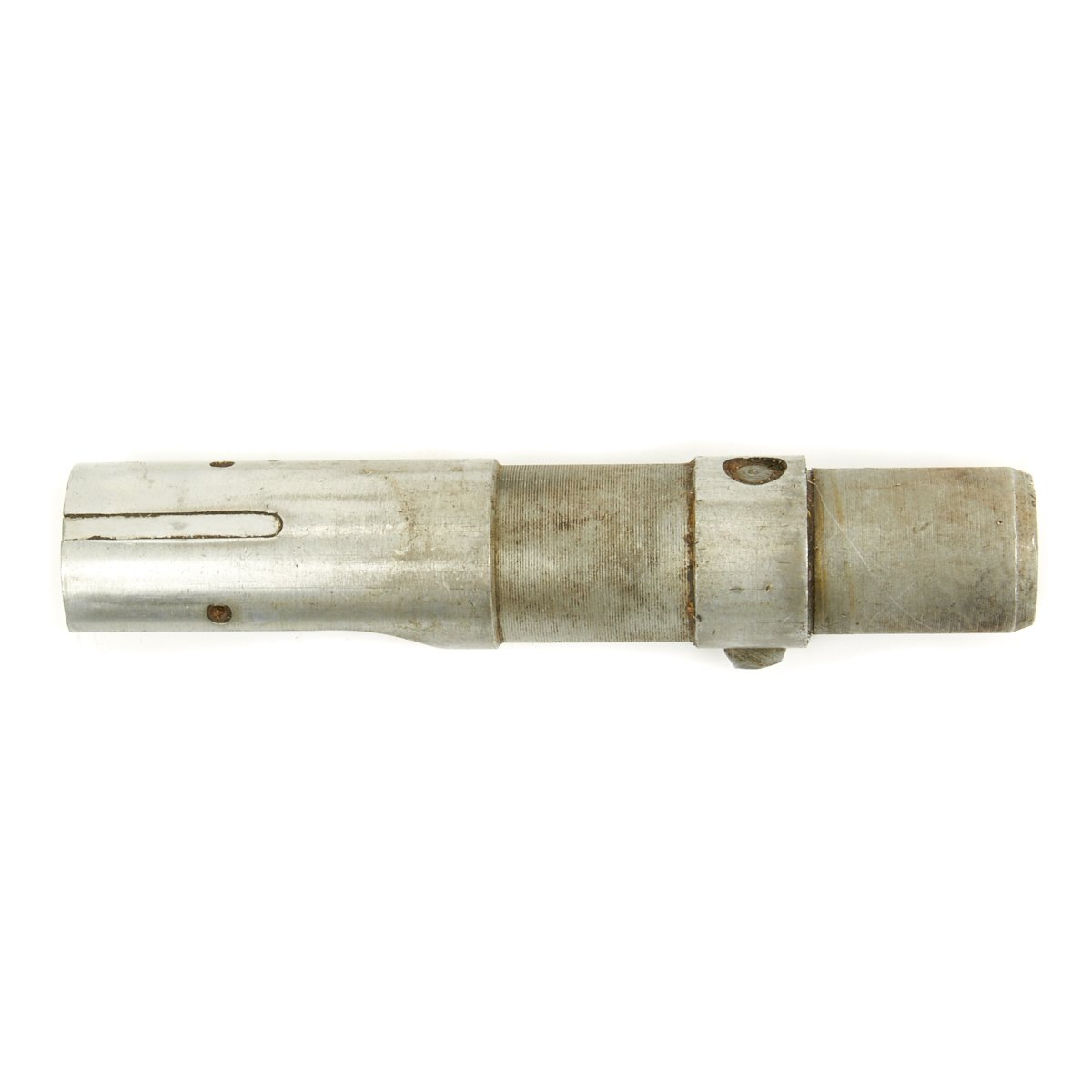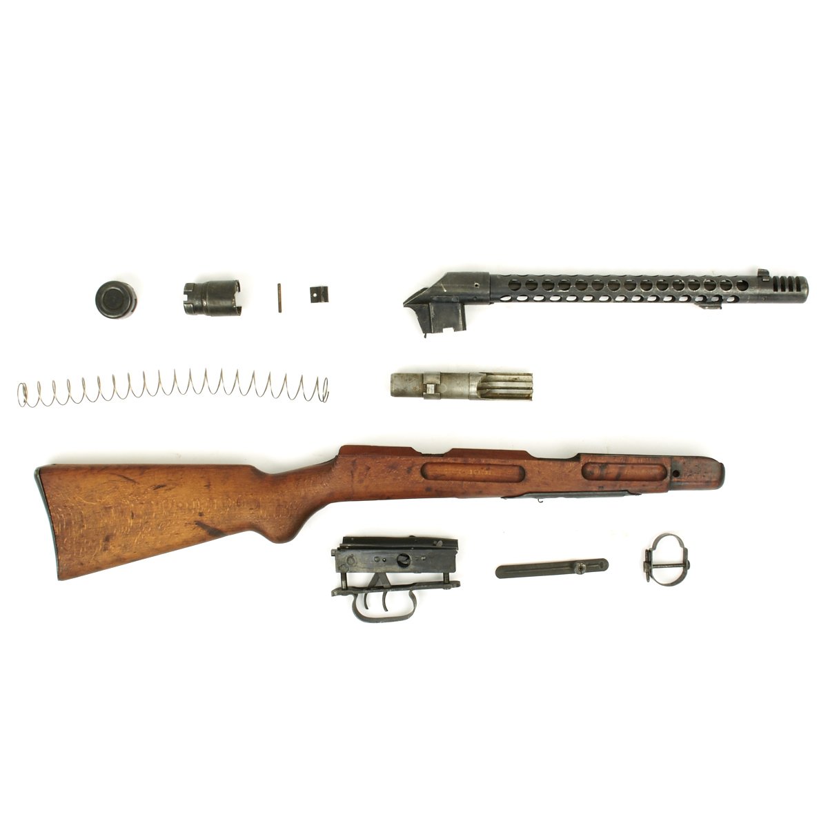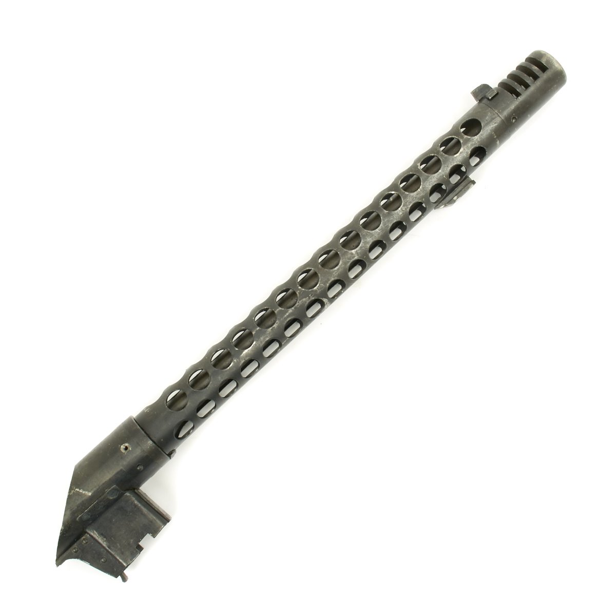 This sample flame cut to BATF specifications is offered in very good condition. It features a fully functional barrel with attached ventilated barrel jacket and magazine well receiver section. Internal parts are included, as well as the trigger group, receiver end piece, butt cap, and rear sight.