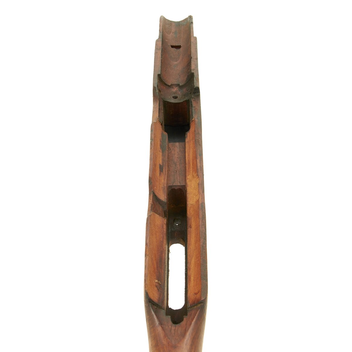 In compliance with Italian army requirements, bayonet mount and rest were eliminated and the recoil compensator was redesigned, the two horizontal muzzle slots substituted by 4 transversal cuttings, judged more effective. This standard army variant was renamed MAB 38A and issued in 1941. A redesigned bayonet based on the Carcano was issued, attaching using a lug and a dovetail in the muzzle booster. We sadly do not have any original bayonets, but we do have reproduction Beretta 38A bayonets available separately.