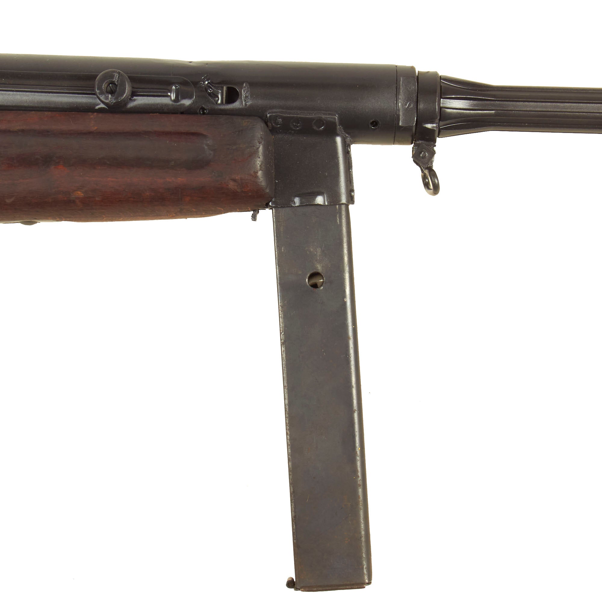 The Germans used this weapon in such frequency that they gave it an official denotation; The MACHINENPISTOLE 738(i), which was also known as the Italian Beretta Model 38/42 fluted barrel SubMachine Gun. This WW2 SubMachine Gun was first introduced in 1942 and very quickly became a favorite not only in Mussolini's Italy but with the German Army too! Chambered in 9mm parabellum, this fired the same cartridge as the German Mp 28, MP 34(o), and the legendary MP 38/40 Schmeisser SubMachine Guns. Later in 1944 the Barrel flutes were omitted, giving rise to the MP38/44. Surprisingly well built, originally all Italian weapons declined in quality as the war progressed, but the M-38/42 and M-38/44 were stand out exceptions and remained a great favorite of the Germans as can be witnessed in countless WW2 photographs.
