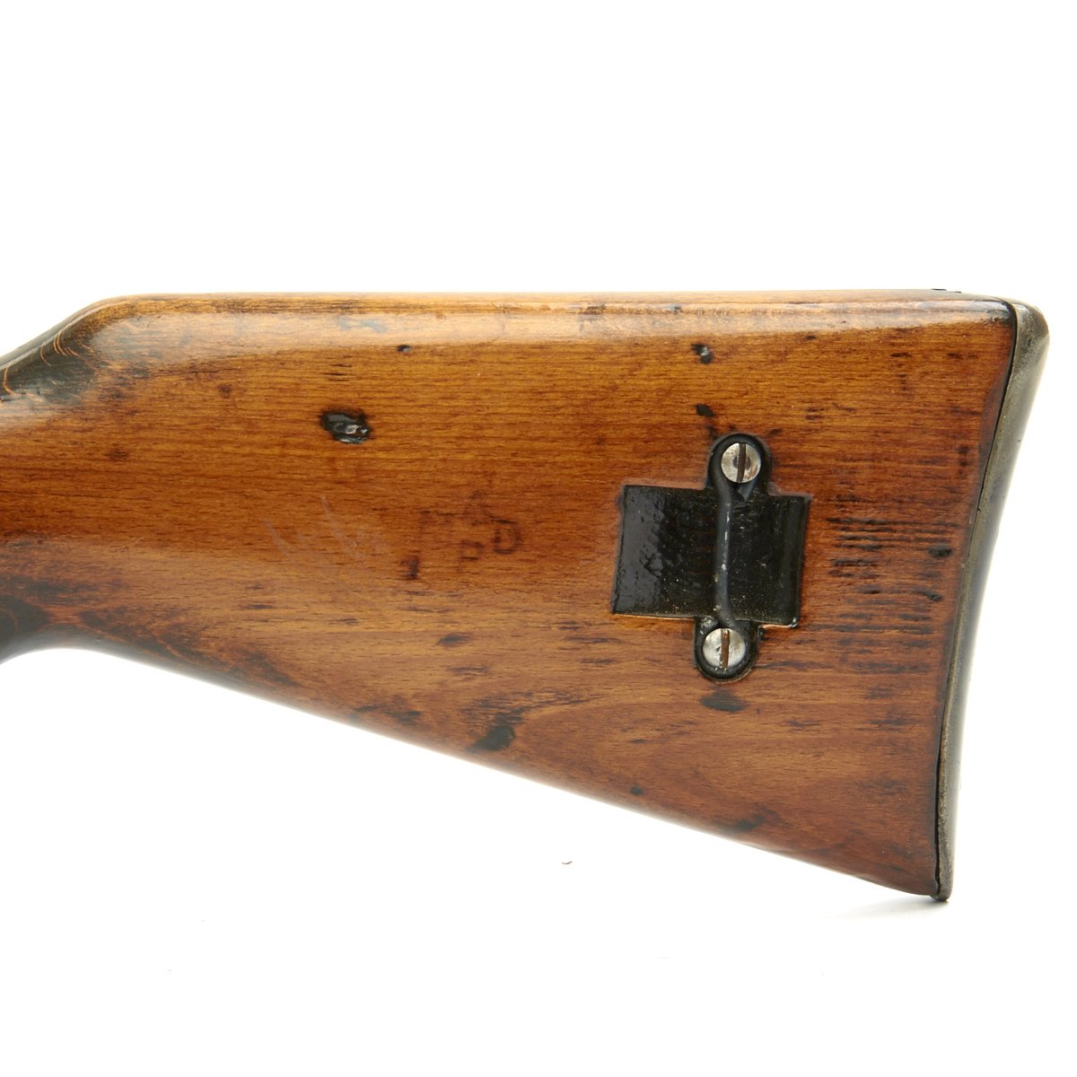 Original Item: Only One Available. Constructed from an original parts set and built on a BATF-approved dummy receiver. An aluminum rod has been placed inside to simulate the bolt. This makes a perfect display piece of an exceptionally hard to find WWII Sub-Machine Gun. Though Italian manufactured by Beretta, these fantastic SMGs were used in great numbers by the German Wehrmacht throughout WWII. This version specifically was popular with paratroopers.