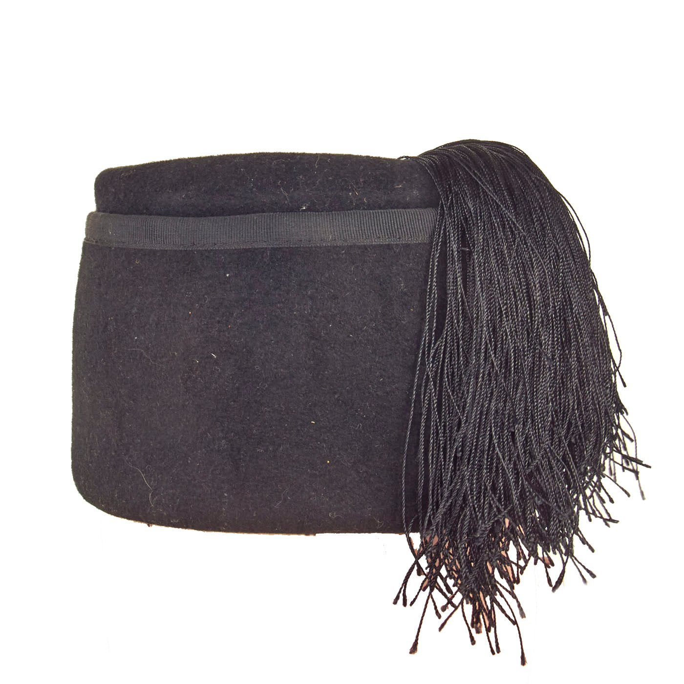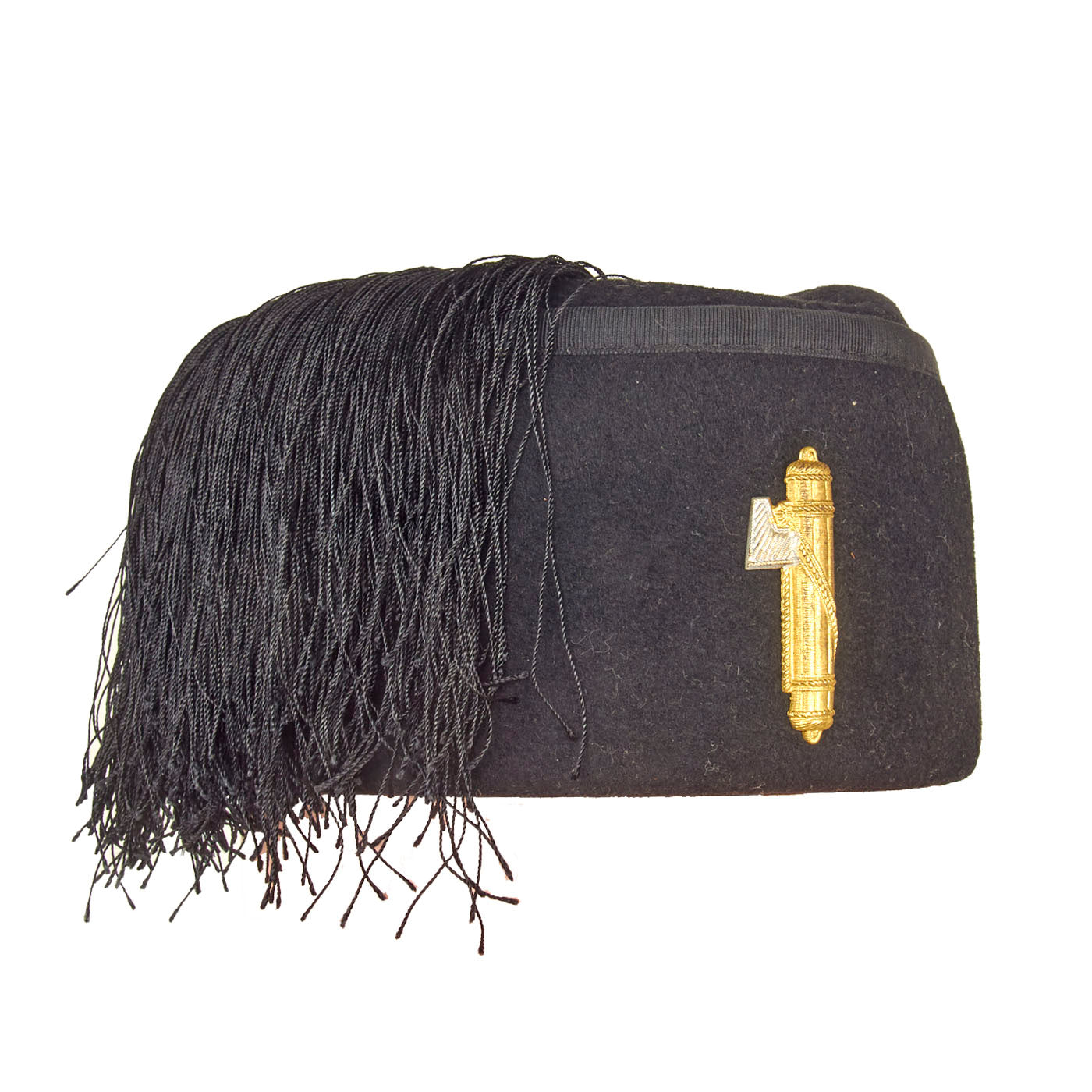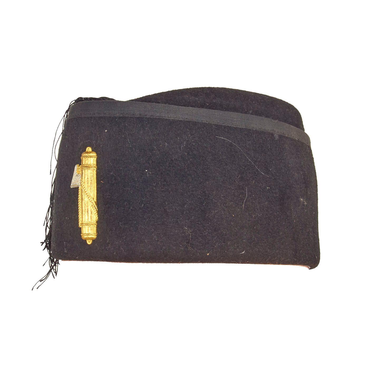 Original Item: Only One Available. This excellent condition fez features a gold fascist wheat symbol to the front which has retained all of its original color. The top of the cap, on the silk type lining, features the lovely manufacturer’s “Industria Italiana” logo above the following information: