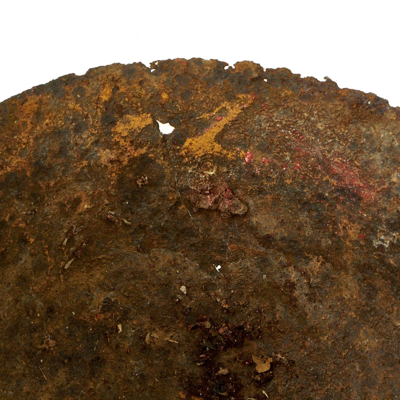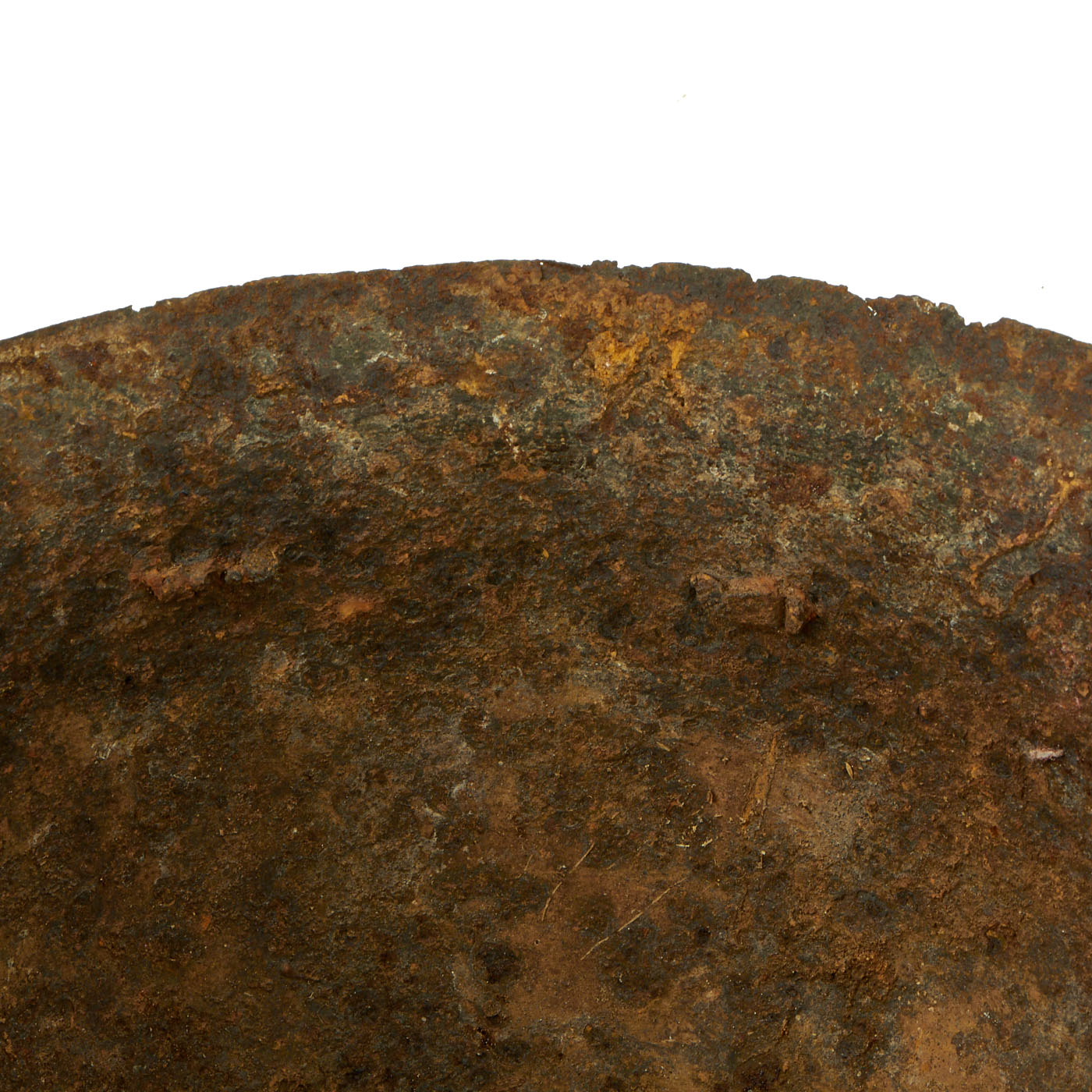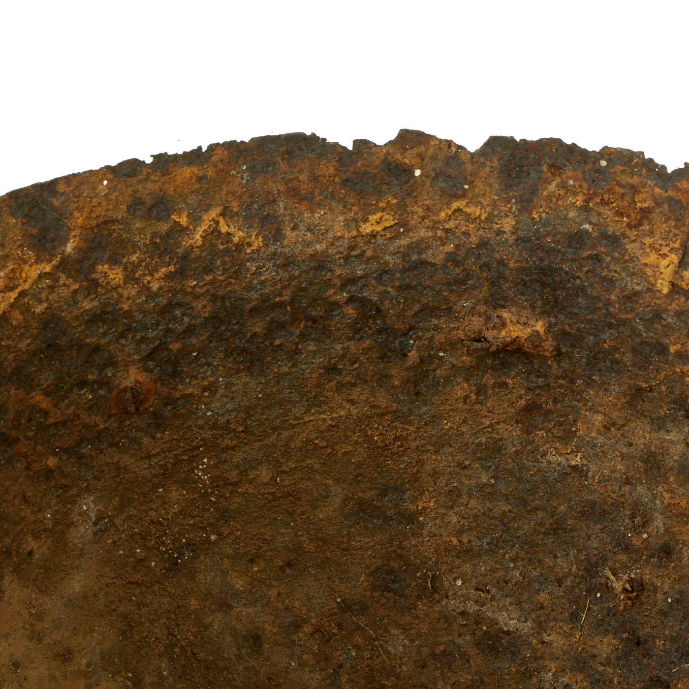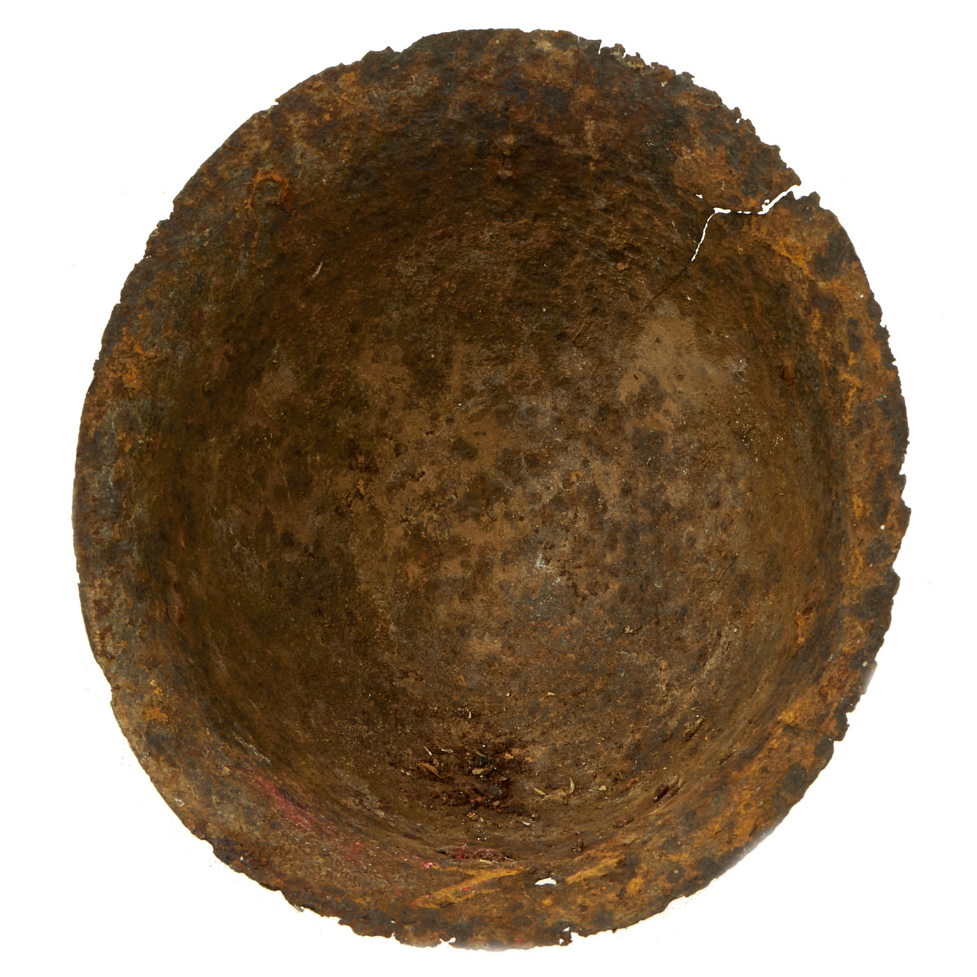What we have here is a very nice "Battlefield Dug Up" example of the Japanese WWII Type 92 Tetsubo (鉄帽 - "steel cap"), first introduced in 1932, Japanese National Era Calender year 2592. These were also colloquially called the tetsukabuto ( 鉄 冑 "steel helmet") by troops. This was purchased as part of a large military collection, and the information we received with the helmet was that it was dug up on the Island, probably during the era of U.S. occupation, which ended in 1968. Unfortunately we do not have any further information regarding this helmet shell's provenance.