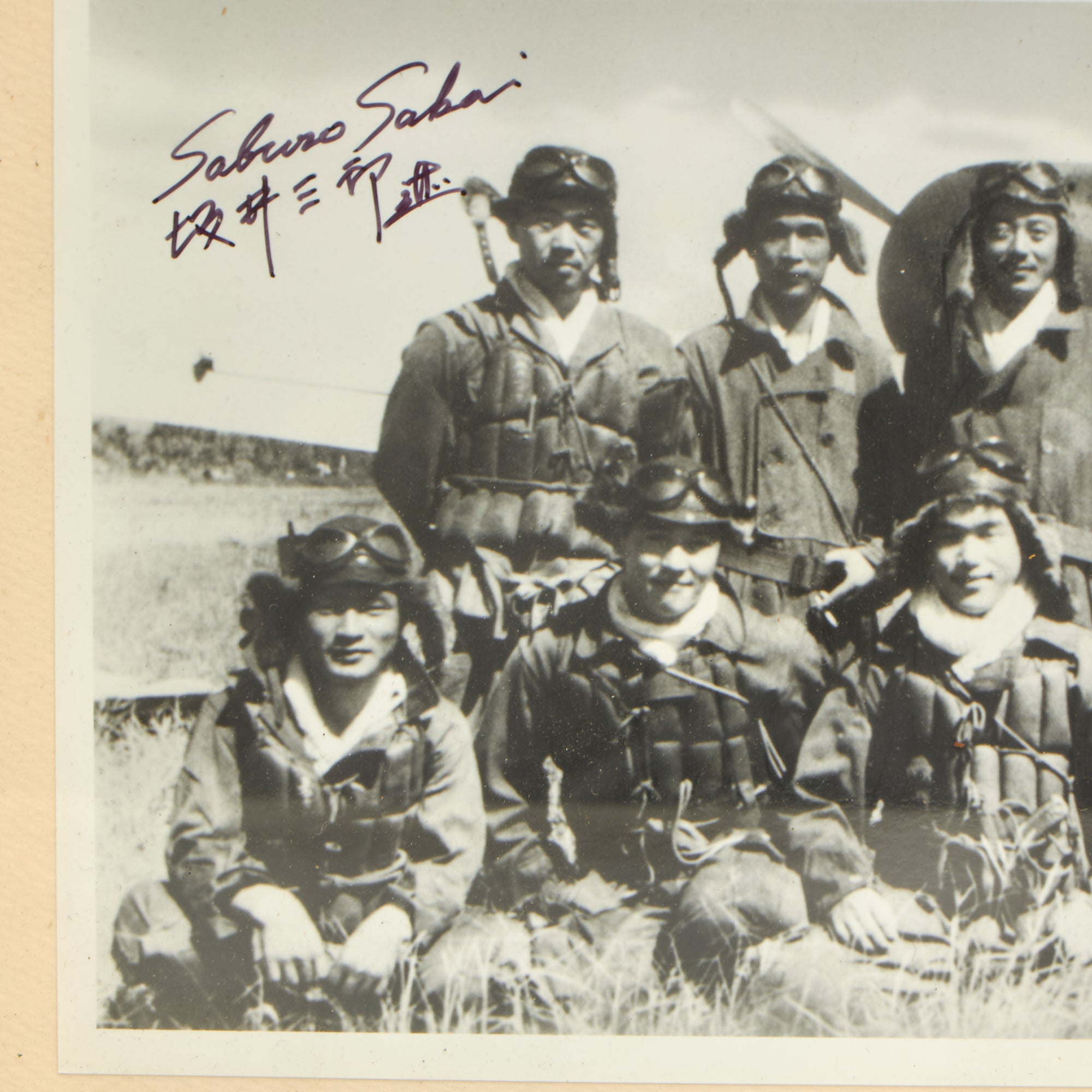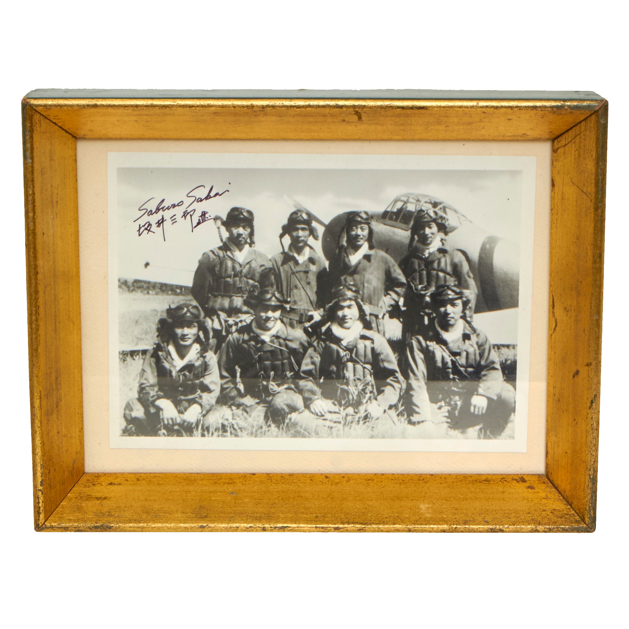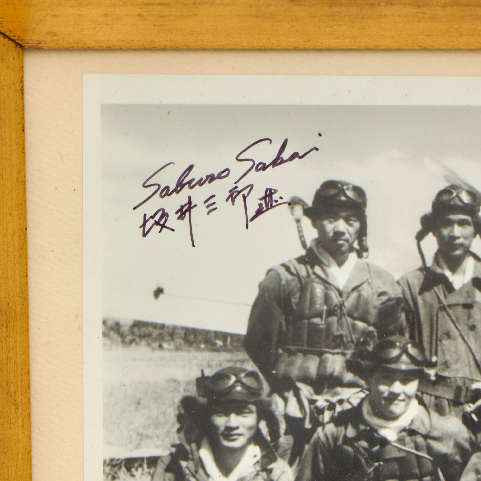 The group photo of Sakai and his unit is signed by Sakai in the top left, both in English and Japanese. On the back of this frame is the business card of a previous owner, James F. Lansdale, a WWII Aviation Historian, which provides some provenance to the group. The second frame is of a small article about Sakai which credits him with 64 confirmed kills and the nickname “The Angel of Death”. Both frames are in fine shape ready to hang on the wall.