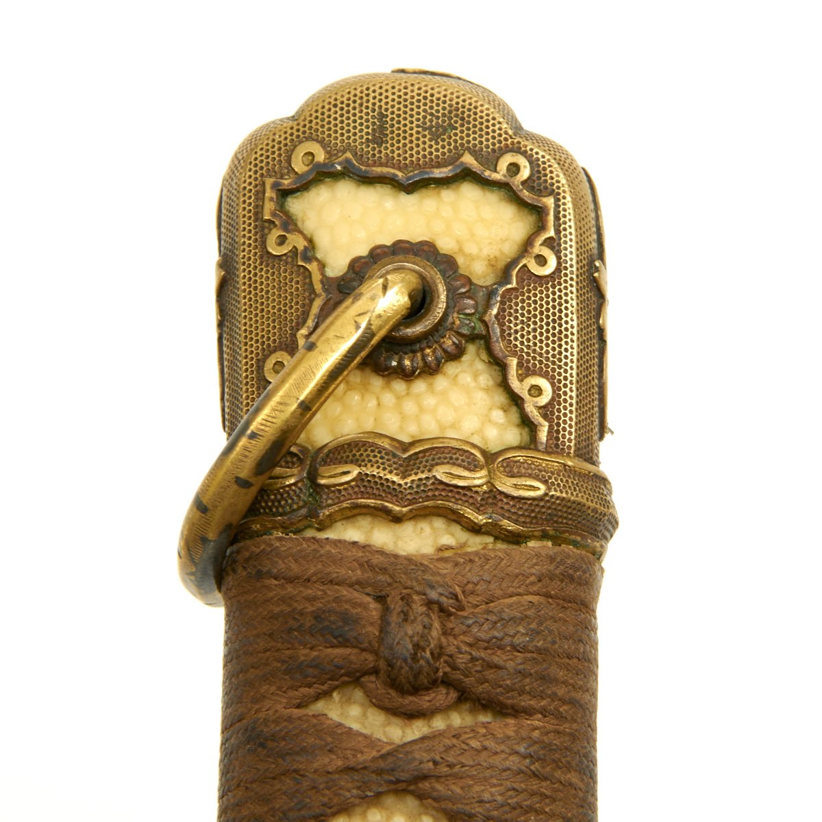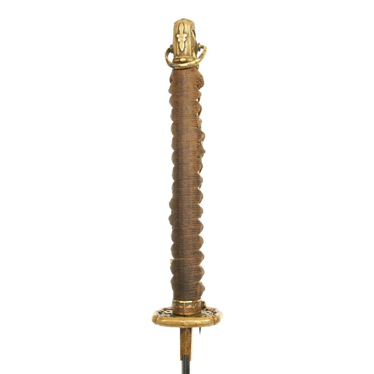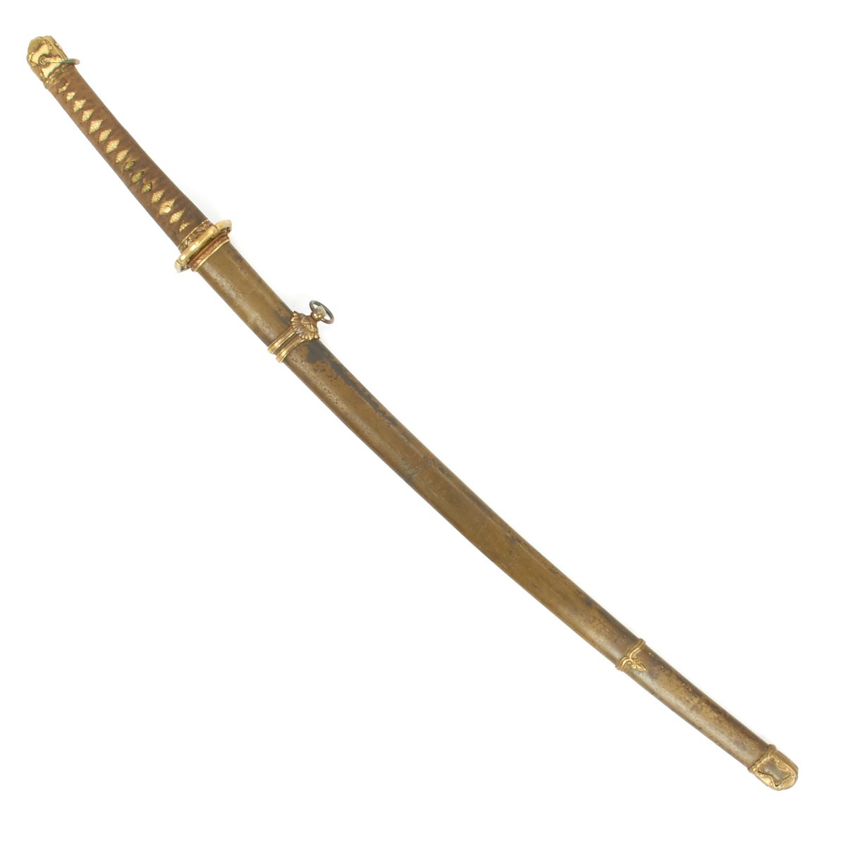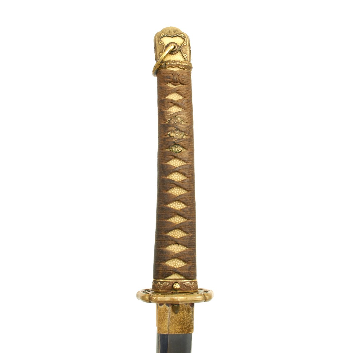 Original Item: Only One Available. Purchased directly from a collector, this is a very nice wartime production medium grade Japanese officer Katana (Gunto). The blade bears the markings of TAKEHISA, who operated in the "Showa-Aichi" province during the war, as per Modern Japanese Swordsmiths by John Slough. He was predominantly known for his medium-grade showato, which comprise the vast bulk of his wartime output. This sword is typical of his work, and is also marked with the date of manufacture: Spring 1943. The blade is arsenal-made, with some machine work, combined with hand work. It has the following features: