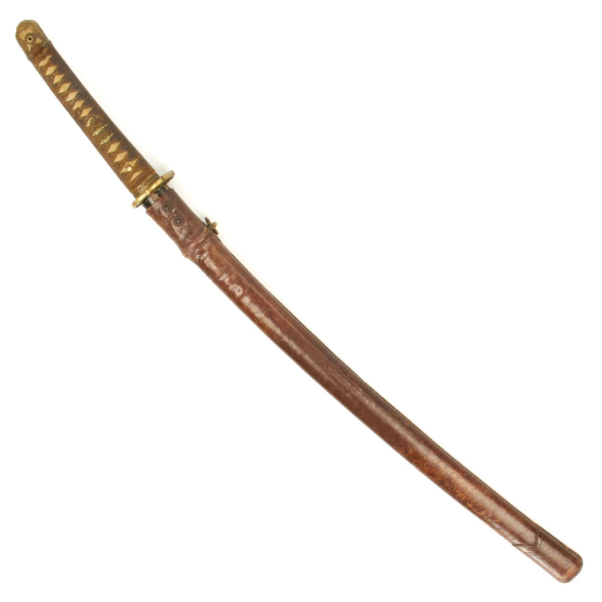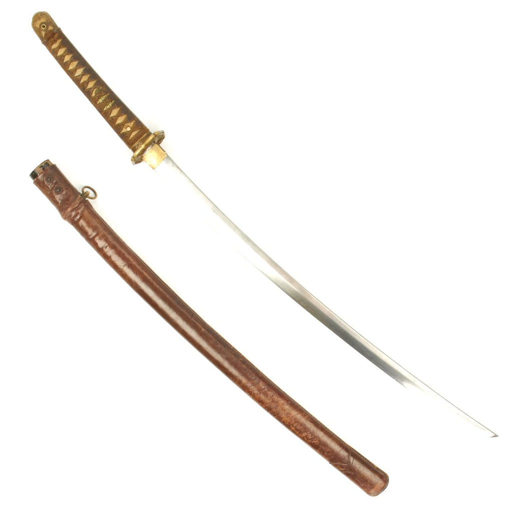 Original Item: Only One Available. Purchased directly from a collector in the UK, this is a very nice wartime production medium to high grade Japanese officer Katana (Gunto). The blade bears the markings of Yoshida Kaneuji, who was swordsmith at Seki Arsenal, complete with his hot-stamped personal seal (kokuin). The Showato blade is also marked with the date of manufacture: 1941. The blade is hand-made and tempered, indicated by a few tell tale characteristics that include: