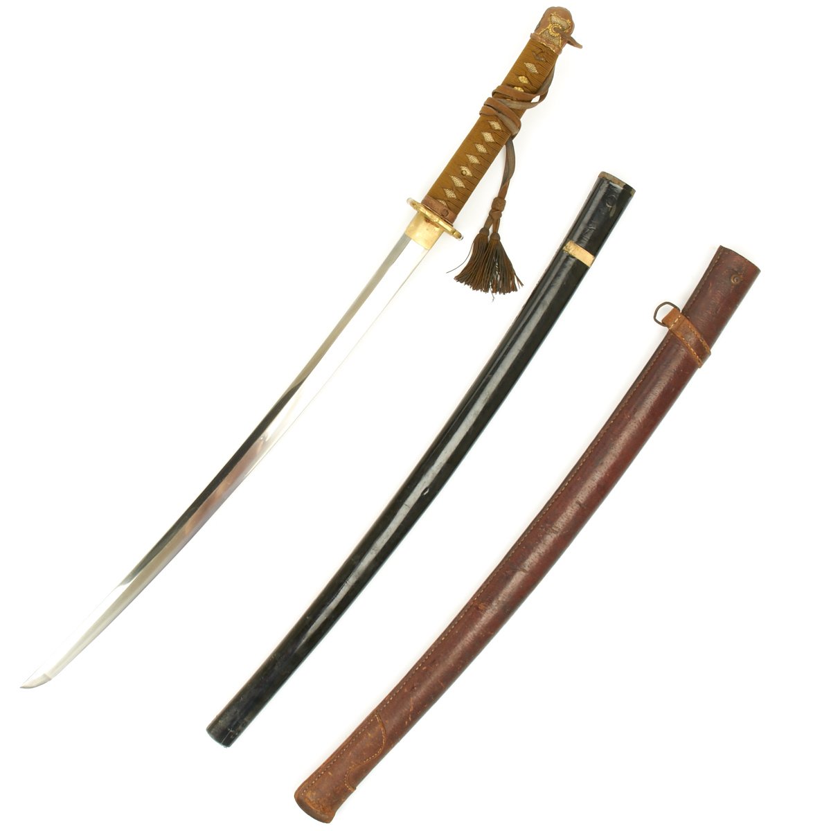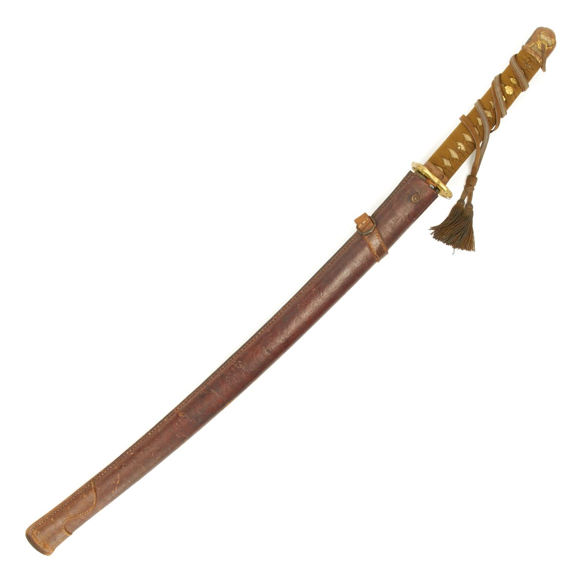 Original Item: Only One Available. Purchased from a collector, this is an nice condition katana with a wooden army scabbard and leather scabbard cover. The blade is handmade and expertly crafted by a master sword maker due to a few tell tale characteristics that include: