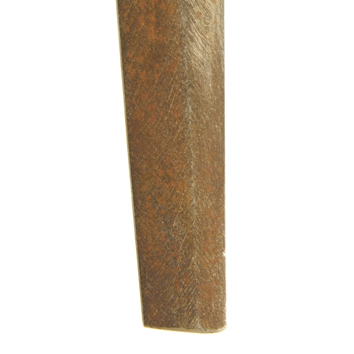 - Folded steel blade (fold lines are evident on the spine and body of blade)