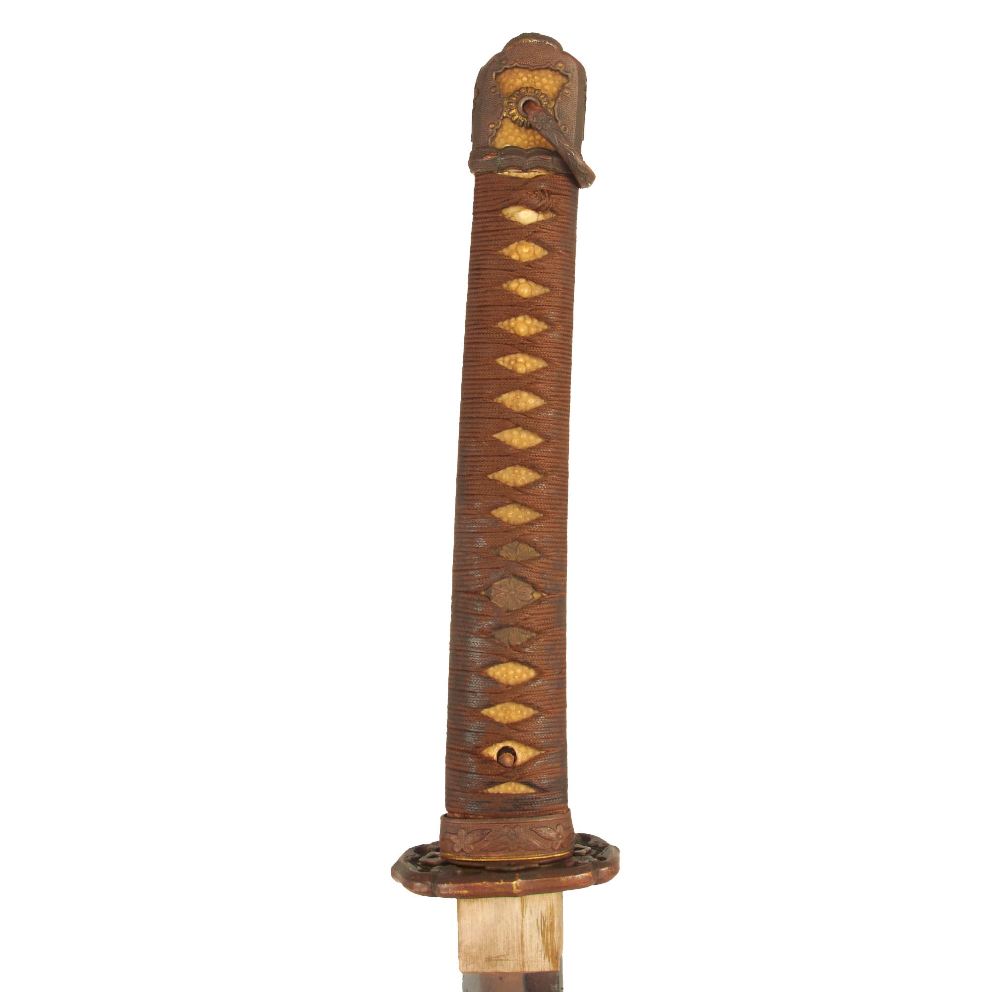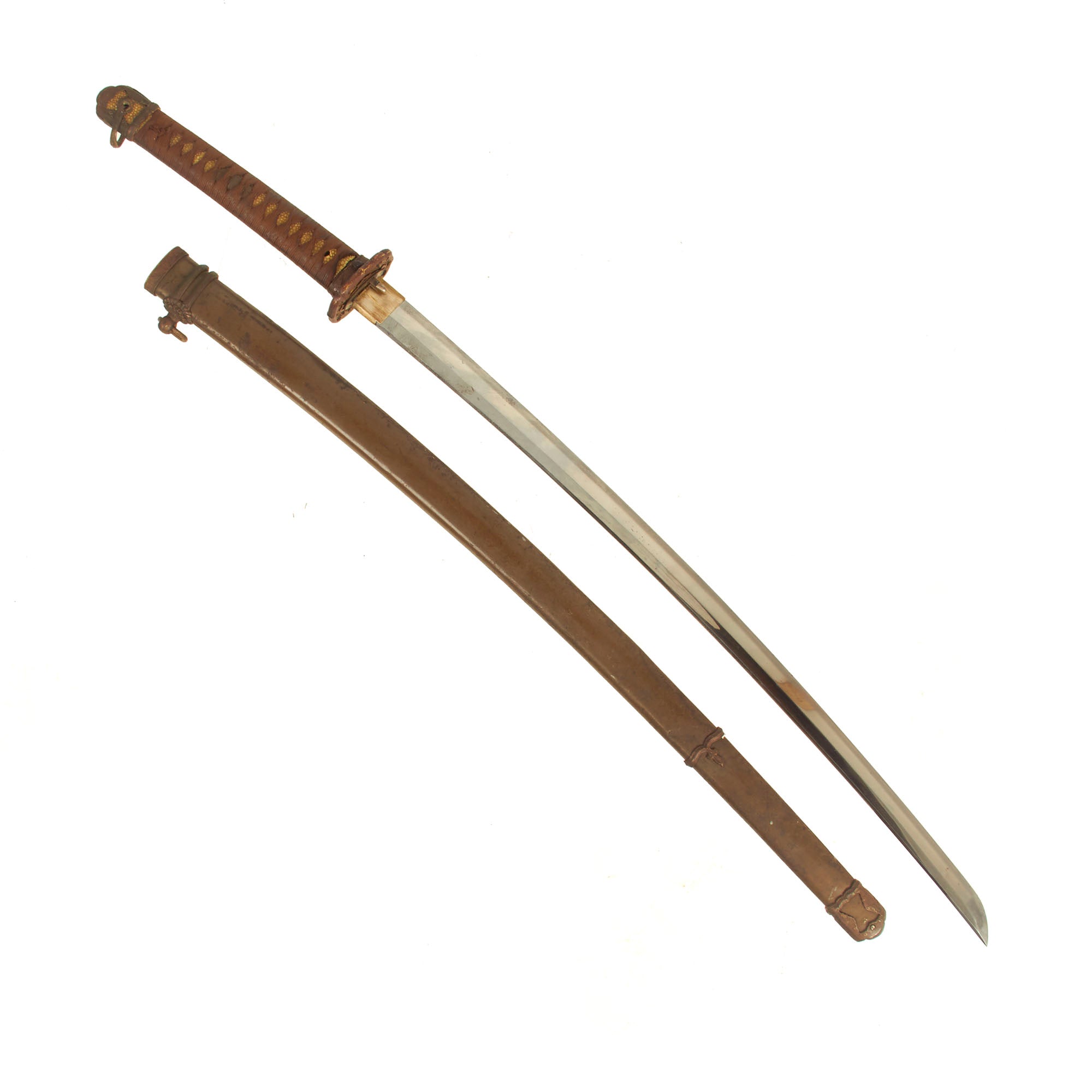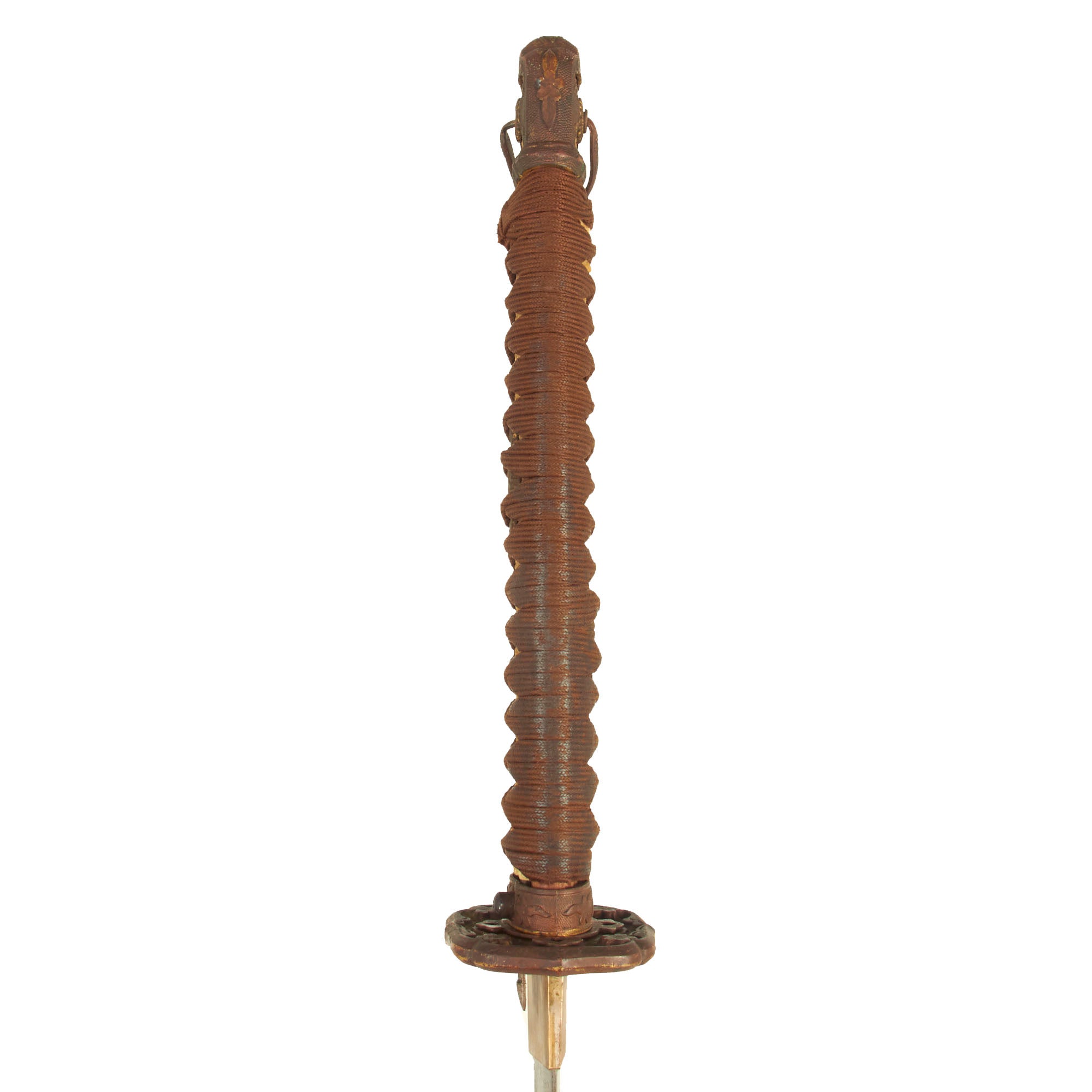 Original Item: One of a Kind. Recently purchased at large military show, this is a very nice USGI Bring-Back wartime production Japanese Army Officer Katana in the Type 98 Shin-Gunto (九八式軍刀 kyūhachi-shiki guntō) setting. These type of fittings (koshirae) are slightly simplified compared to the earlier Type 94. The blade tang is signed by the maker, and appears to be handmade in the traditional fashion. A Shin-Guntō (新軍刀, new military sword) is a weapon and symbol of rank used by the Imperial Japanese Army between the years of 1935 and 1945.