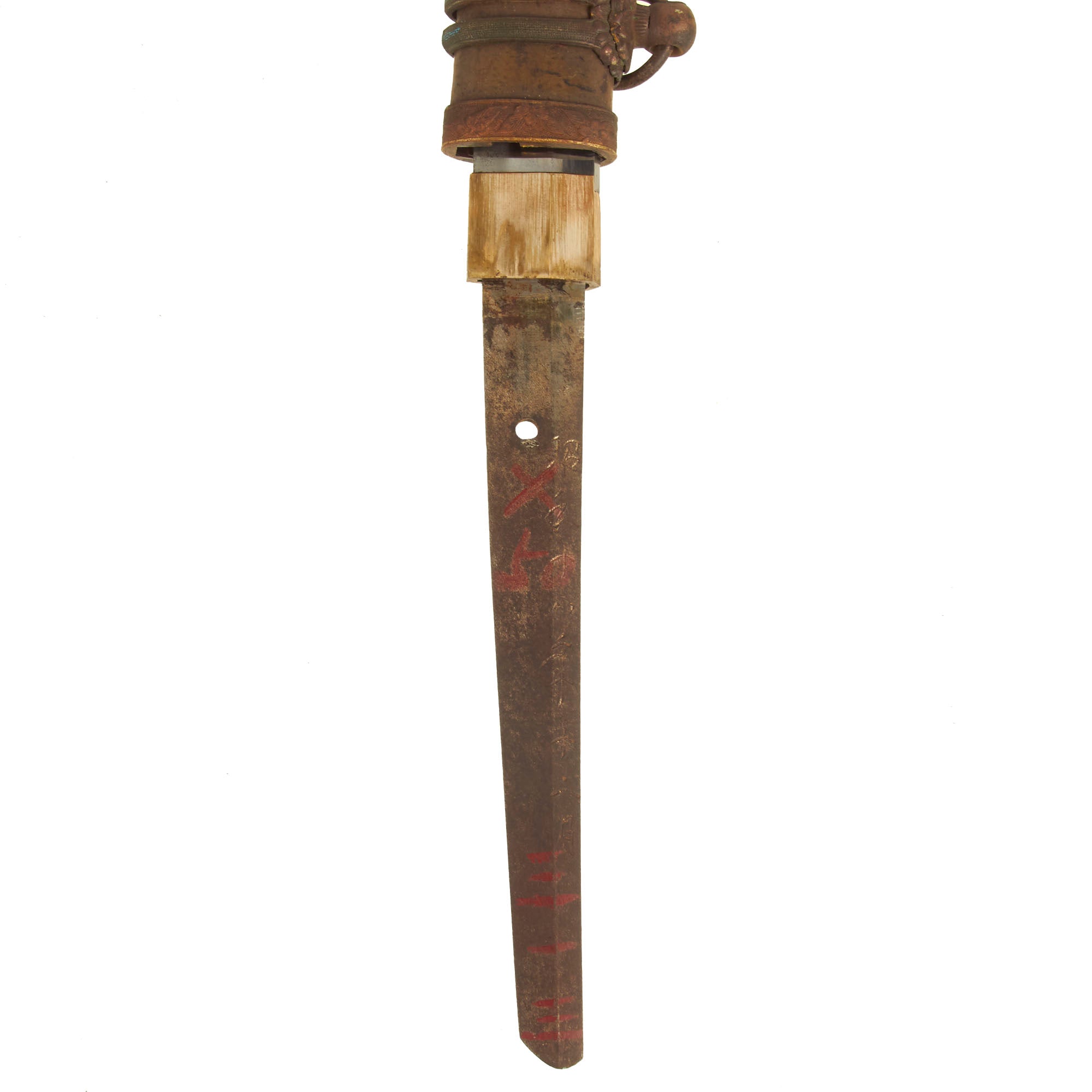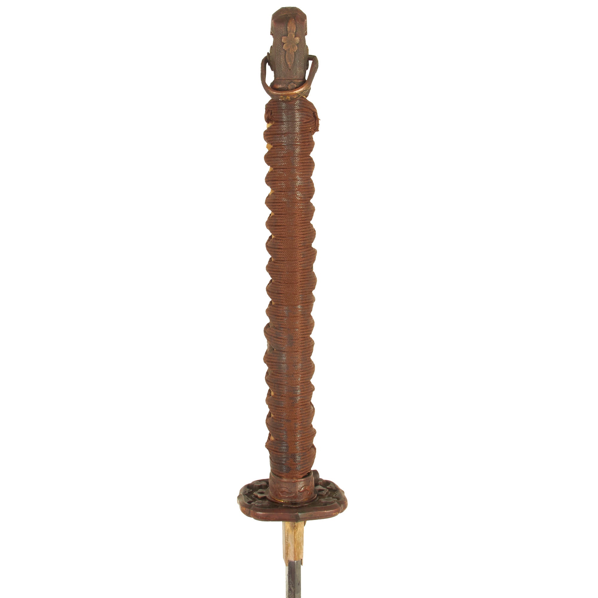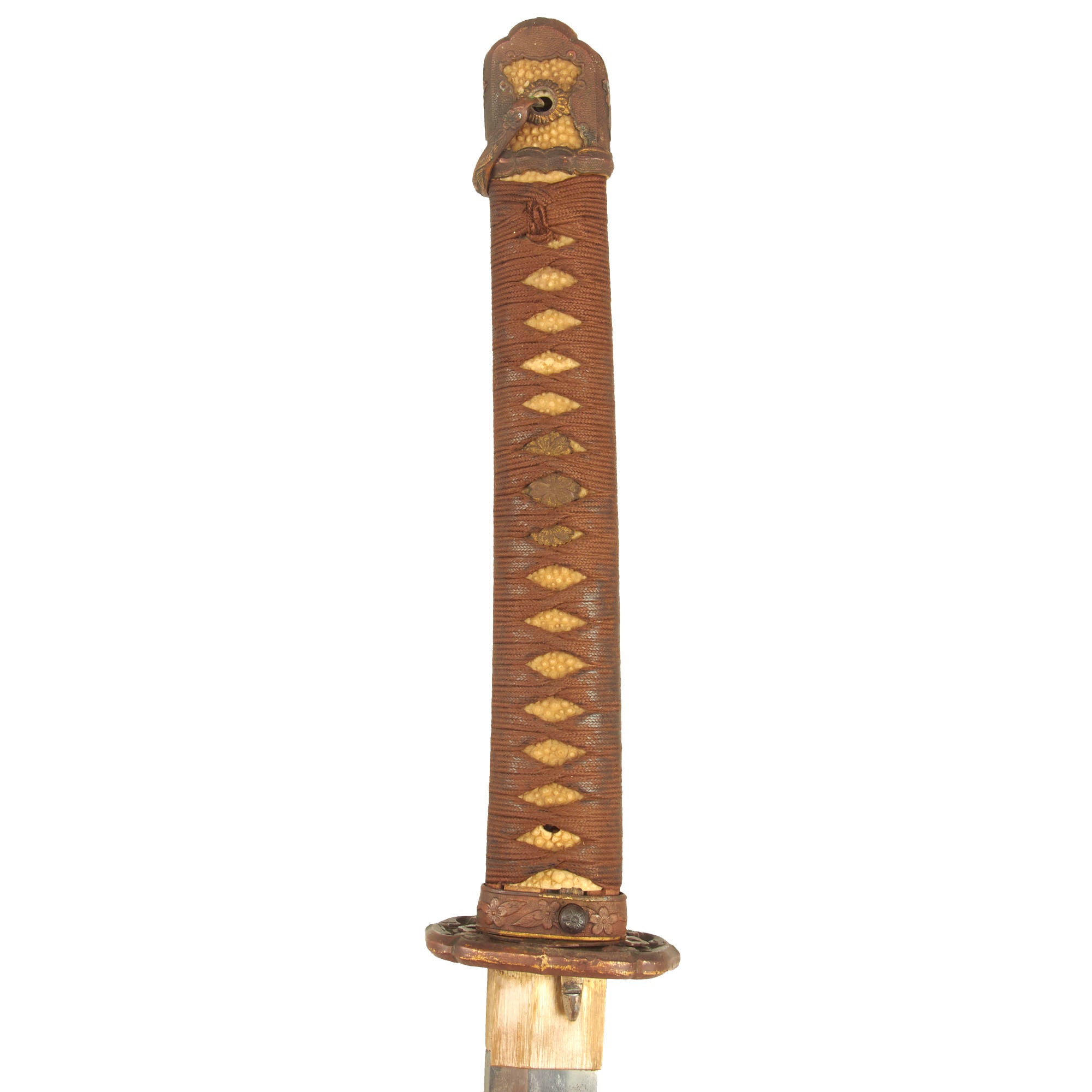 Original Item: One of a Kind. Recently purchased at large military show, this is a very nice USGI Bring-Back wartime production Japanese Army Officer Katana in the Type 98 Shin-Gunto (九八式軍刀 kyūhachi-shiki guntō) setting. These type of fittings (koshirae) are slightly simplified compared to the earlier Type 94. The blade tang is signed by the maker, and appears to be handmade in the traditional fashion. A Shin-Guntō (新軍刀, new military sword) is a weapon and symbol of rank used by the Imperial Japanese Army between the years of 1935 and 1945.