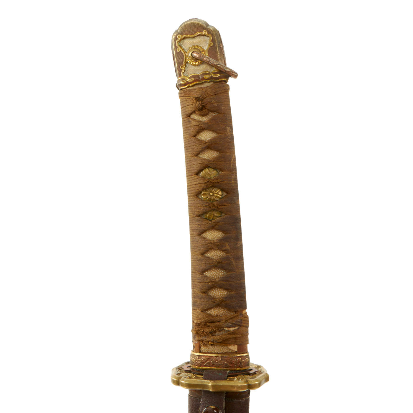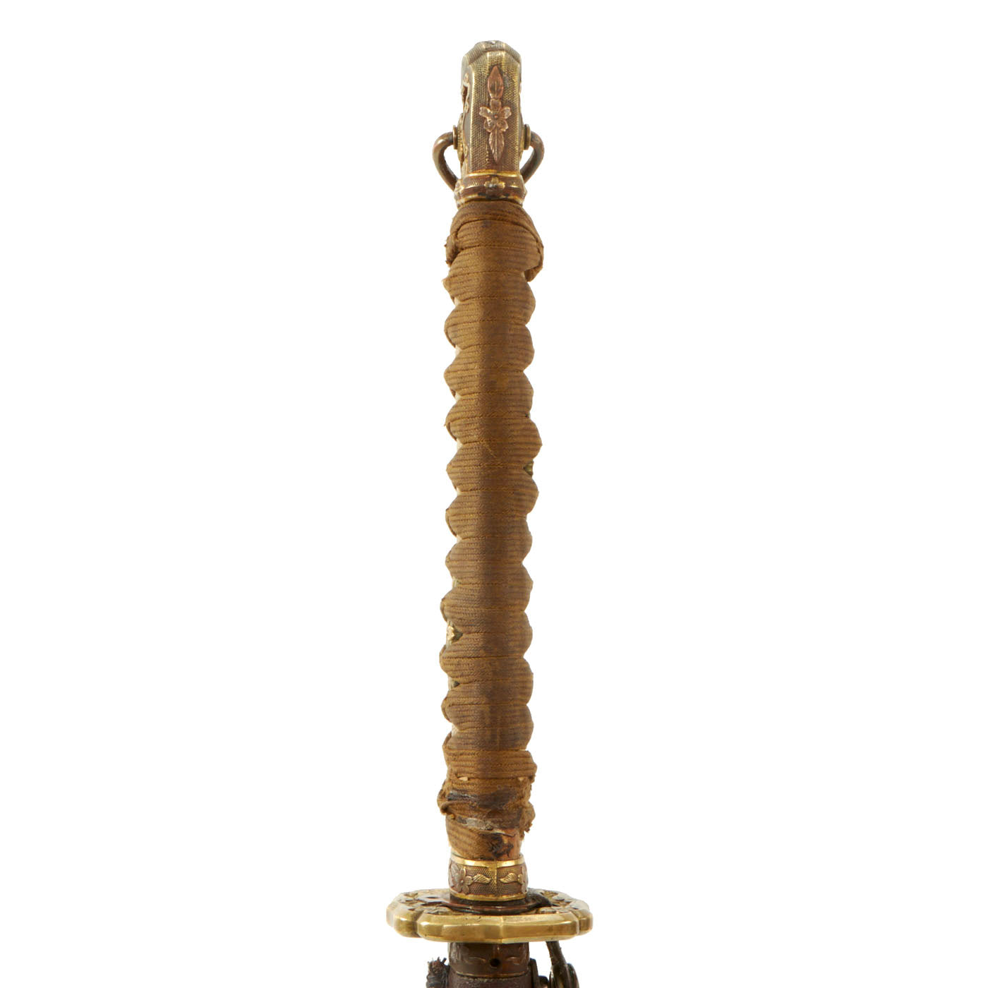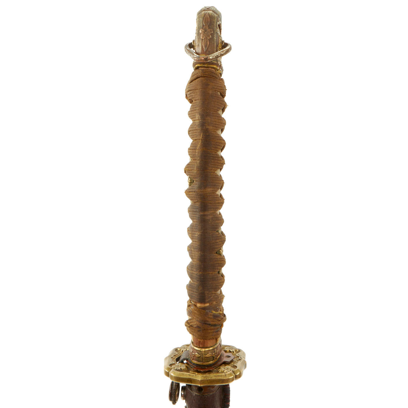 Original Item: One of a Kind. Recently purchased at an estate sale, this is a very nice USGI Bring-Back wartime production Japanese officer Katana in the Type 98 Shin-Gunto (九八式軍刀 kyūhachi-shiki guntō) setting. These type of fittings (koshirae) are slightly simplified compared to the earlier Type 94. The blade tang is signed by the maker, and appears to be handmade in the traditional fashion. A Shin-Guntō (新軍刀, new military sword) is a weapon and symbol of rank used by the Imperial Japanese Army between the years of 1935 and 1945.