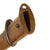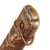 The tsuba (crossguard) is the early-mid war brass MOKKO GATA (quince) shape, with holes in both sides to reduce weight. Later swords would be fitted with simple iron round tsuba. The blade collar (habaki) is the standard brass. The scabbard has the original olive brown finish retained at about 90%, with areas worn away from service. We do not see any major dents, and it fits the sword perfectly.