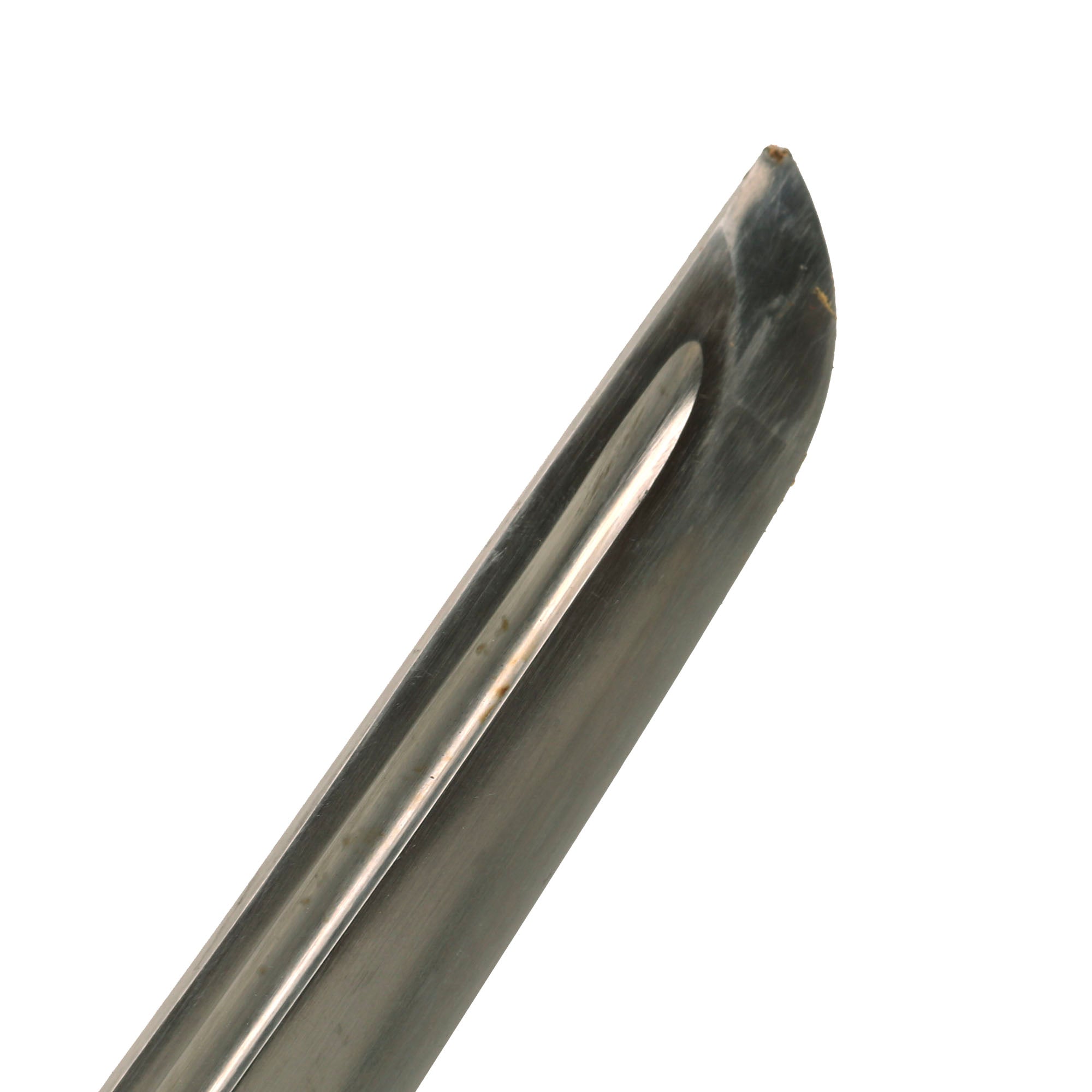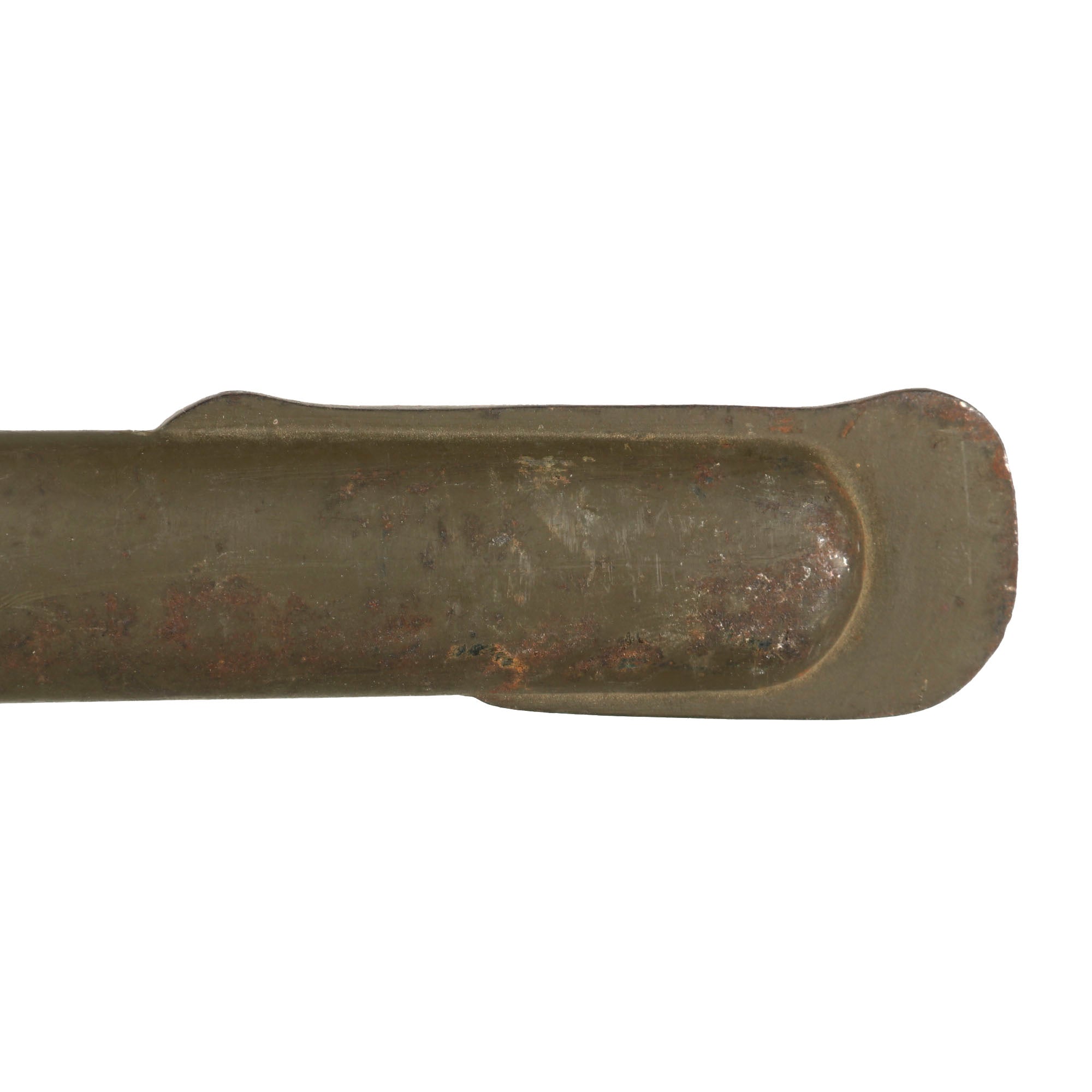 The scabbard still has the original olive brown original WWII paint retained at about 90%, with some oxidation on the "inner side". There are no major chips or other damage, and no major dents or bends to speak of.