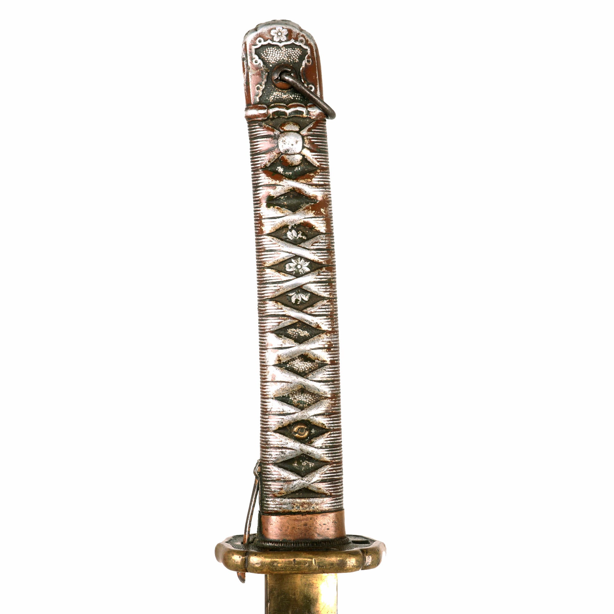 The design copies the typical WWII Imperial Japanese Army style fittings, known as the "New Military Sword" ( 新軍刀 - shin guntou) style, with a single hanger ring and bolster on the scabbard. It is said that during battle soldiers would not use the ring but rather would stick the sword through the belt the same way as the Samurai in ancient times. NCO Katanas were issued to soldiers who did not want to take their family sword to battle or who came from poor families that did not have swords to pass down through the generations.