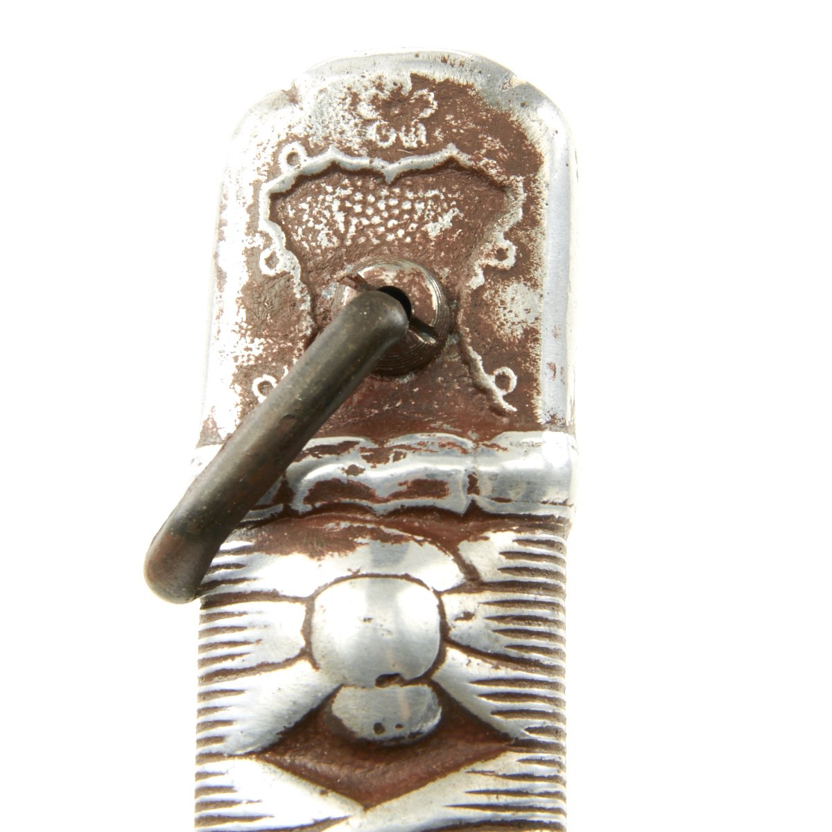 In response to this, replicas have now become available on the market, and while not made to the same level of quality as the original Japanese examples, they are still quite well made. The sword and scabbard are well marked, with the correct arsenal markings and matching serial numbers. Blade lock is functional, and the grip is the correct aluminum. This is definitely a replica that was made to deceive, are still interesting, and make great display pieces!