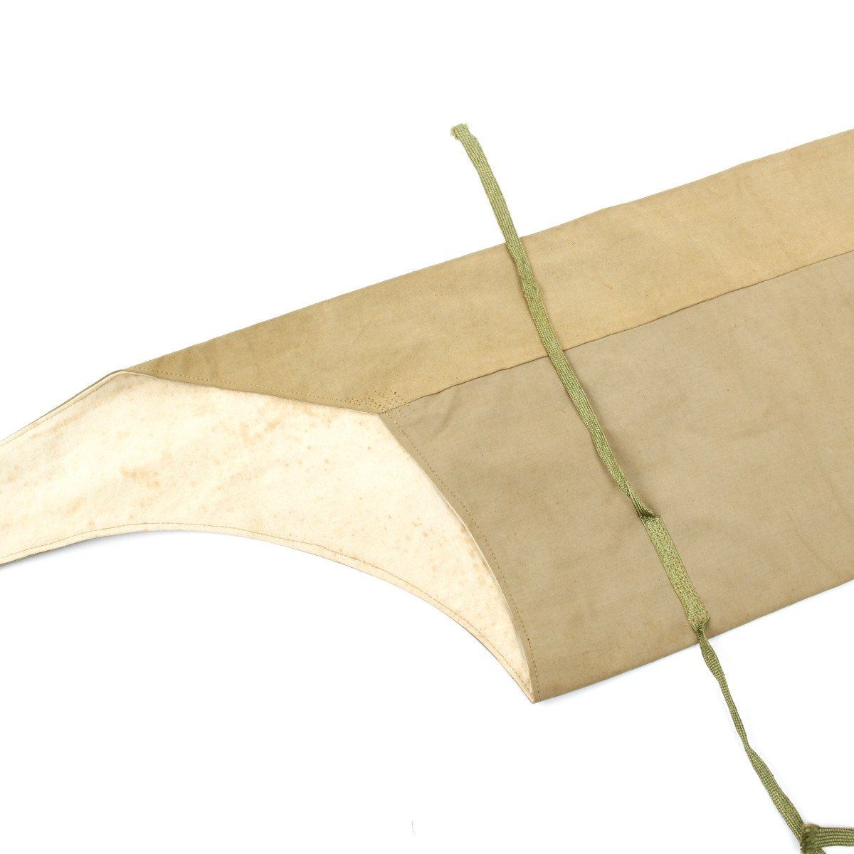 "Horseshoe roll" -- Seoi-bukuro-- of spare clothes and basic necessities: a less encumbering way of carrying equip¬ment than the issue knapsack, and one that has been adopted by soldiers in many armies over the centuries. It could be made with the tent section, or a purpose-made hold all. Offered in almost unissued condition with extensive markings on paper label.