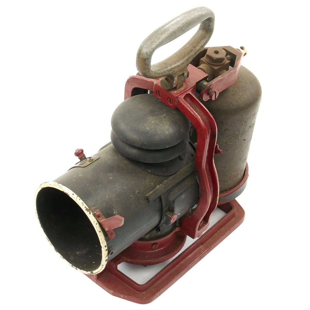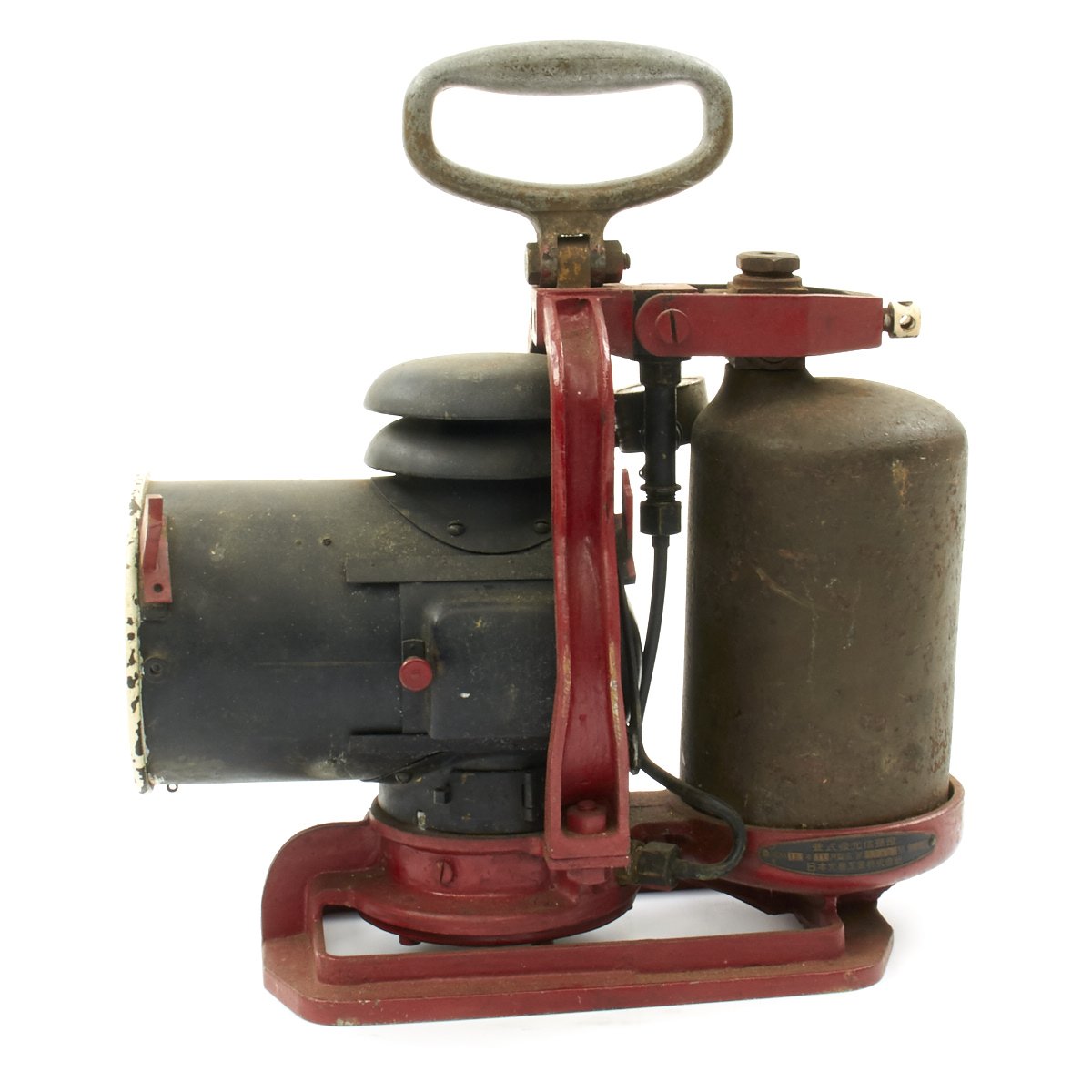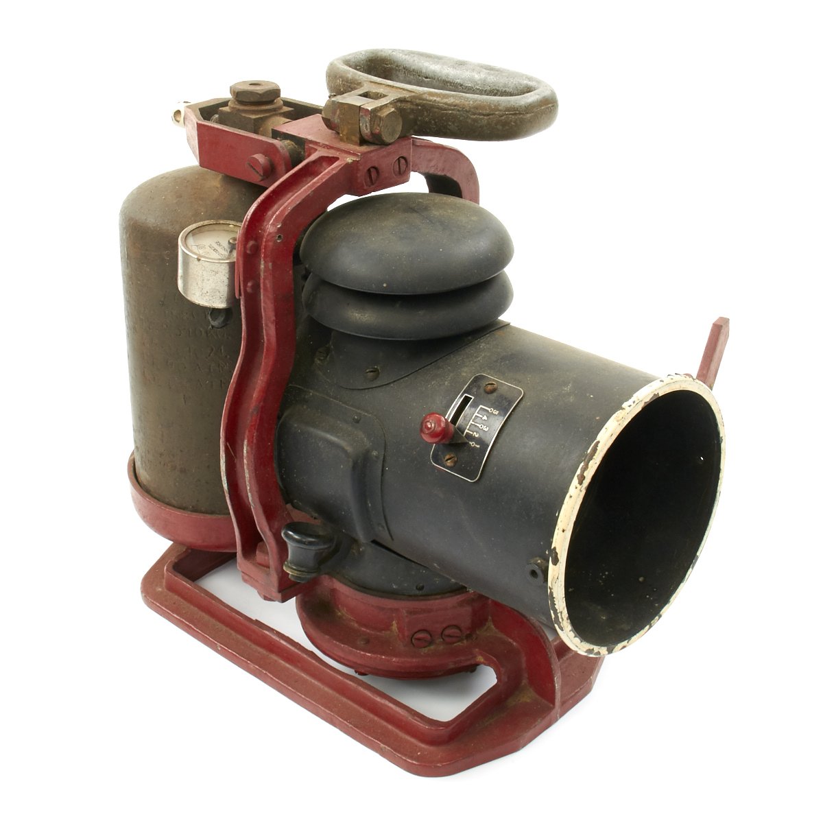 Original Item: Only One Available. We’ve never seen this type of lantern before, and have only found one other example that has been sold in the past. From what we can see, these are exceedingly rare. This is a Kerosene-powered Signal lamp, used by the Imperial Japanese Navy during WWII to send Morse Code signals. It comes complete in the original transit case with 4 of the original 6 clip on filters for the front of the lamp. There are two red, one green, and one translucent white filter.