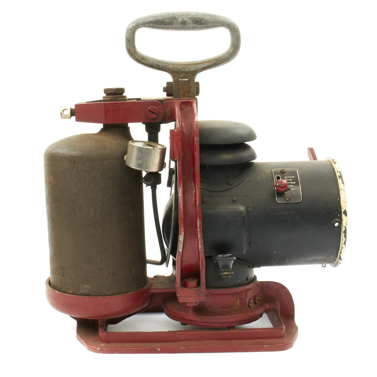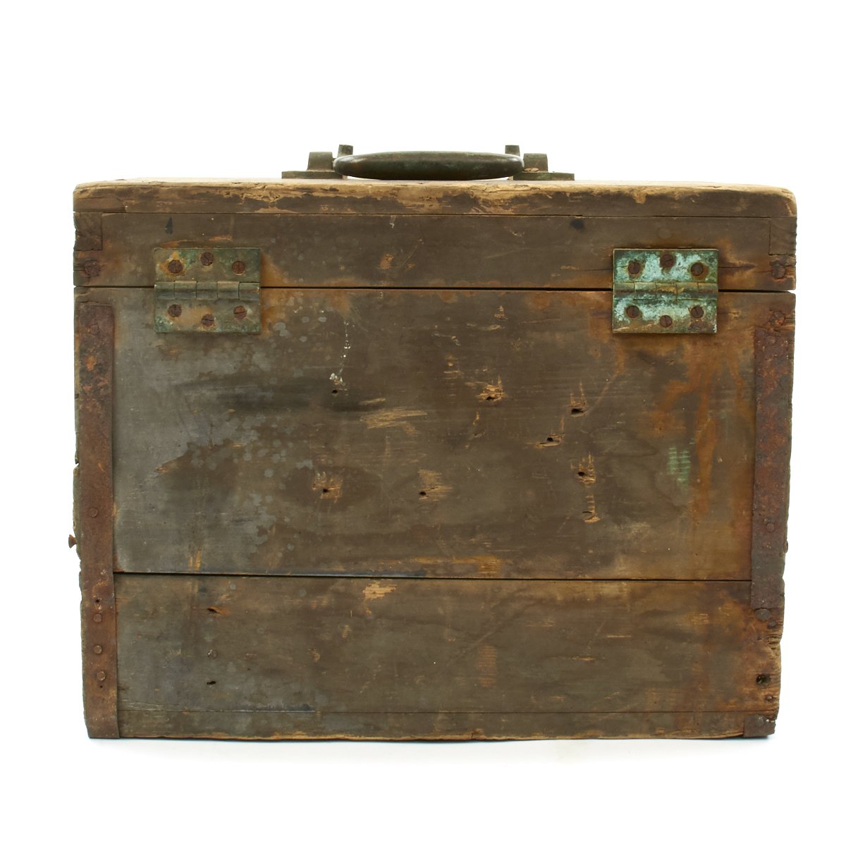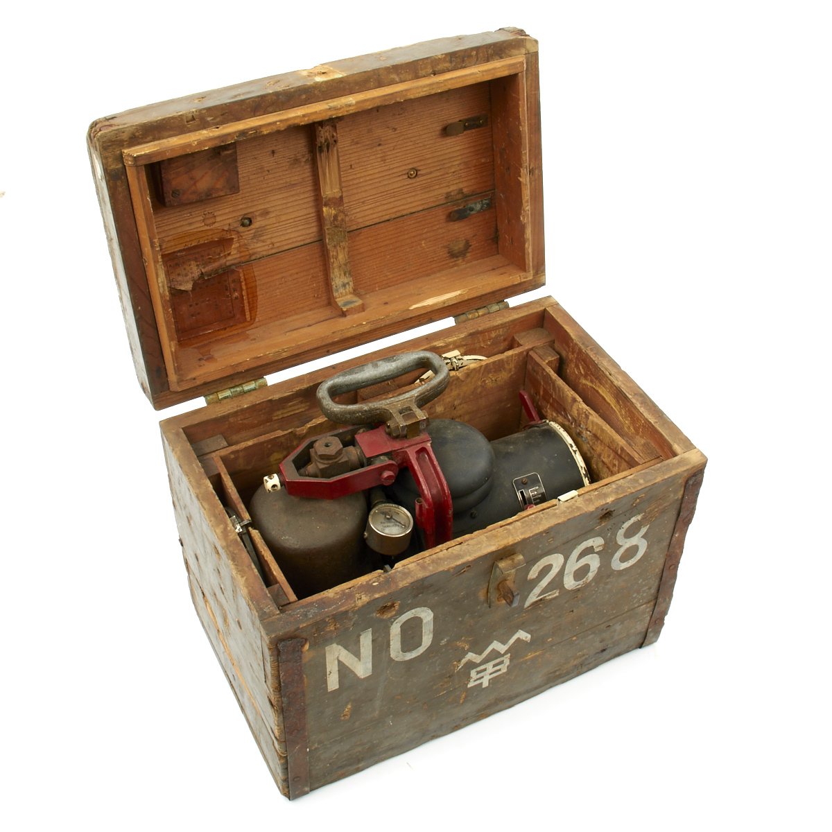 Original Item: Only One Available. We’ve never seen this type of lantern before, and have only found one other example that has been sold in the past. From what we can see, these are exceedingly rare. This is a Kerosene-powered Signal lamp, used by the Imperial Japanese Navy during WWII to send Morse Code signals. It comes complete in the original transit case with 4 of the original 6 clip on filters for the front of the lamp. There are two red, one green, and one translucent white filter.