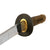 The Wood scabbard has a standard black lacquer finish, and has all brass fittings, with the gilding faded due to wear and oxidation. Unfortunately, the lower SEMEGANE scabbard ring and the SAYAJIRI end fitting are missing, and the bottom of the scabbard is split open. There is also splitting in the enamel on both sides, as well as some wear and other damage.