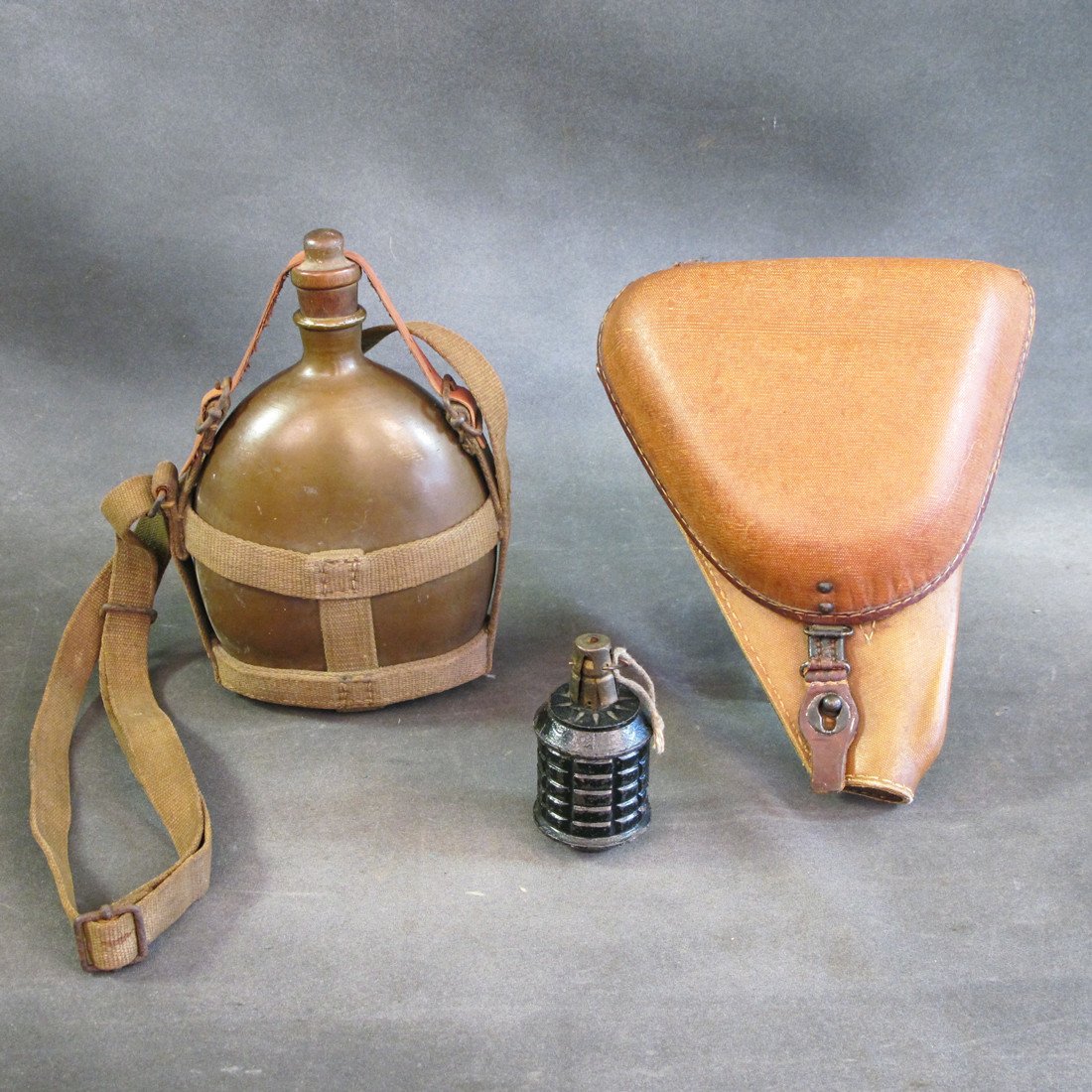Original Item: This is a small collection acquired from a USMC veteran’s family. They report that their ancestor took the holster, water bottle, and type 97 grenade from a fallen Japanese officer at the Battle of Iwo Jima.