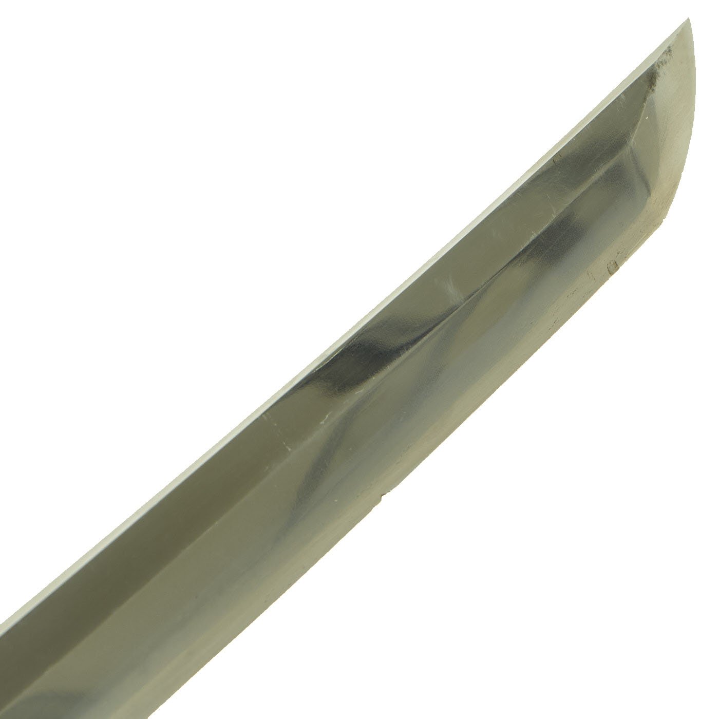 - Blade has a proper geometric Yokote at the tip (kissaki) with a Boshi (tip temper line)
