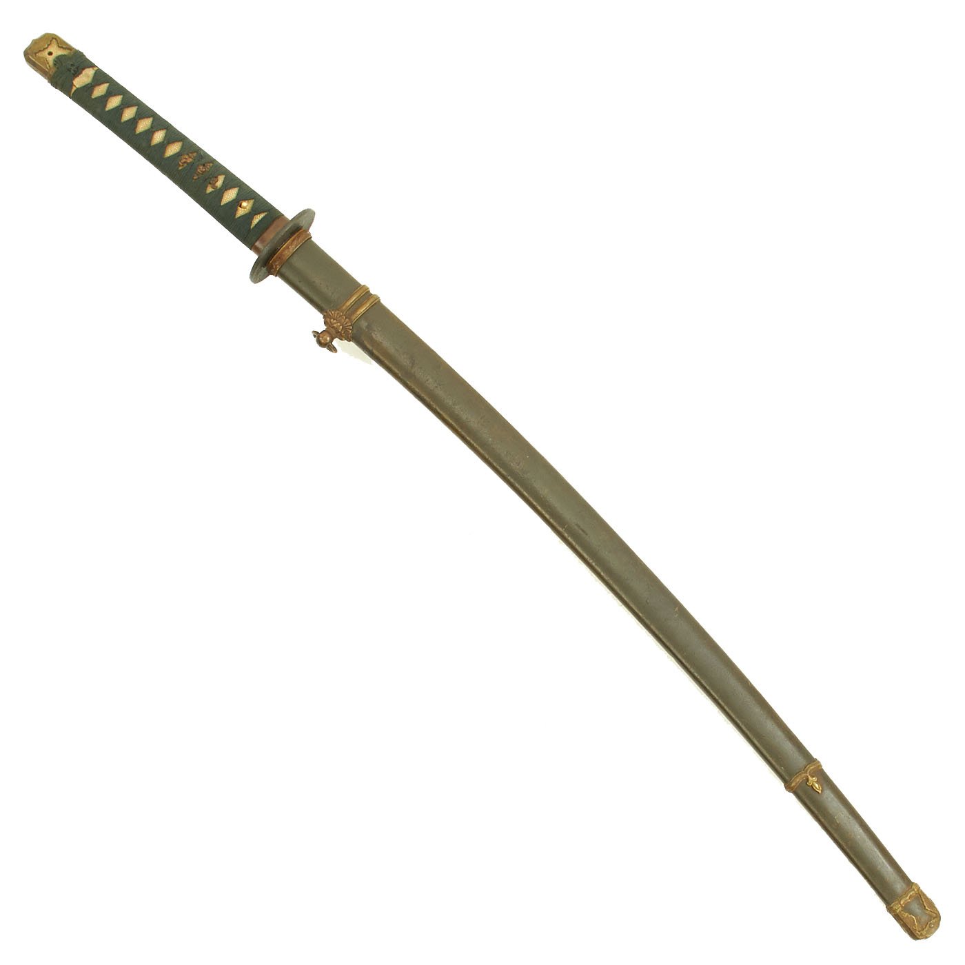 The Scabbard (saya) is steel and in very nice condition, and the paint is very well retained, with the expected wear on the edges. It has only a few small dents, and has the correct single hanger loop of the Type 98 style. The top fitting is inleted for the scabbard lock on the hilt, though there is no scabbard lock on the hilt.