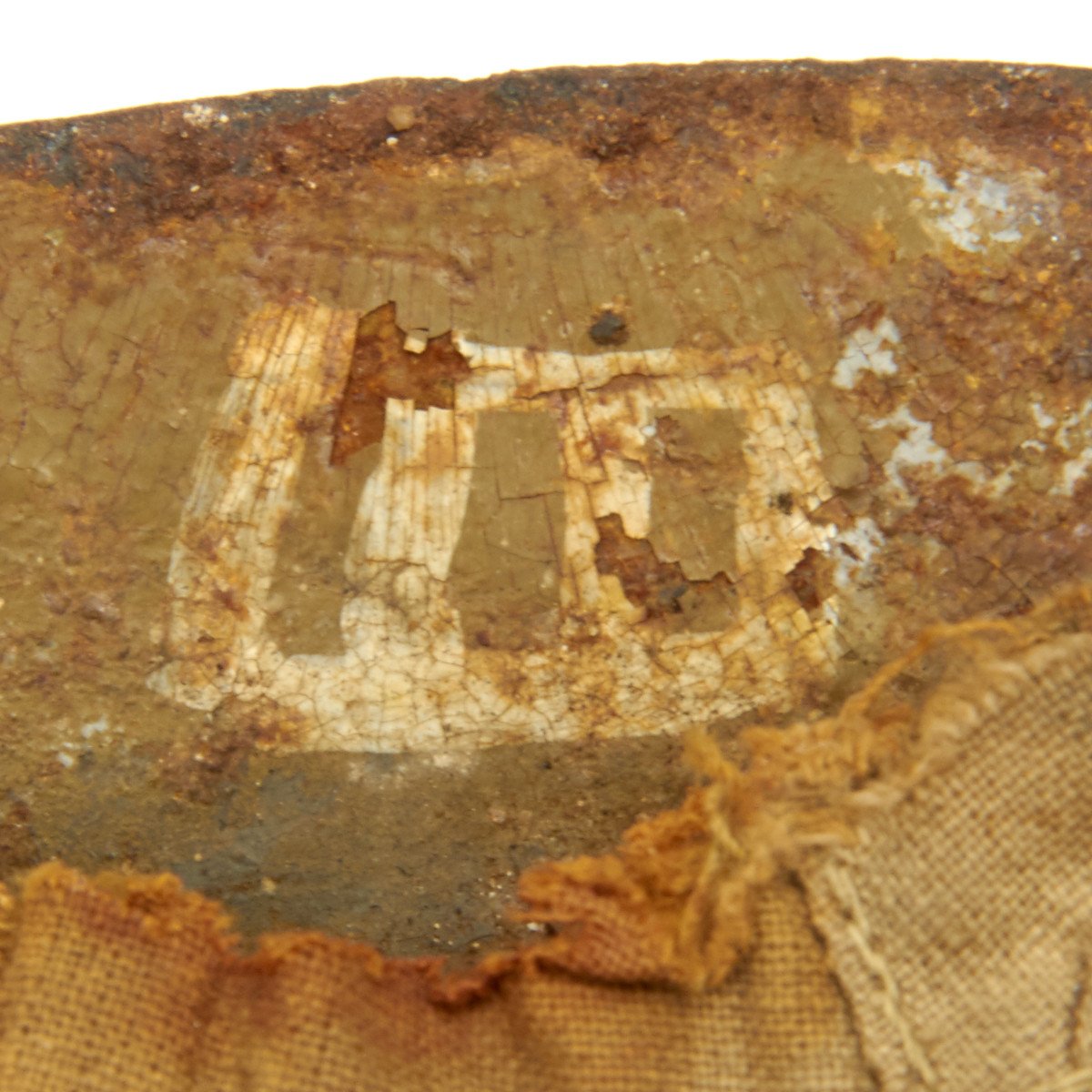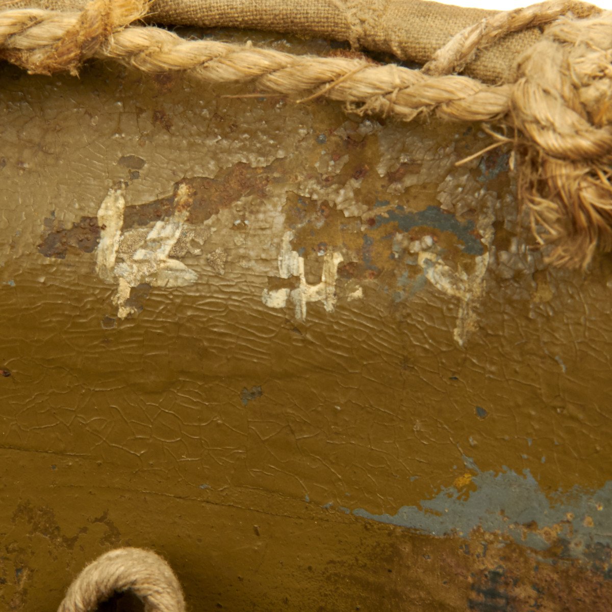 This is, without question, one of the most impressive, complete, and untouched, World War II Japanese combat helmets to have appeared on the market in the last few years. The fact that it is a Japanese Special Naval Landing Forces combat helmet makes it all the more exceptional, and this helmet would be a highlight of any collection.