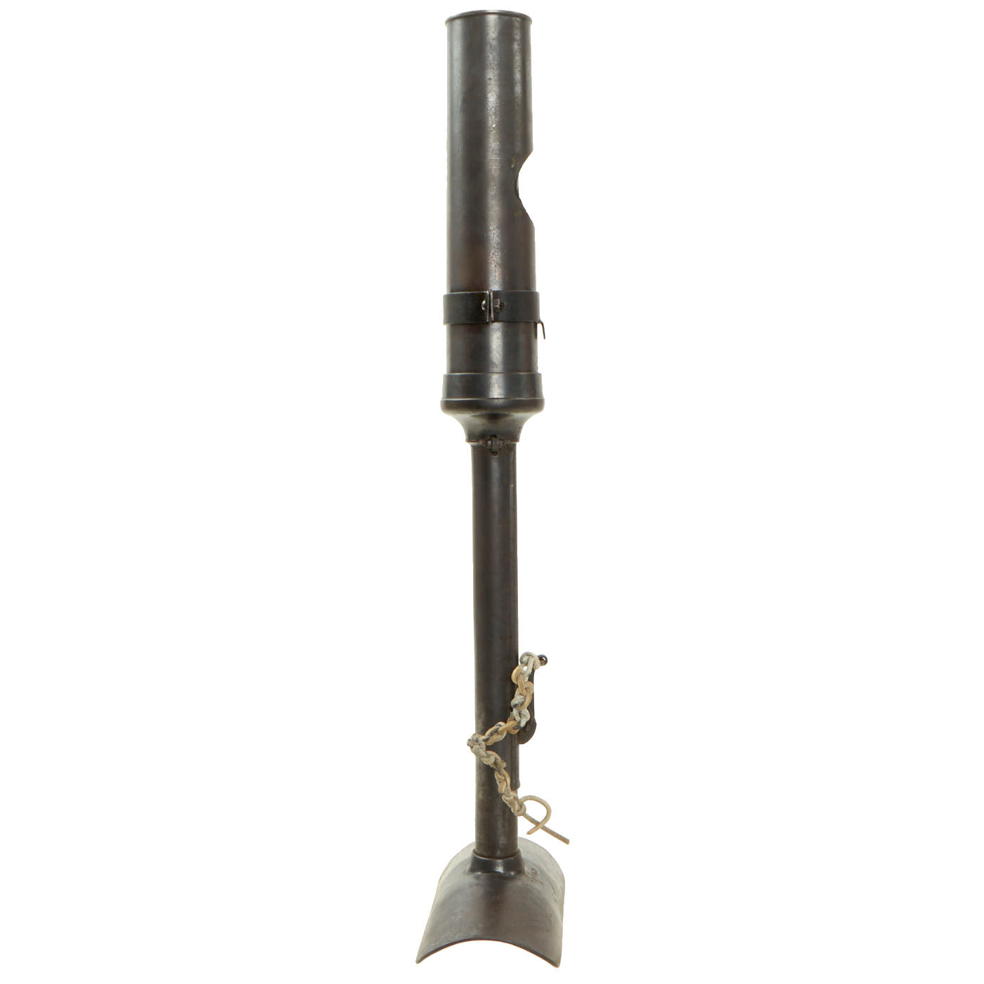 This discharger is in good condition, though it does show wear and oxidation. The canvas spring cover and spring is unfortunately completely missing, most likely having deteriorated due to exposure to the elements.