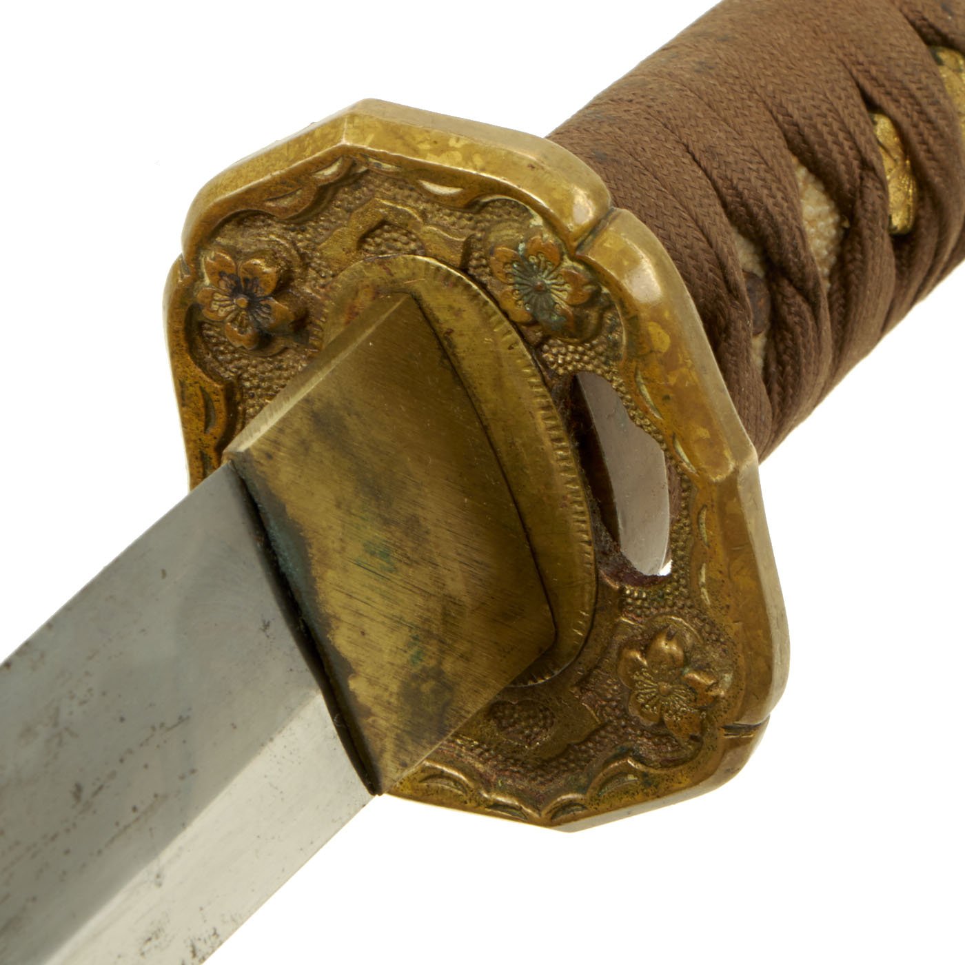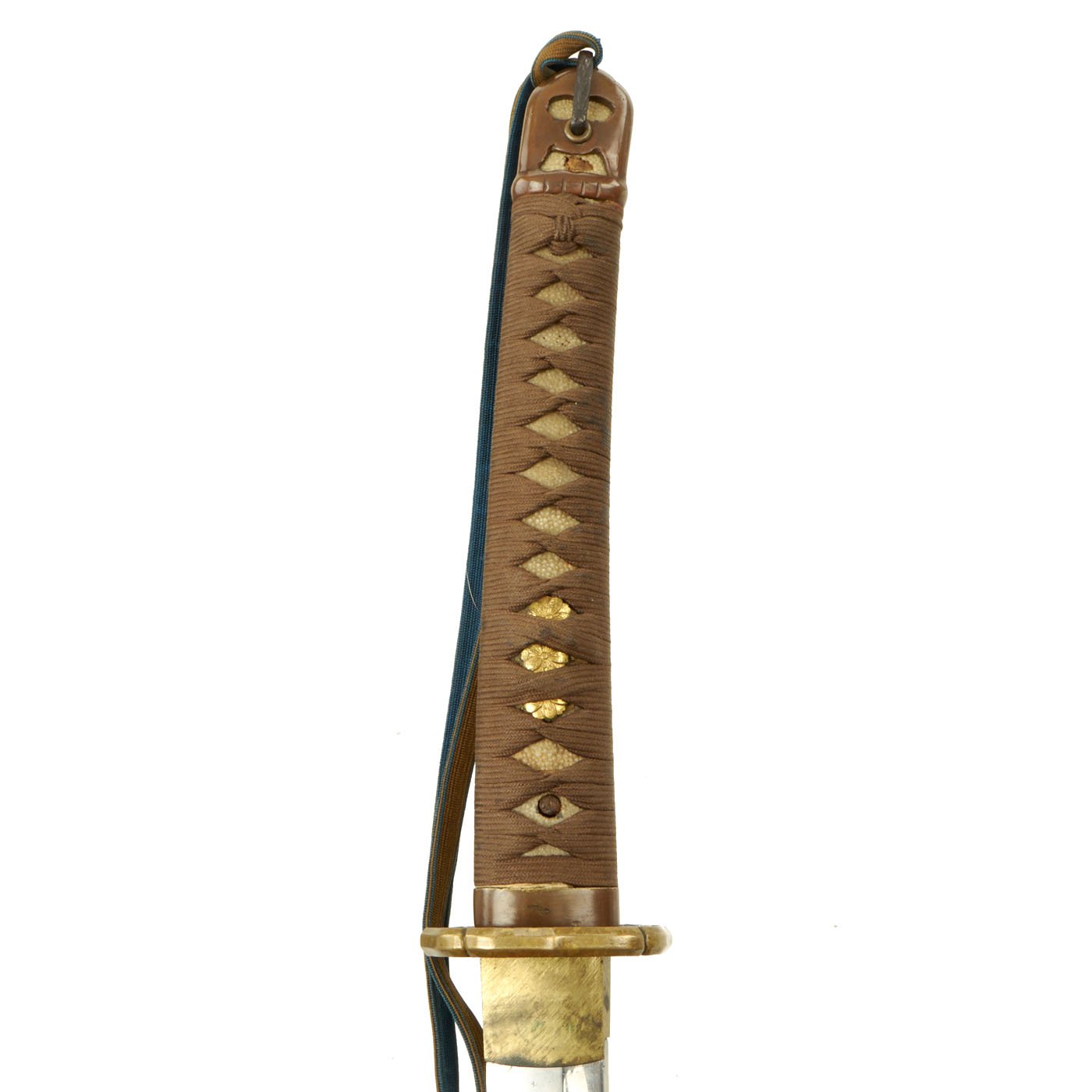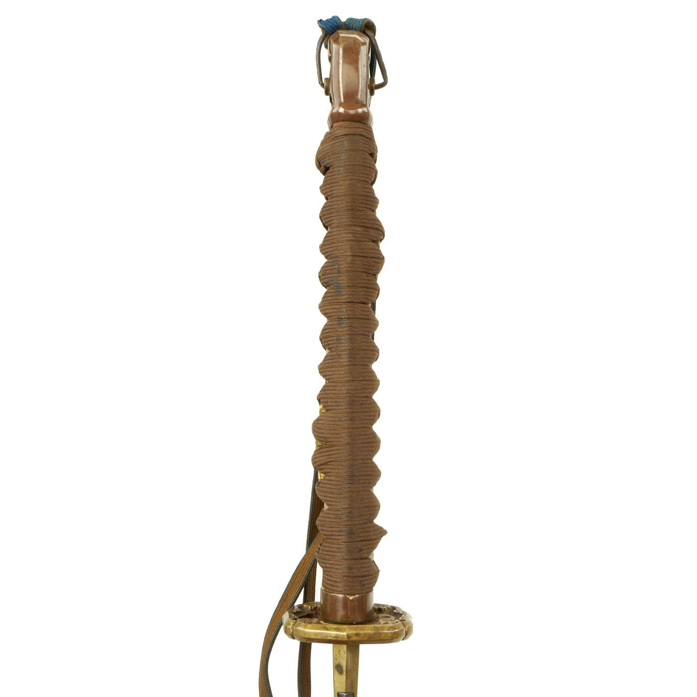 Original Item: One of a Kind. Recently purchased at an estate sale, this is a great USGI Bring-Back wartime production Japanese officer Katana in the Type 98 Shin-Gunto (九八式軍刀 kyūhachi-shiki guntō) setting. These type of fittings (koshirae) are slightly simplified compared to the earlier Type 94. The blade tang is signed by the maker, and appears to be handmade in the traditional fashion. A Shin-Guntō (新軍刀, new military sword) is a weapon and symbol of rank used by the Imperial Japanese Army between the years of 1935 and 1945. It also has a very nice rank tassel attached to the pommel.