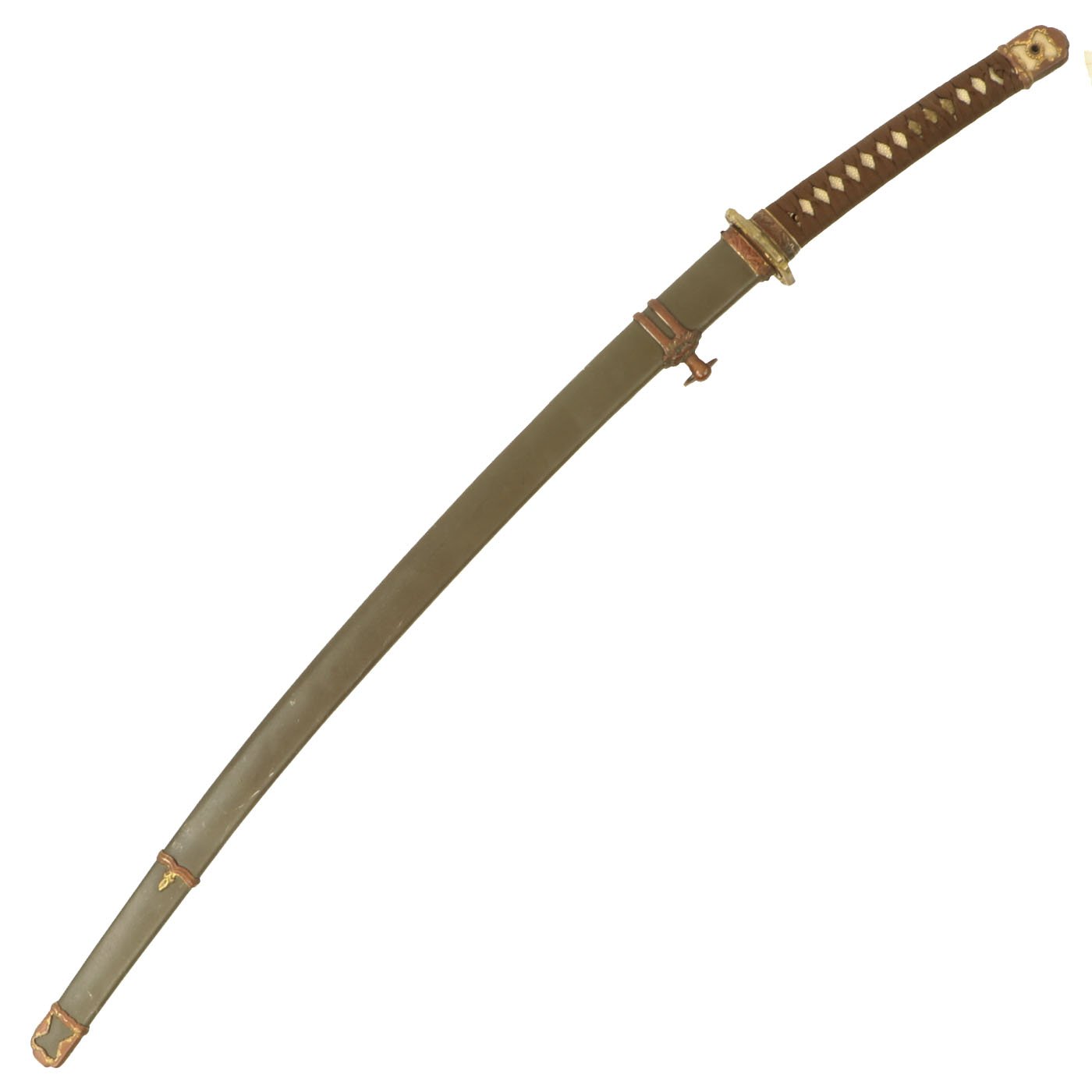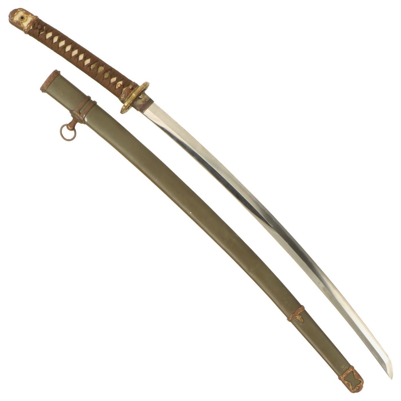 Original Item: One of a Kind. Recently purchased at a large military auction, this is a great USGI Bring-Back wartime production high grade Japanese officer Katana in the Type 98 Shin-Gunto (九八式軍刀 kyūhachi-shiki guntō) setting. These type of fittings (koshirae) are slightly simplified compared to the earlier Type 94. The blade tang is signed by the maker, and is handmade in the traditional fashion. A Shin-Guntō (新軍刀, new military sword) is a weapon and symbol of rank used by the Imperial Japanese Army between the years of 1935 and 1945.