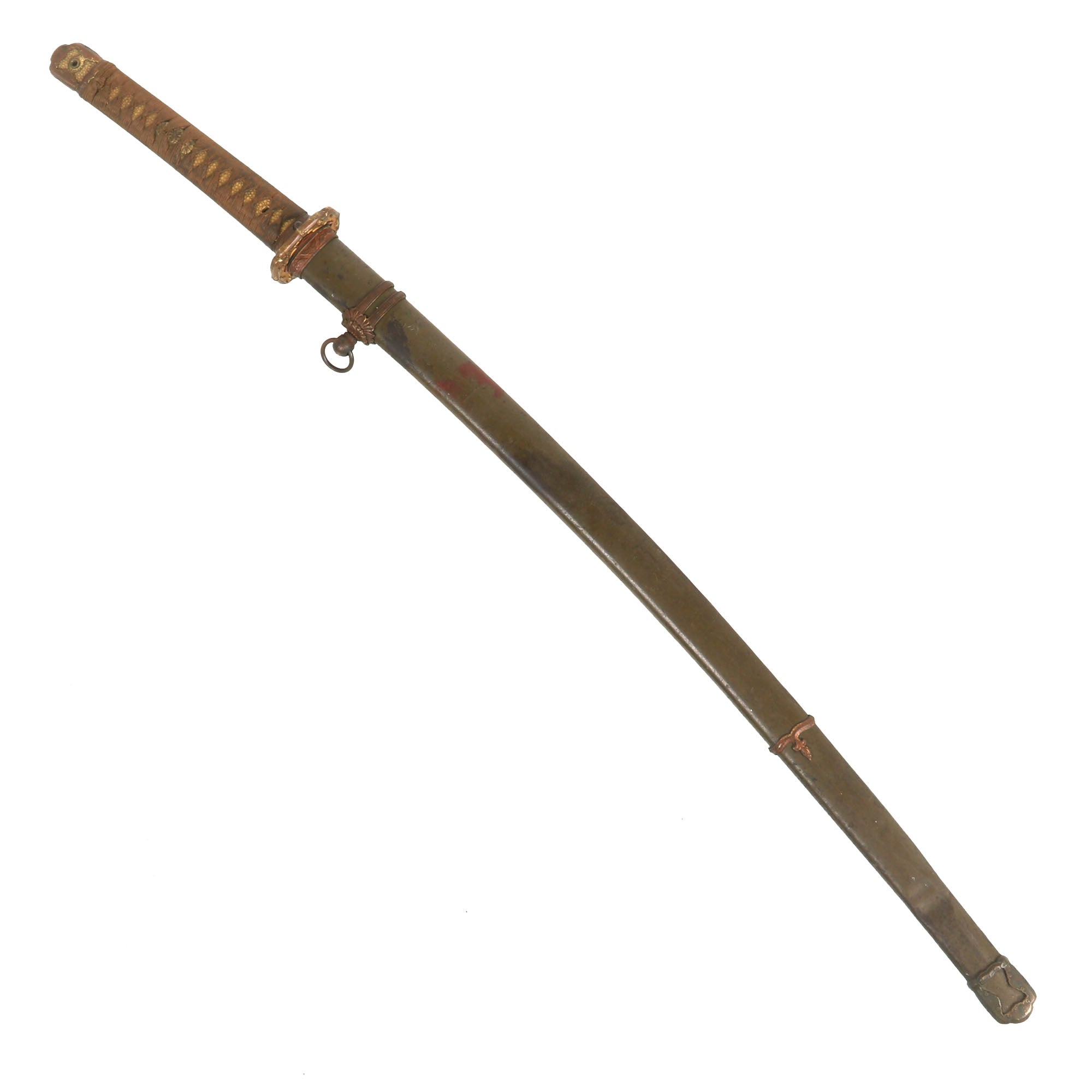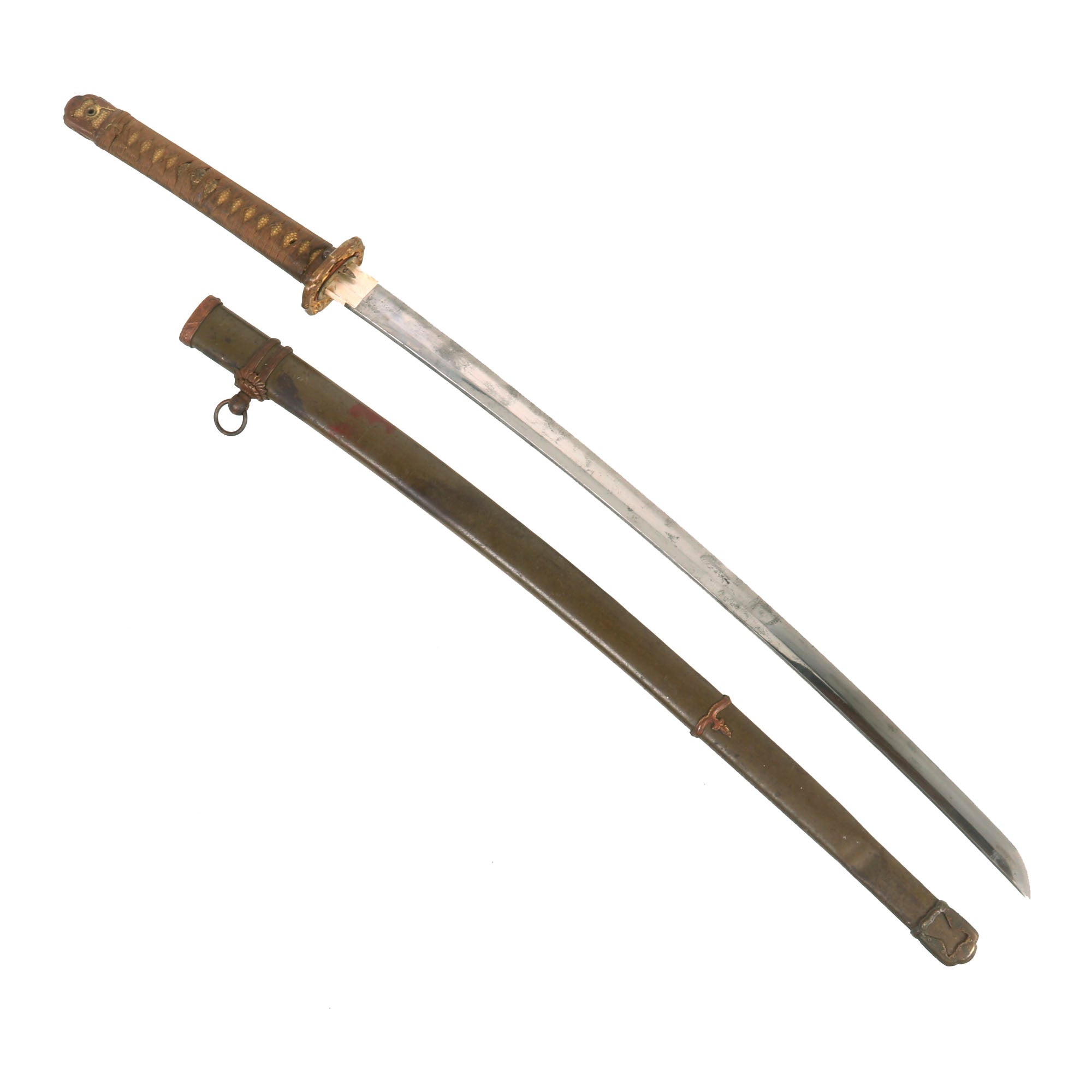 Original Item: One of a Kind. Recently purchased from a private collection, this is lovely condition USGI Bring-Back wartime production Japanese officer Katana in the Type 98 Shin-Gunto (九八式軍刀 kyūhachi-shiki guntō) setting. The Type 98 fittings (koshirae) are slightly simplified compared to the earlier Type 94. The blade tang is signed by the maker, and appears to be handmade in the traditional fashion. A Shin-Guntō (新軍刀, new military sword) is a weapon and symbol of rank used by the Imperial Japanese Army between the years of 1935 and 1945.