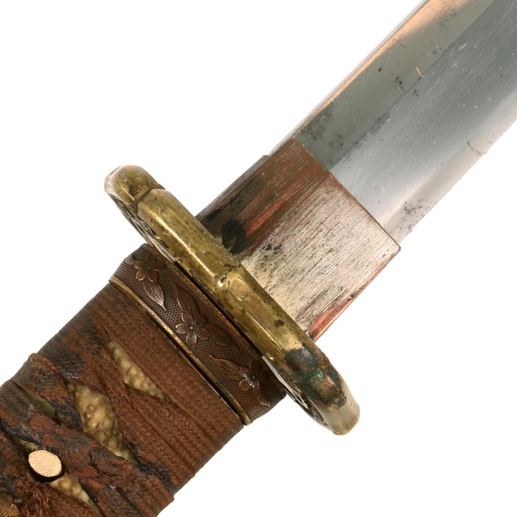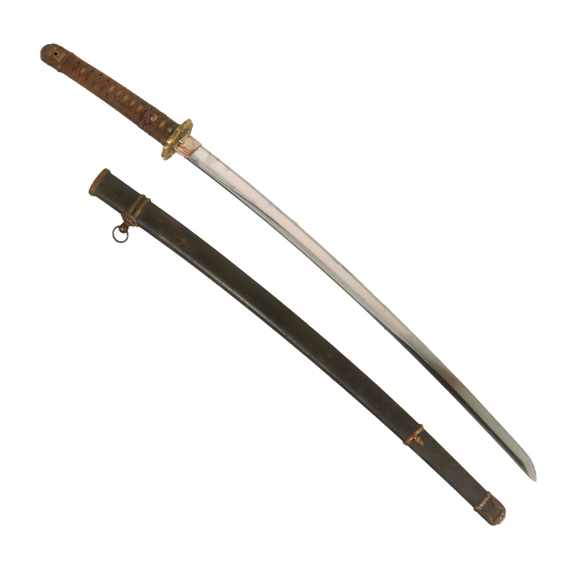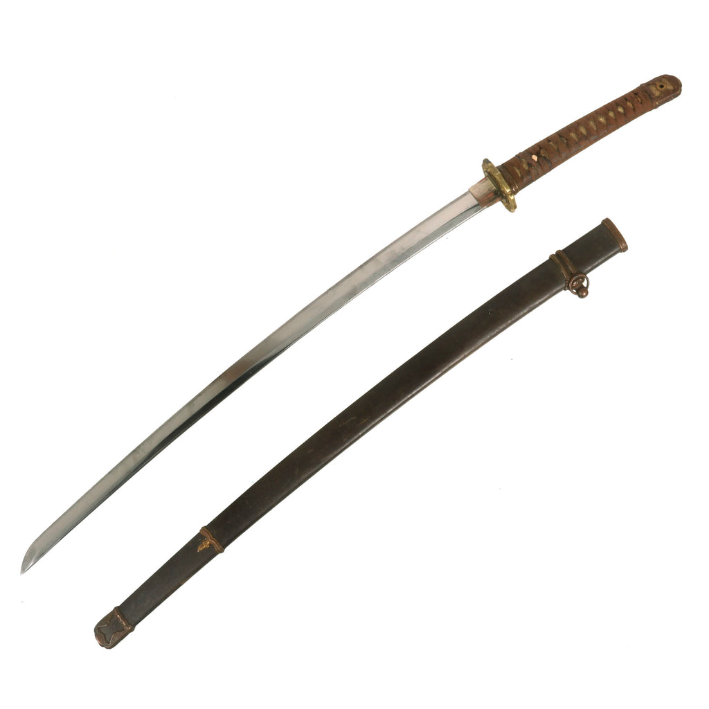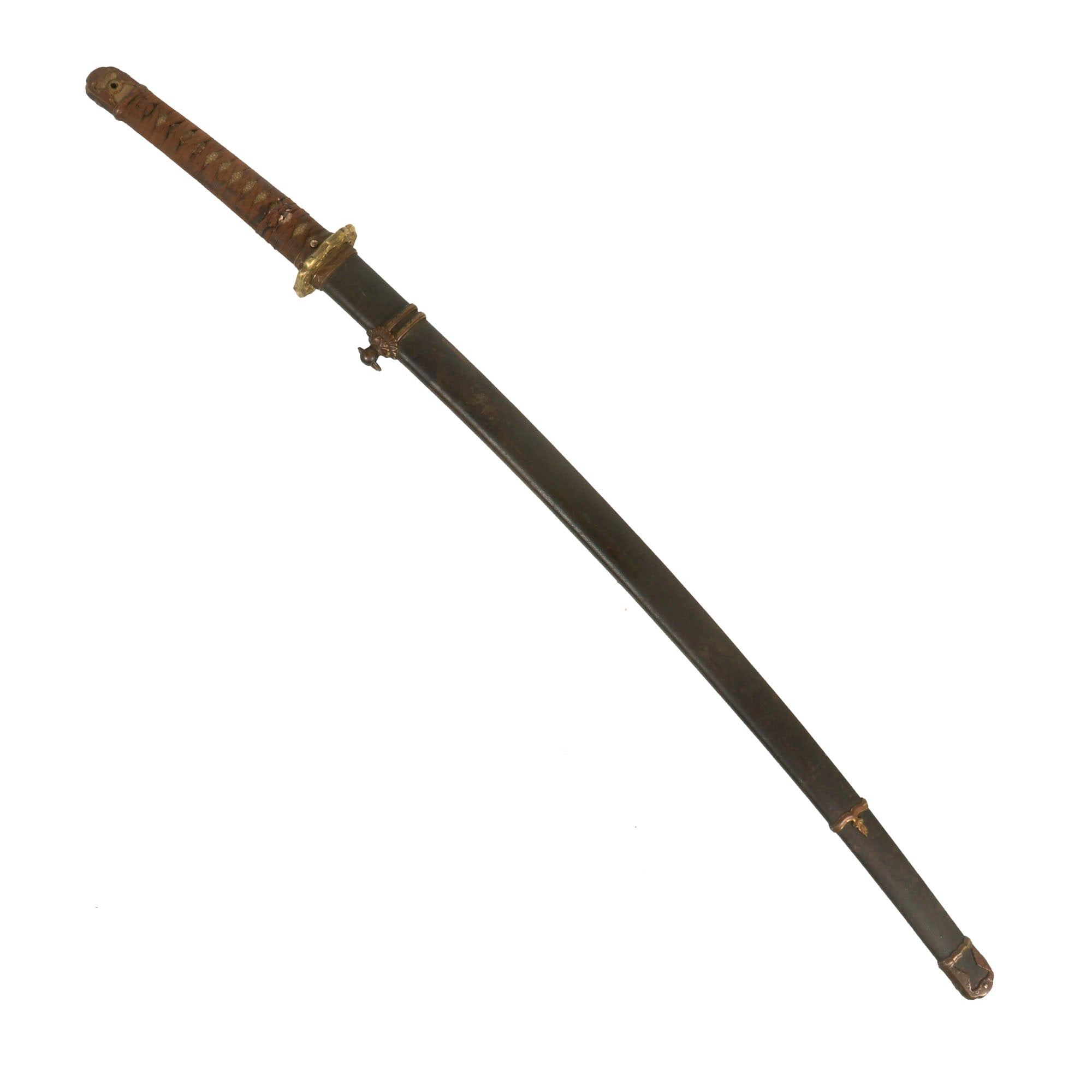 Original Item: One of a Kind. Recently purchased from a private collection, this is lovely condition USGI Bring-Back wartime production Japanese officer Katana in the Type 98 Shin-Gunto (九八式軍刀 kyūhachi-shiki guntō) setting. The Type 98 fittings (koshirae) are slightly simplified compared to the earlier Type 94. The blade tang is signed by the maker, and appears to be handmade in the traditional fashion. A Shin-Guntō (新軍刀, new military sword) is a weapon and symbol of rank used by the Imperial Japanese Army between the years of 1935 and 1945.