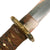 The blade mountings are the classic WWII era Type 98 Army Shin-Gunto style, brass with gilt accents, which have mostly worn away. It has the typical rounded "quince" (mokko gata) shaped tsuba (cross guard) with brass Imperial Army cherry blossom menuki (grip decoration), and a nice Kabuto-Gane (Pommel Cap). The cross guard and pommel cap have matching cherry blossom motifs, which are also found on the scabbard fittings, and the fuchi (grip collar). There are three metal seppa (spacers) around the tsuba to keep the fit tight. All are inlet for the scabbard lock, which is fully functional. The blade collar (habaki) looks to be the standard plated brass alloy.