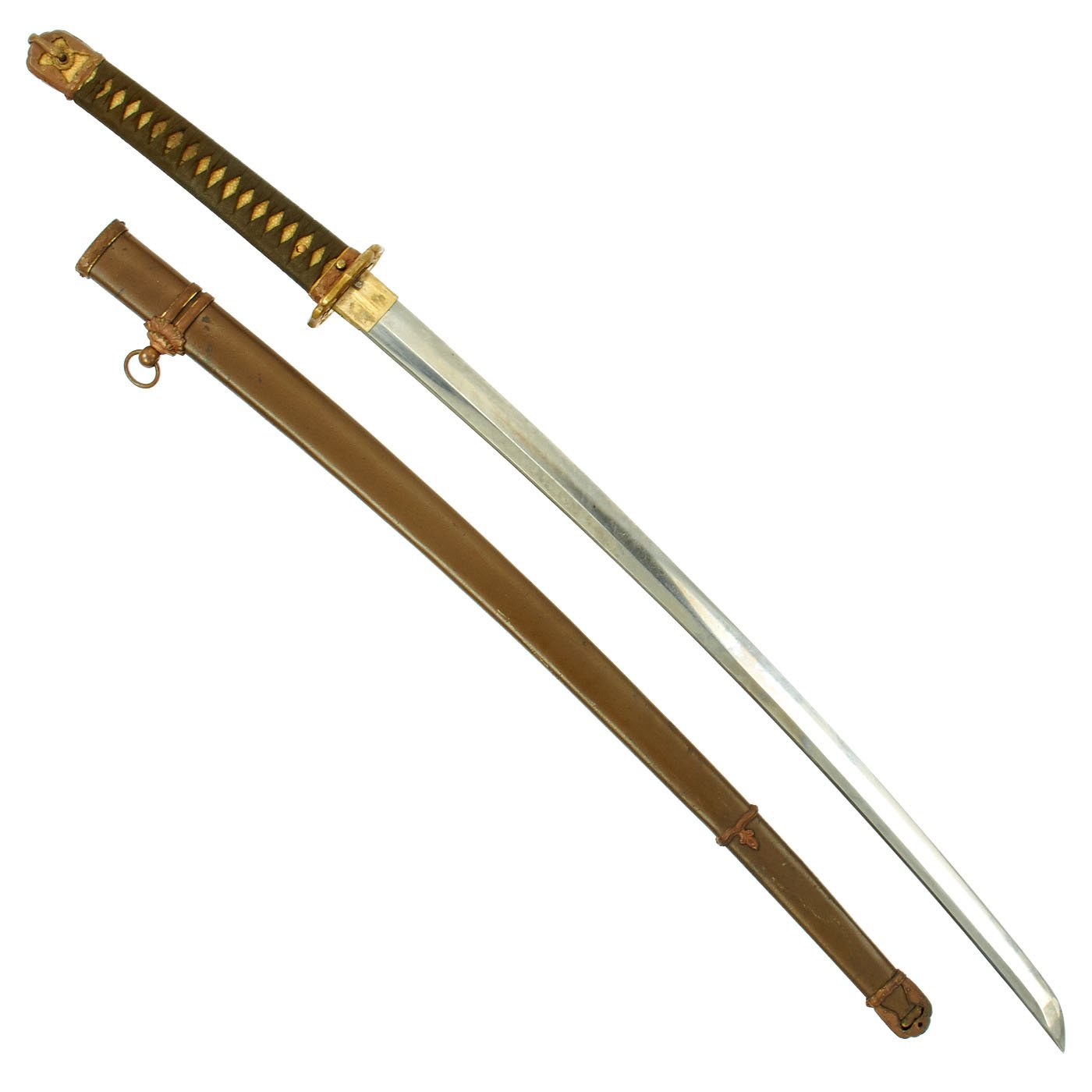Original Item: Only One Available. Purchased directly from a collector, this is a very nice wartime production high grade Japanese officer Katana in the Type 98 Shin-Gunto (九八式軍刀 kyūhachi-shiki guntō) setting. These type of fittings (koshirae) are slightly simplified compared to the earlier Type 94. The blade tang is both signed by the maker as well as dated 1944. A Shin-Guntō (新軍刀, new military sword) is a weapon and symbol of rank used by the Imperial Japanese Army between the years of 1935 and 1945. This is a very nice example, and shows only mild use, without much damage or wear.