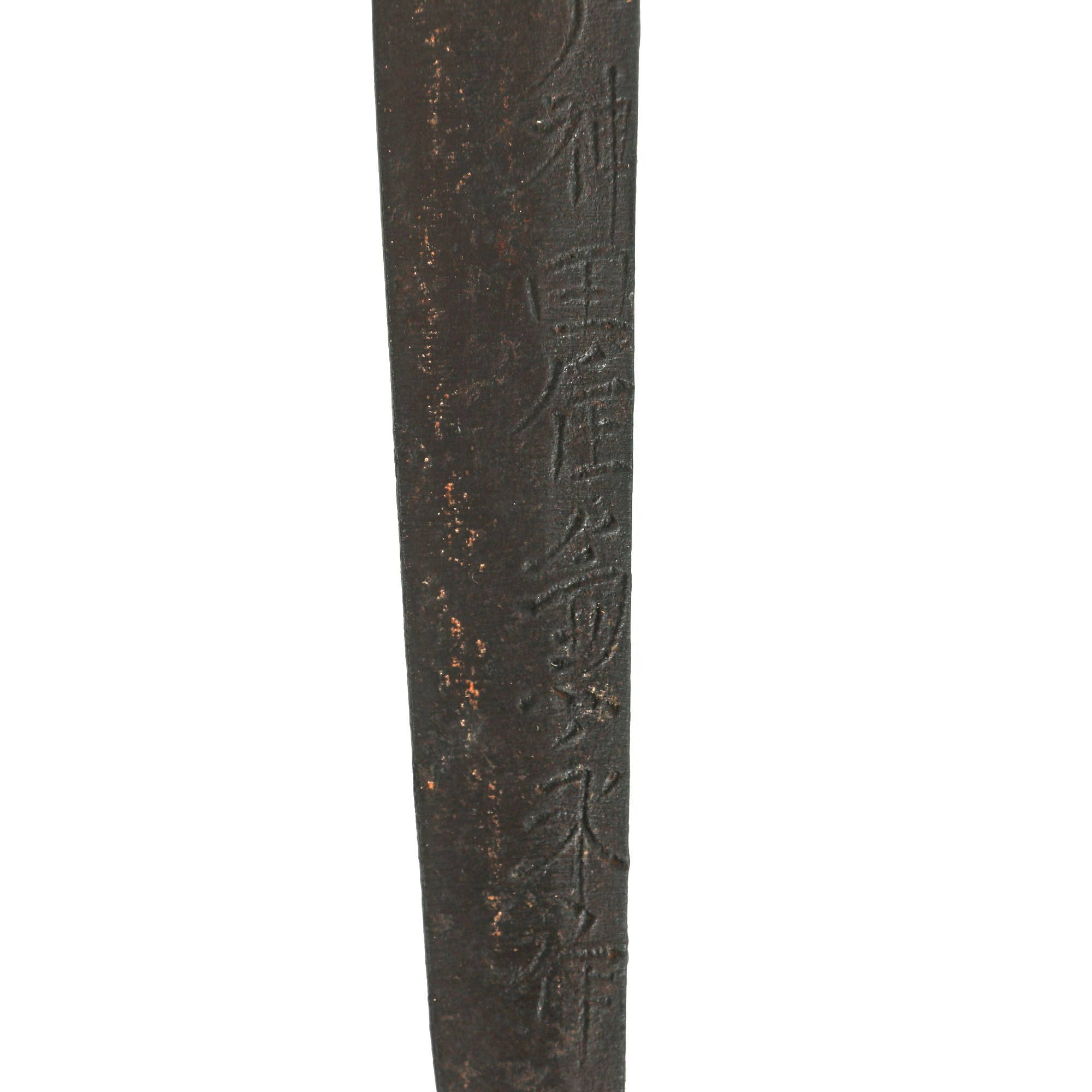 This blade on this example dates from the Edo period (江戸時代, Edo jidai) or Tokugawa period (徳川時代, Tokugawa jidai) of Japanese history. This is the period between 1603 and 1867, when Japan was under the rule of the Tokugawa shogunate and the country's 300 regional daimyo. It was common practice for swords to be passed down for generations, particularly ones that were of high quality. These would be re-polished and re-fit numerous times, as steel was precious and swords were expensive. This continued up into WWII, which is possibly how this blade found it's way into WWII "Shin-Gunto" fittings. There also was an official Japanese program during the war for families with no sons to donate their swords towards the war effort.