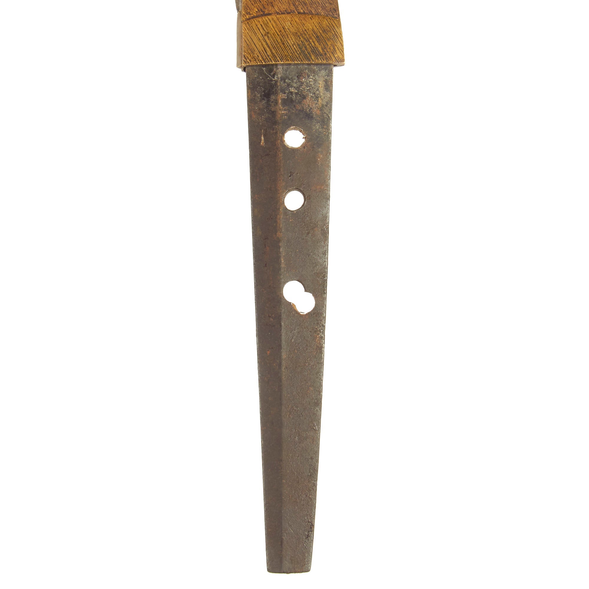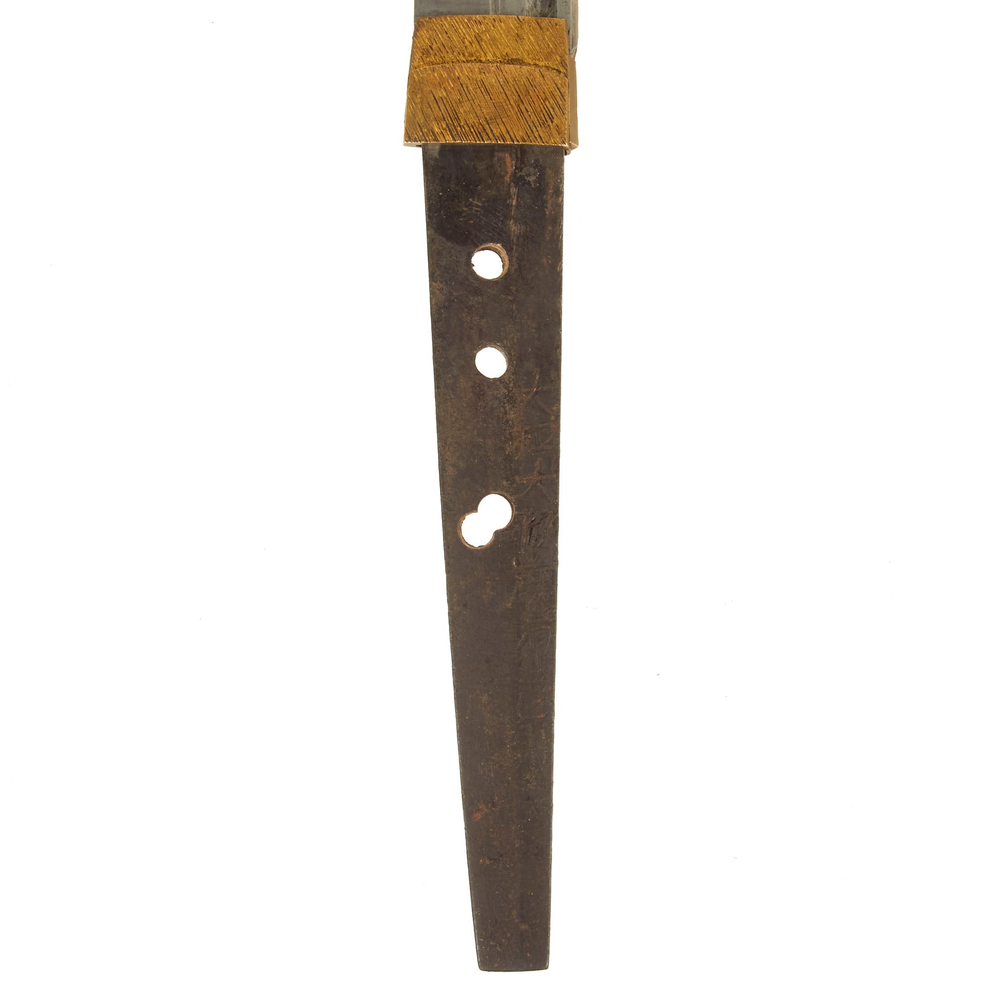 - Multiple holes in the tang, with the older holes being punched and not drilled.