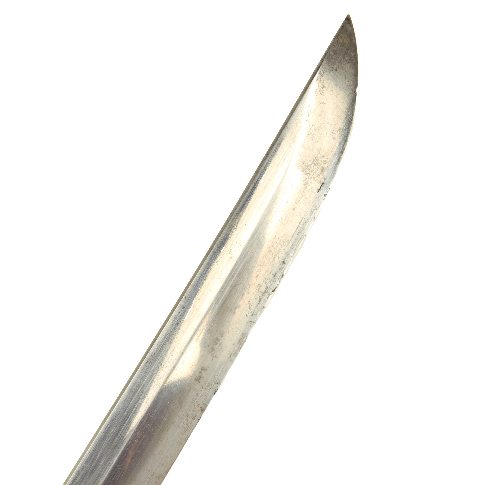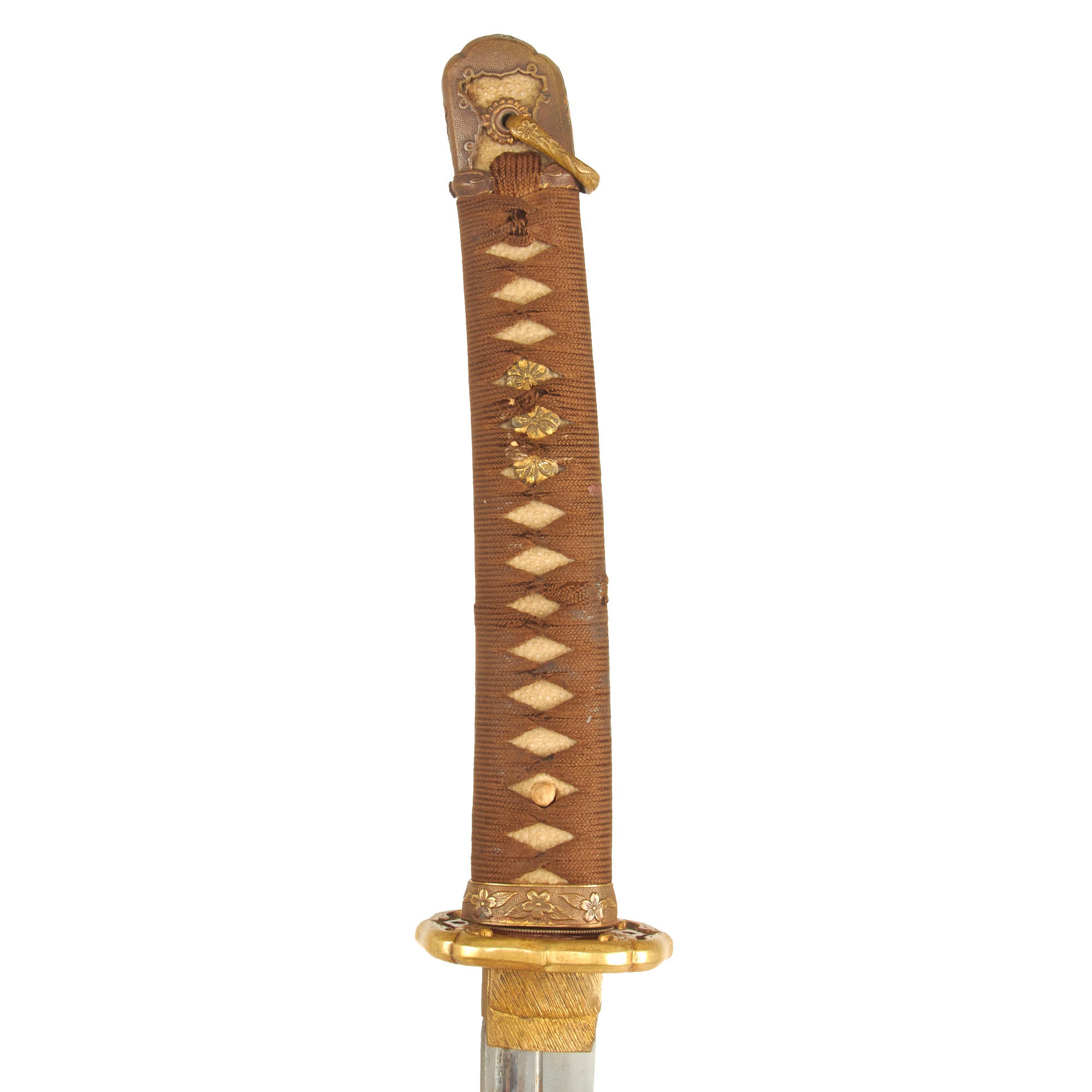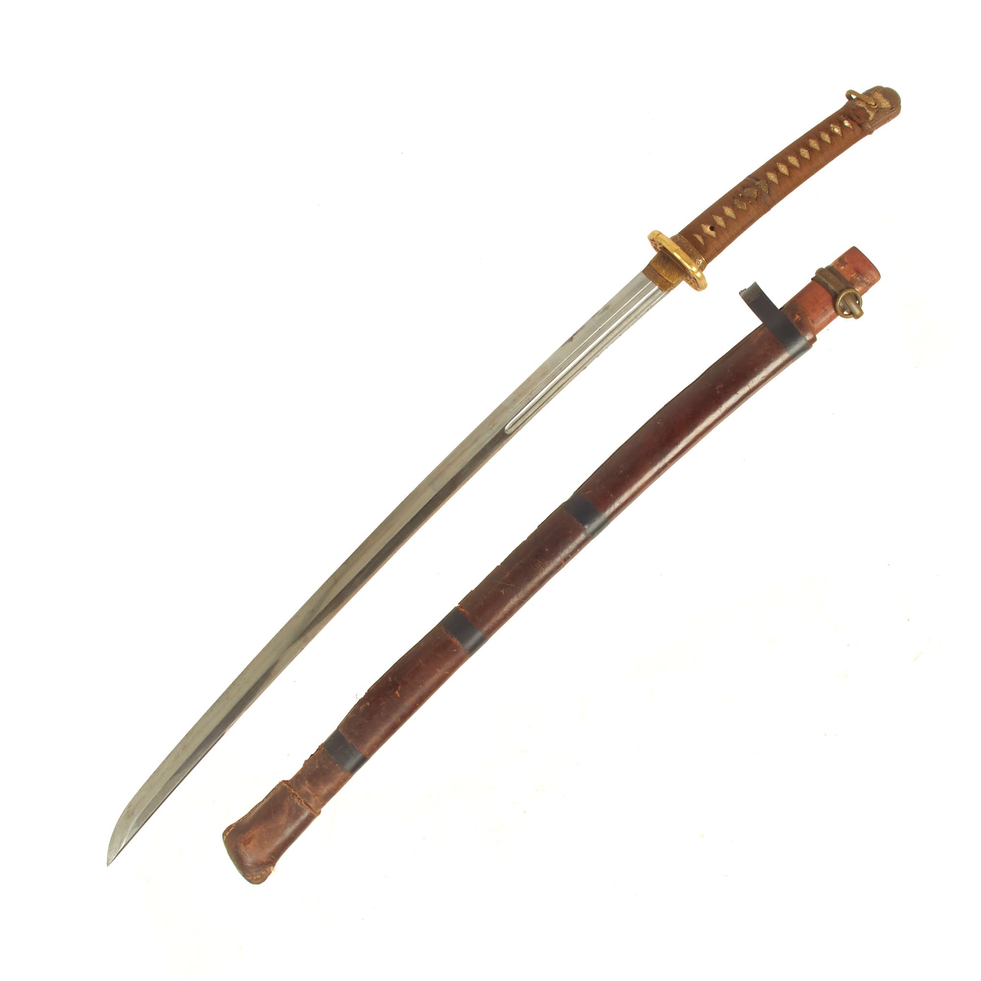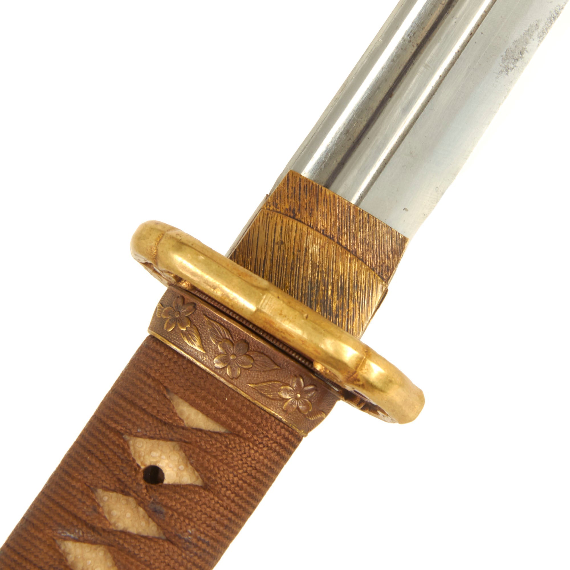 Original Item: One of a Kind. Recently purchased from a private collector, this is a wonderfun USGI Bring-Back Imperial Japanese Army Officer Katana in the Type 98 Shin-Gunto (九八式軍刀 kyūhachi-shiki guntō) setting. A Shin-Guntō (新軍刀 - new military sword) is a weapon and symbol of rank used by the Imperial Japanese Army between the years of 1935 and 1945. The Type 98 pattern of fittings (koshirae) are slightly simplified compared to the earlier Type 94. The blade tang on this great example is signed by the maker, and was handmade in the traditional fashion in the 17th century! Even better, the name on the blade is very highly regarded in Japanese swordmaking history!