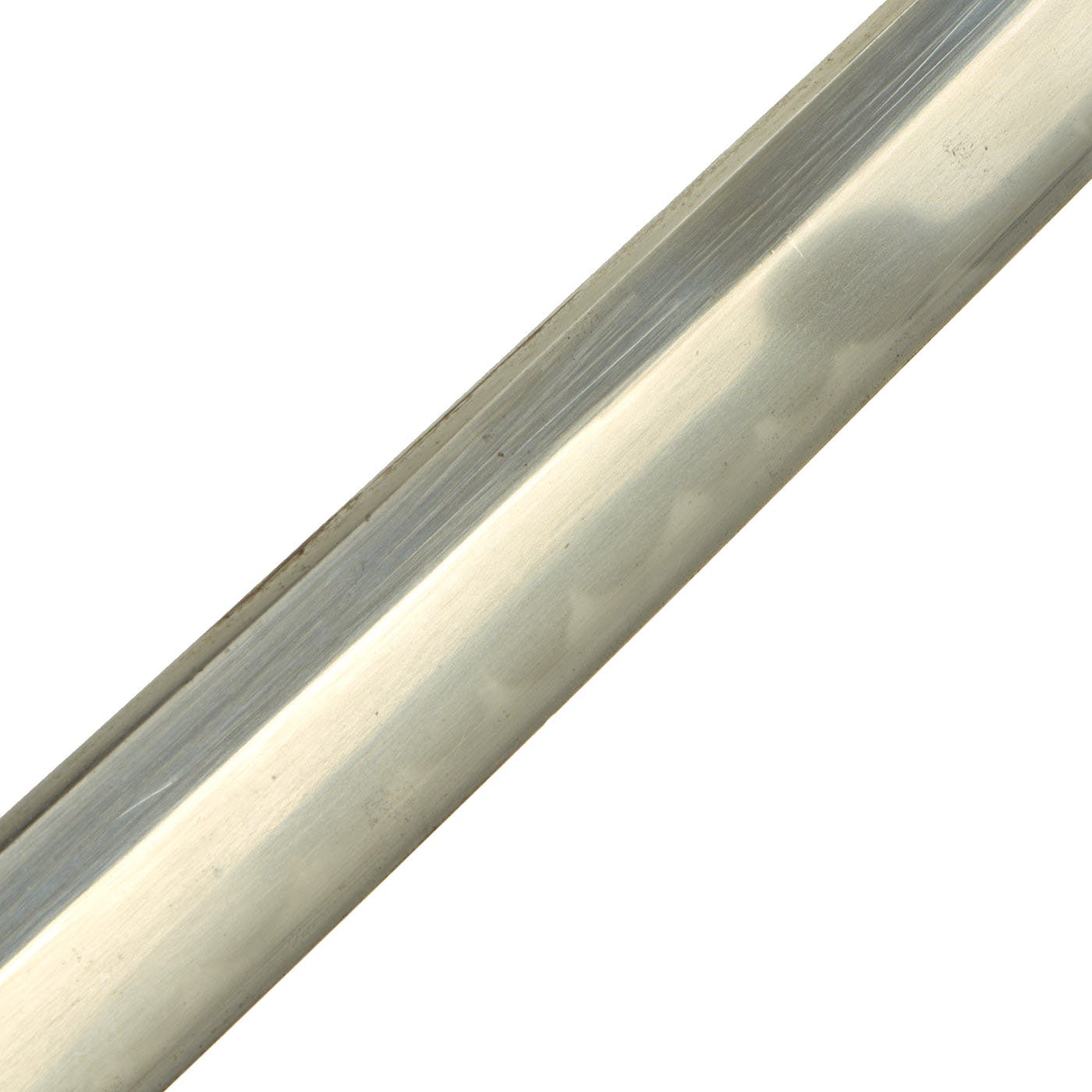 Offered in very good condition, the blade is still sharp and looks great. There are just a few tiny dents on the edge, without any notches or chips. Overall the polish on the blade is very good, with just a few areas of wear and scuffing, as well as a bit of light oxidation. Blade length is approximately 26 1/8 inches and overall length 37 inches. The katana has a handmade blade with a Futsu 普通 (regular) Nakago (tang) with a Haagari (asymmetrical rounded) nakago-jiri (tang tip).