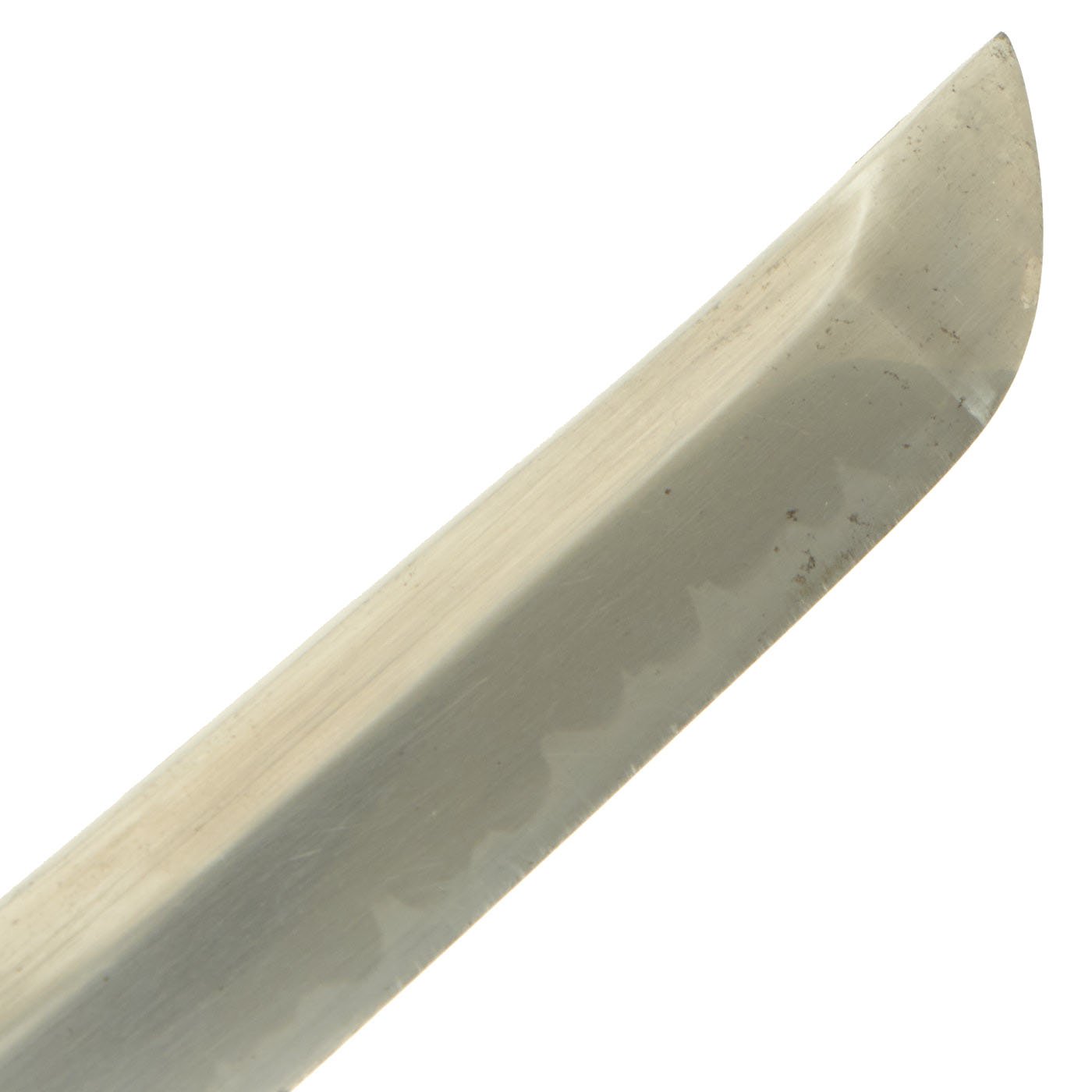 - Blade has a proper geometric Yokote at the tip (kissaki) with a faint Boshi (tip temper line)
