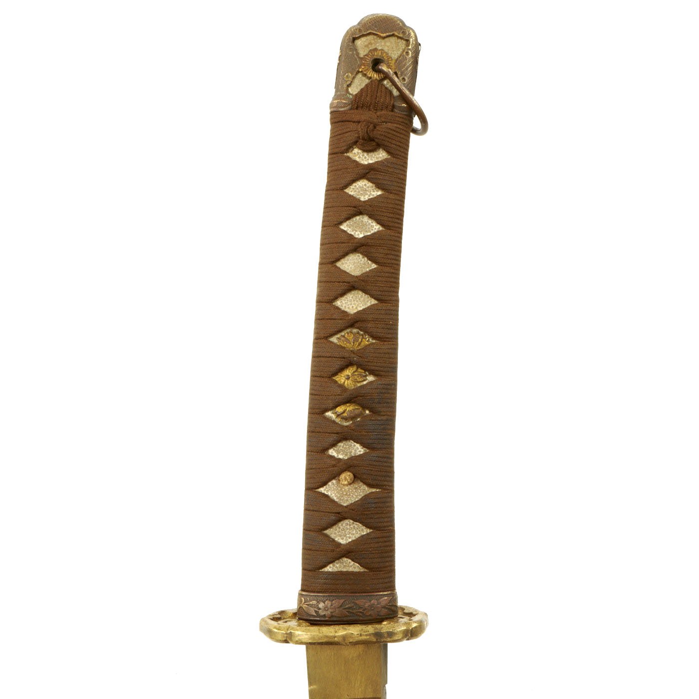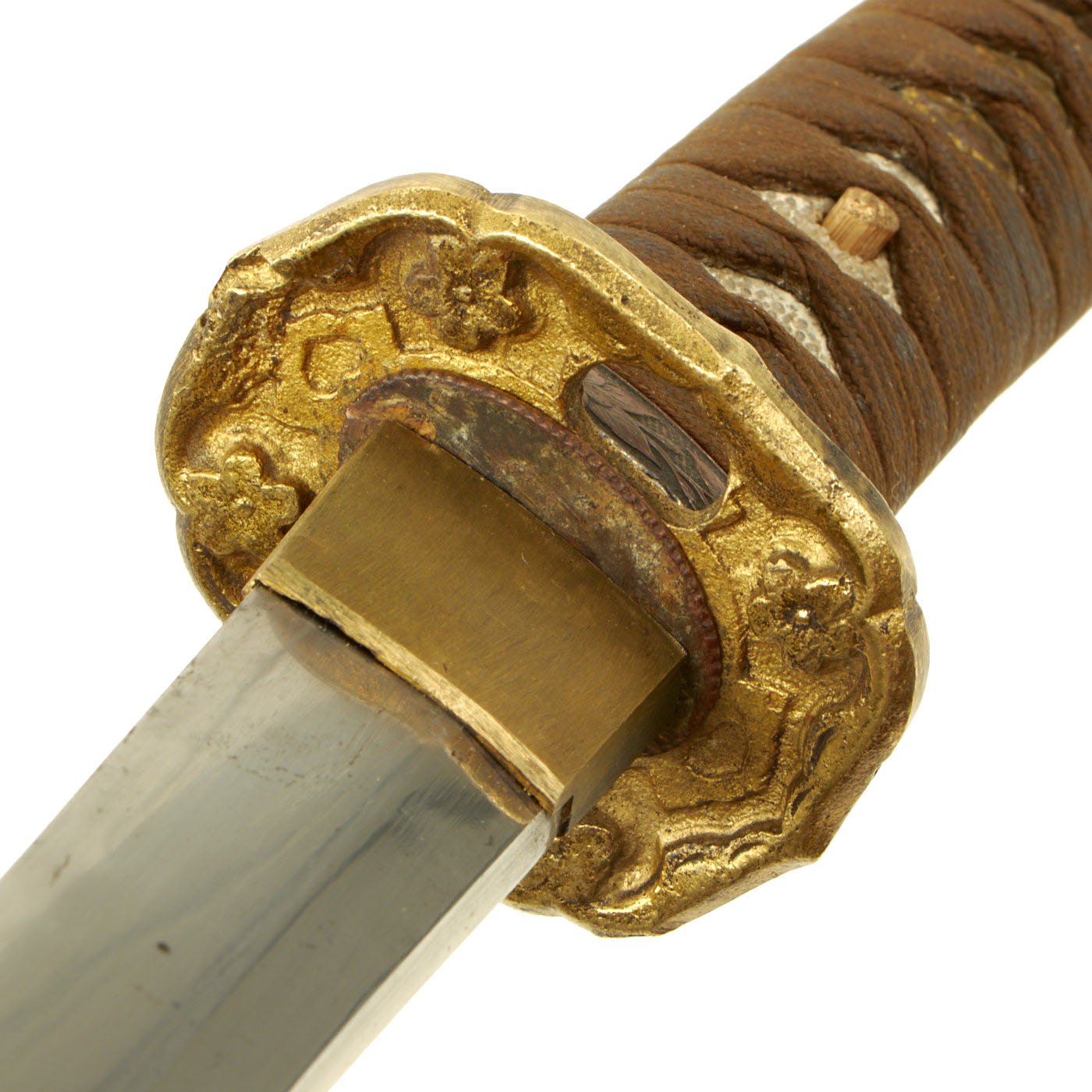 It was a common practice for swords to be passed down for generations, particularly ones that were of high quality. These would be re-polished and re-fit numerous times, as steel was precious and swords were expensive. This continued up into WWII, which is how this blade found its way into standard WWII "Shin-Gunto" fittings, with a locking scabbard. There also was an official Japanese program during the war for families with no sons to donate their swords towards the war effort.